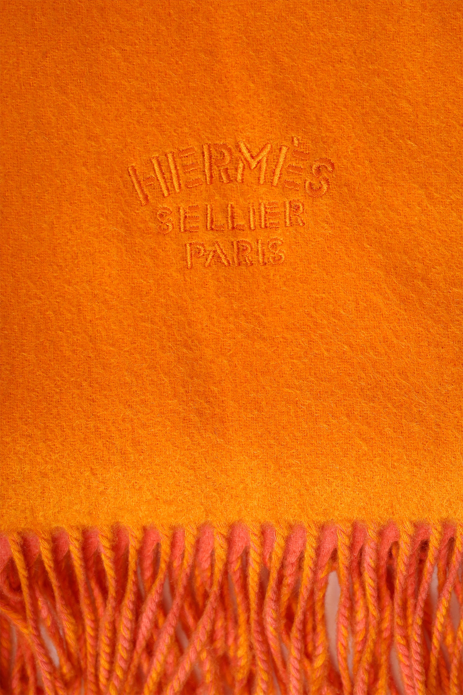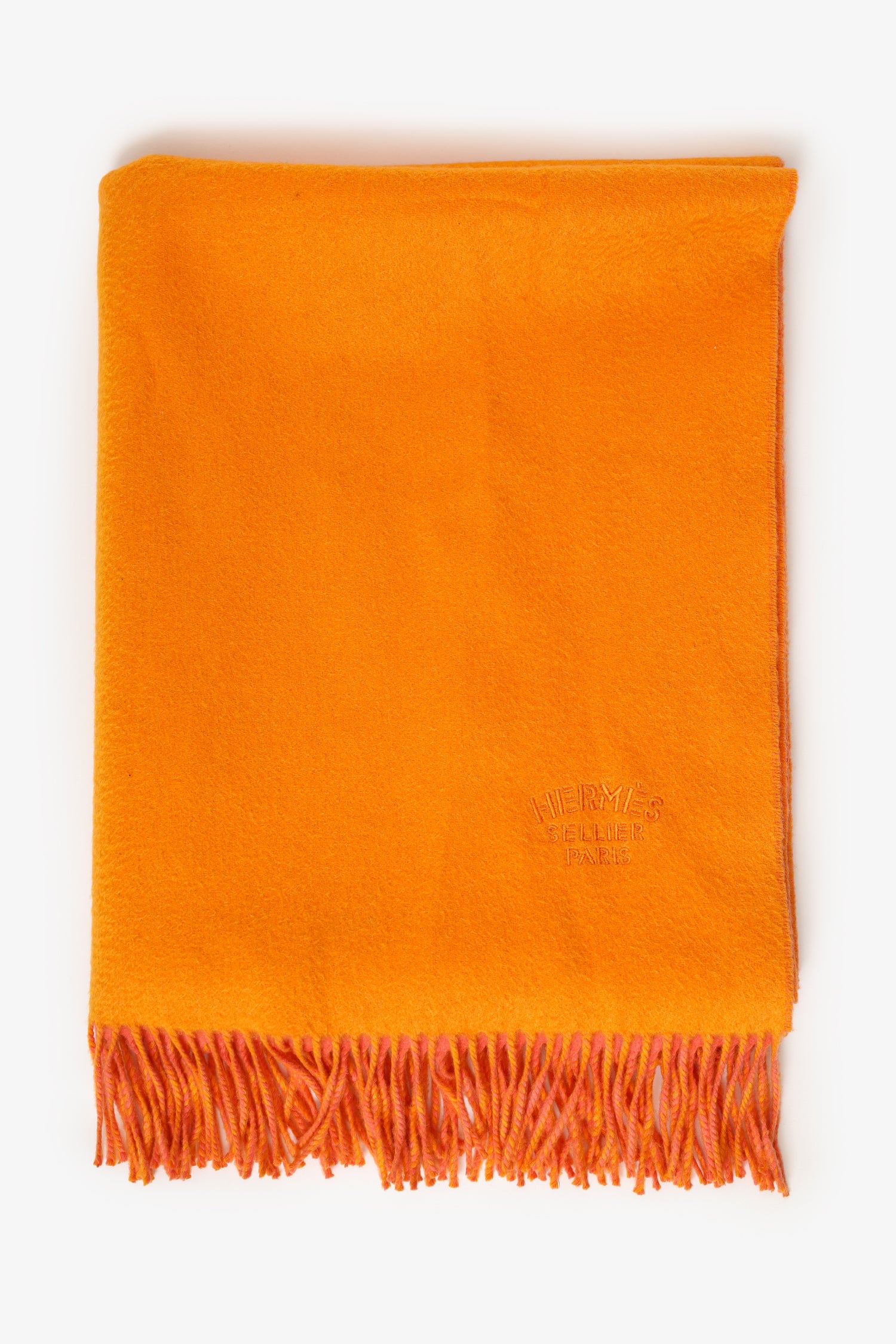 Refresh availabilityHermés Orange/Pink Cashmere Double Face Stole. Fringe detail. Tonal stitching.
