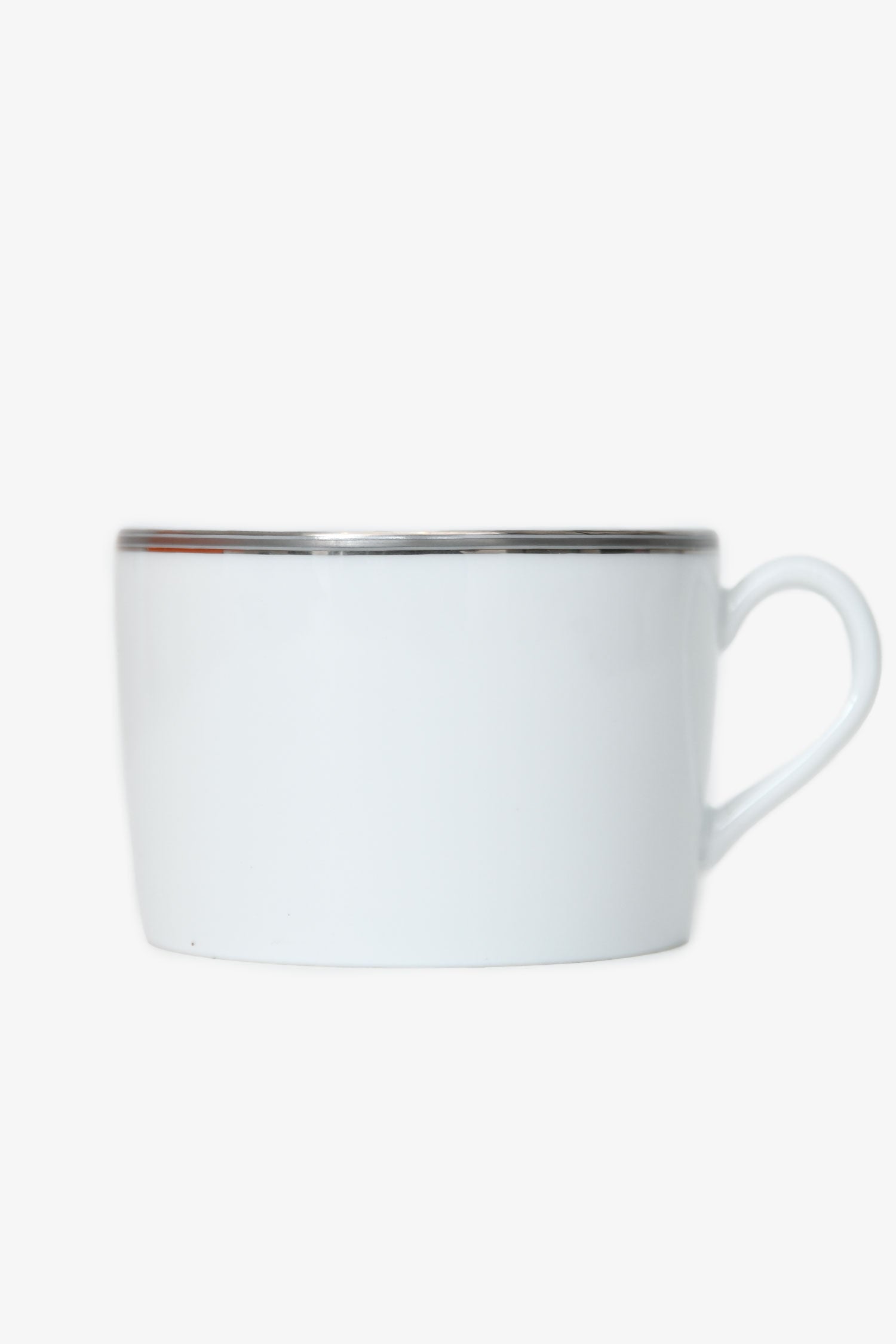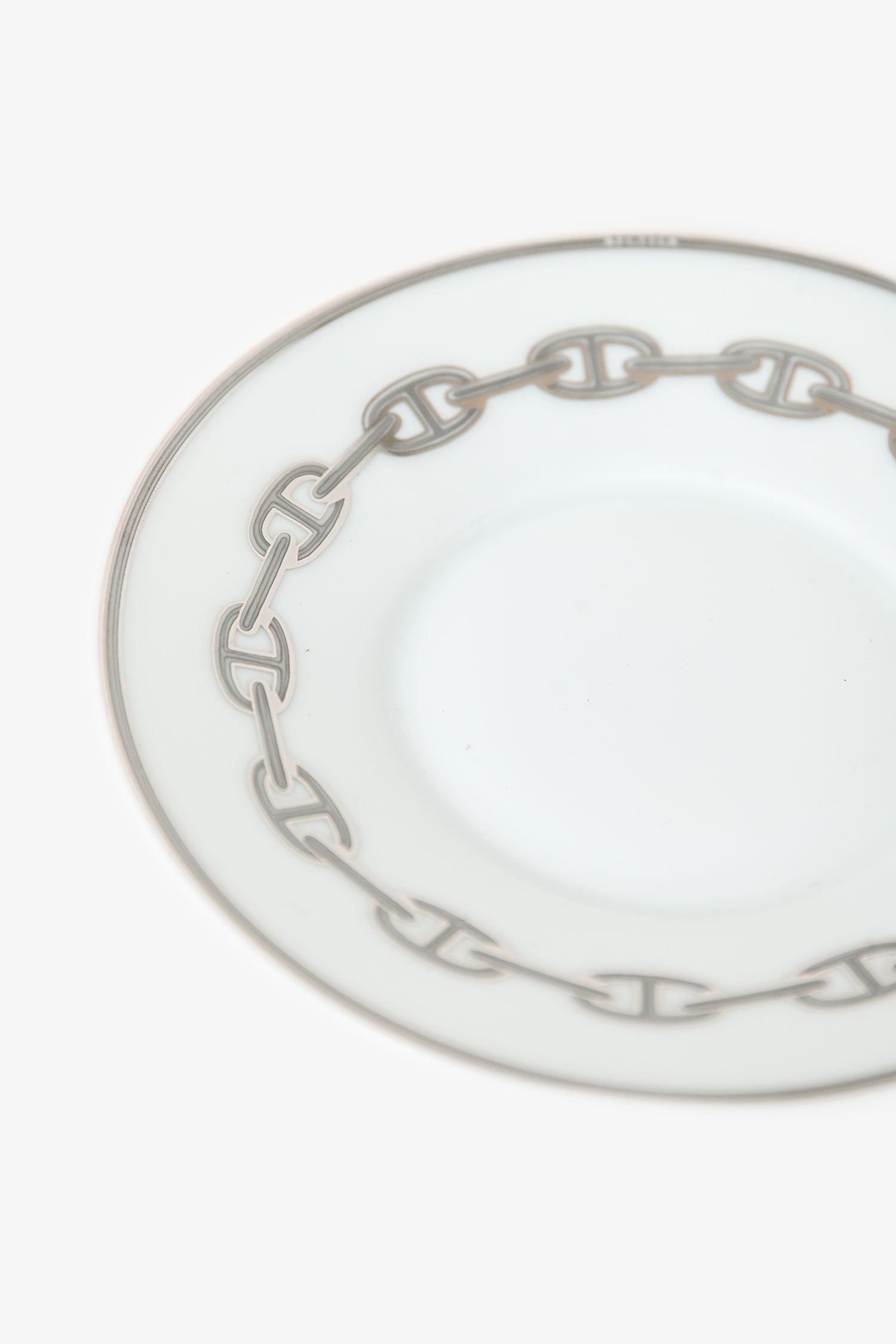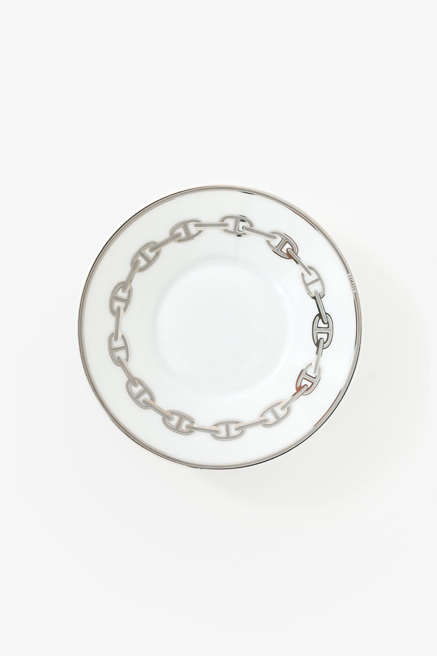 Refresh availabilityHermès Printed Porcelain 'Chaine D'ancre' Tea Cup and Saucer Set of 2. Silver-tone trim.