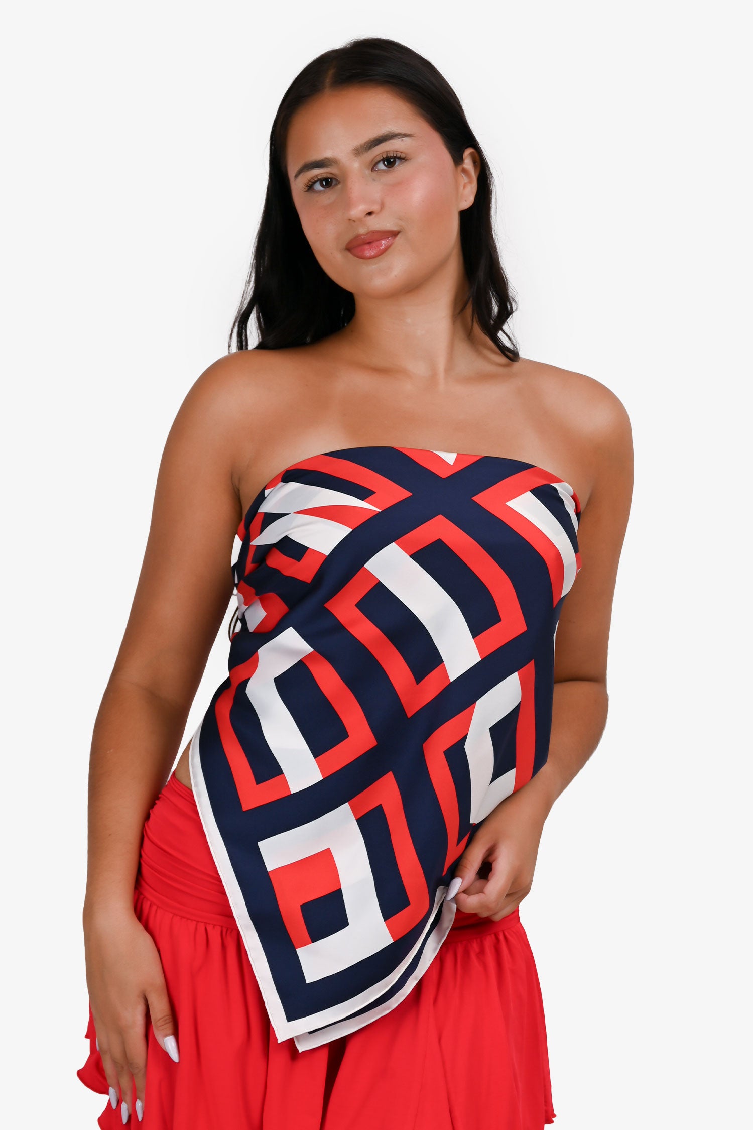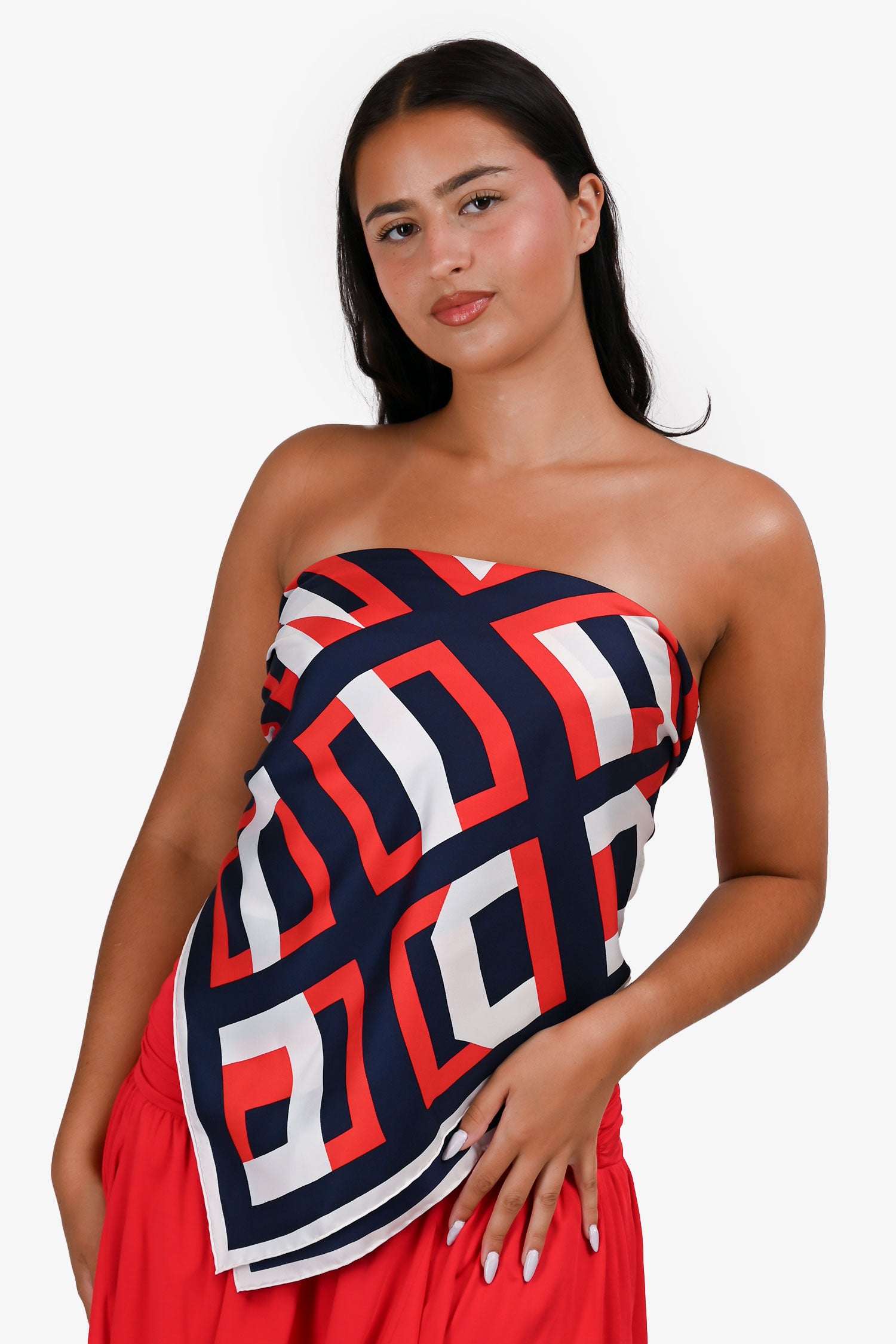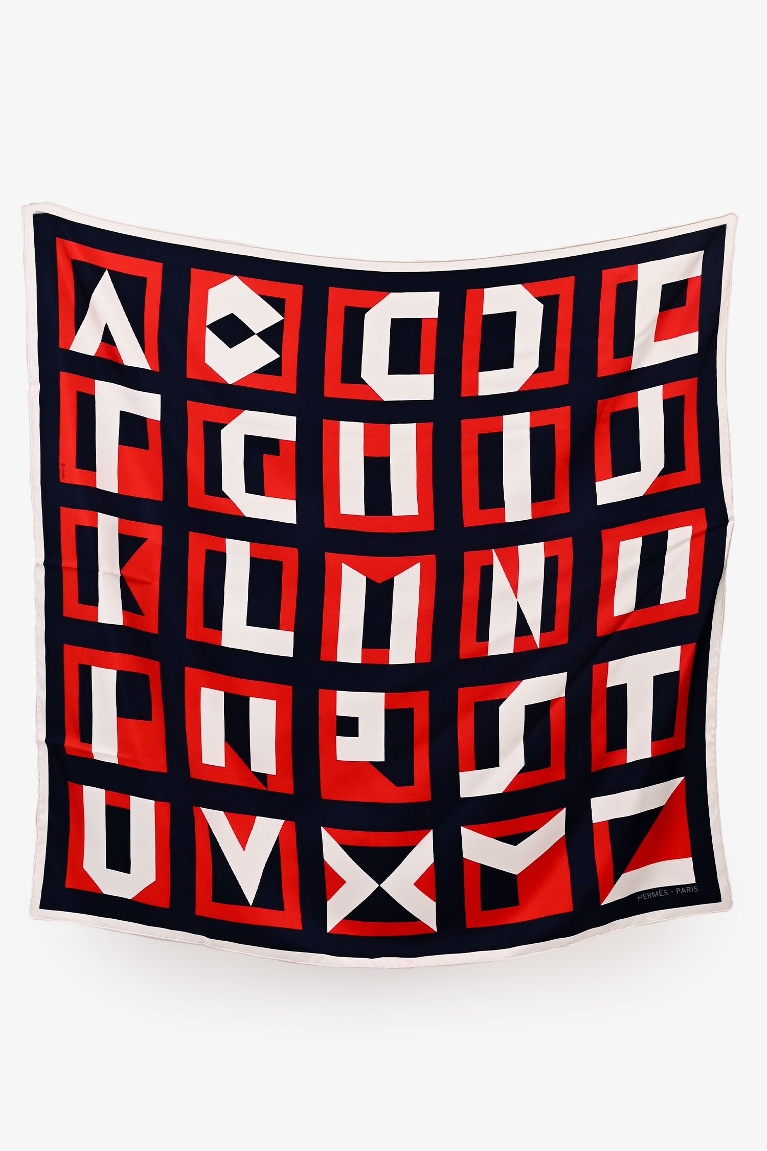 Refresh availabilityHermès Red/White/Navy 'Lettres Au Carre' Twill Scarf 90.