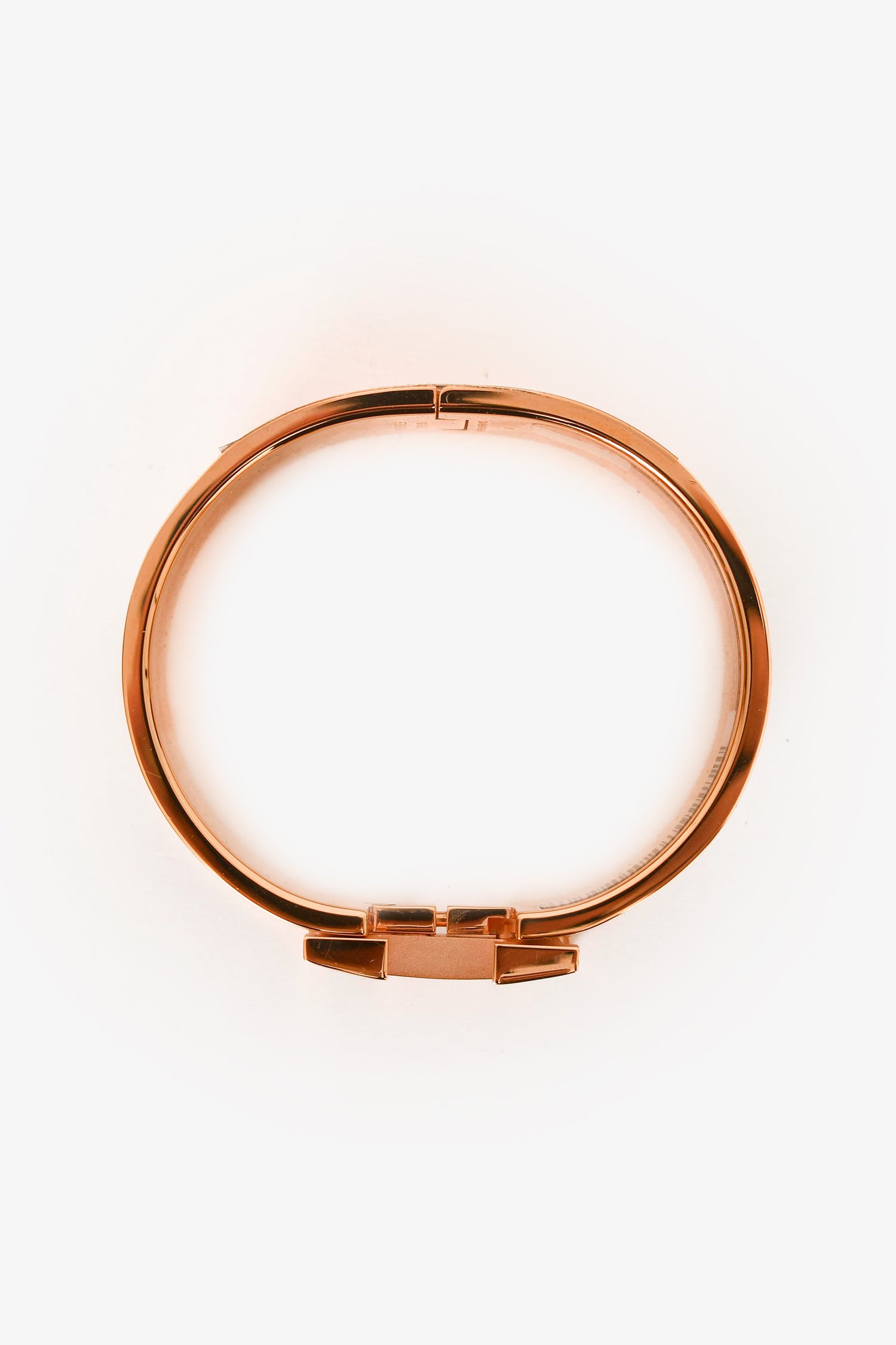 Refresh availabilityHermès Rose Gold Tone/Black/White Metal/Enamel Houndstooth Patterned Wide Clic Clac H Bangle. Twist lock closure. Rose gold-tone hardware.
