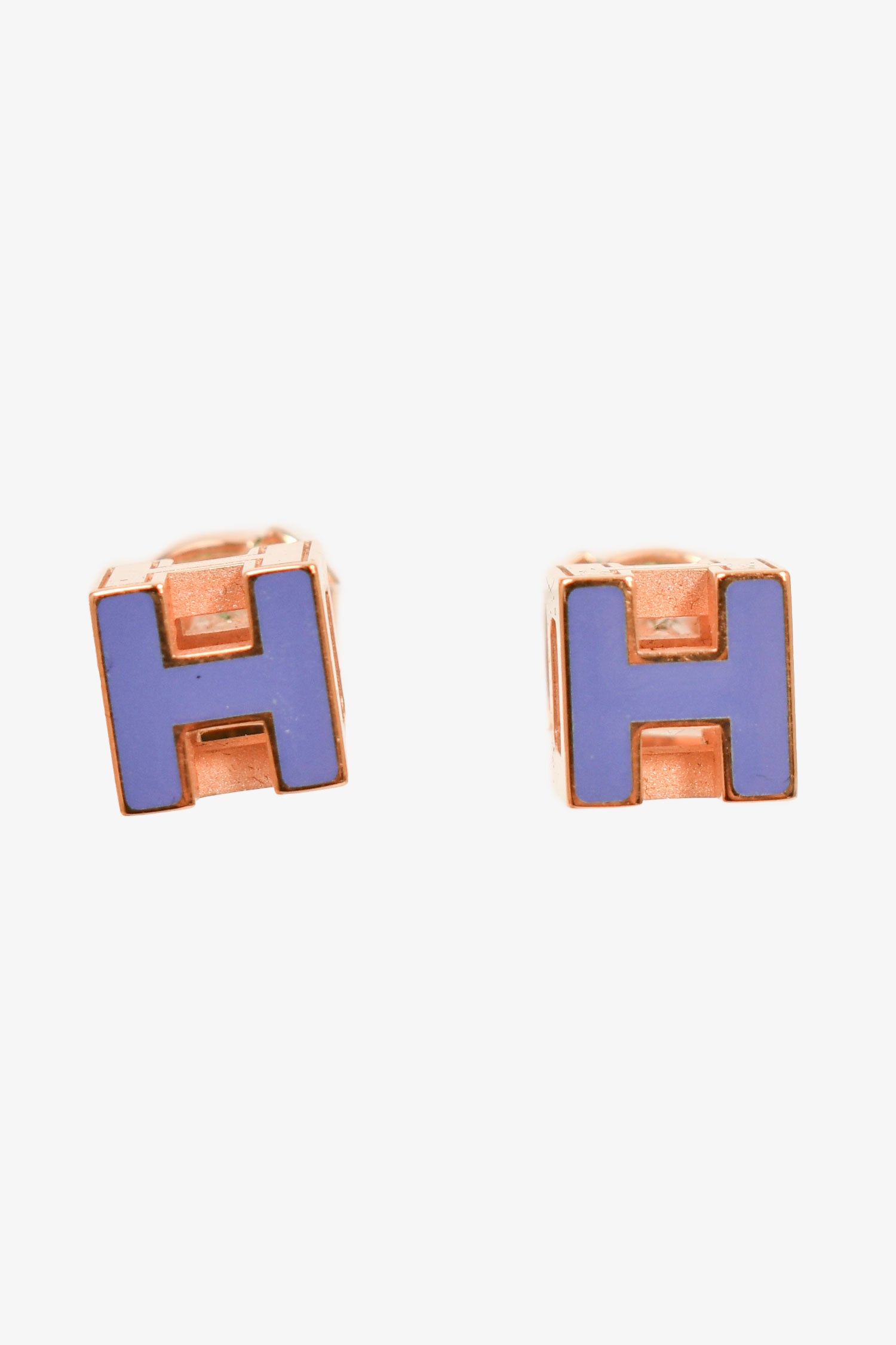 Refresh availabilityHermès Rose Gold Tone Blue H Pop Stud Earrings. Post-stud closures.