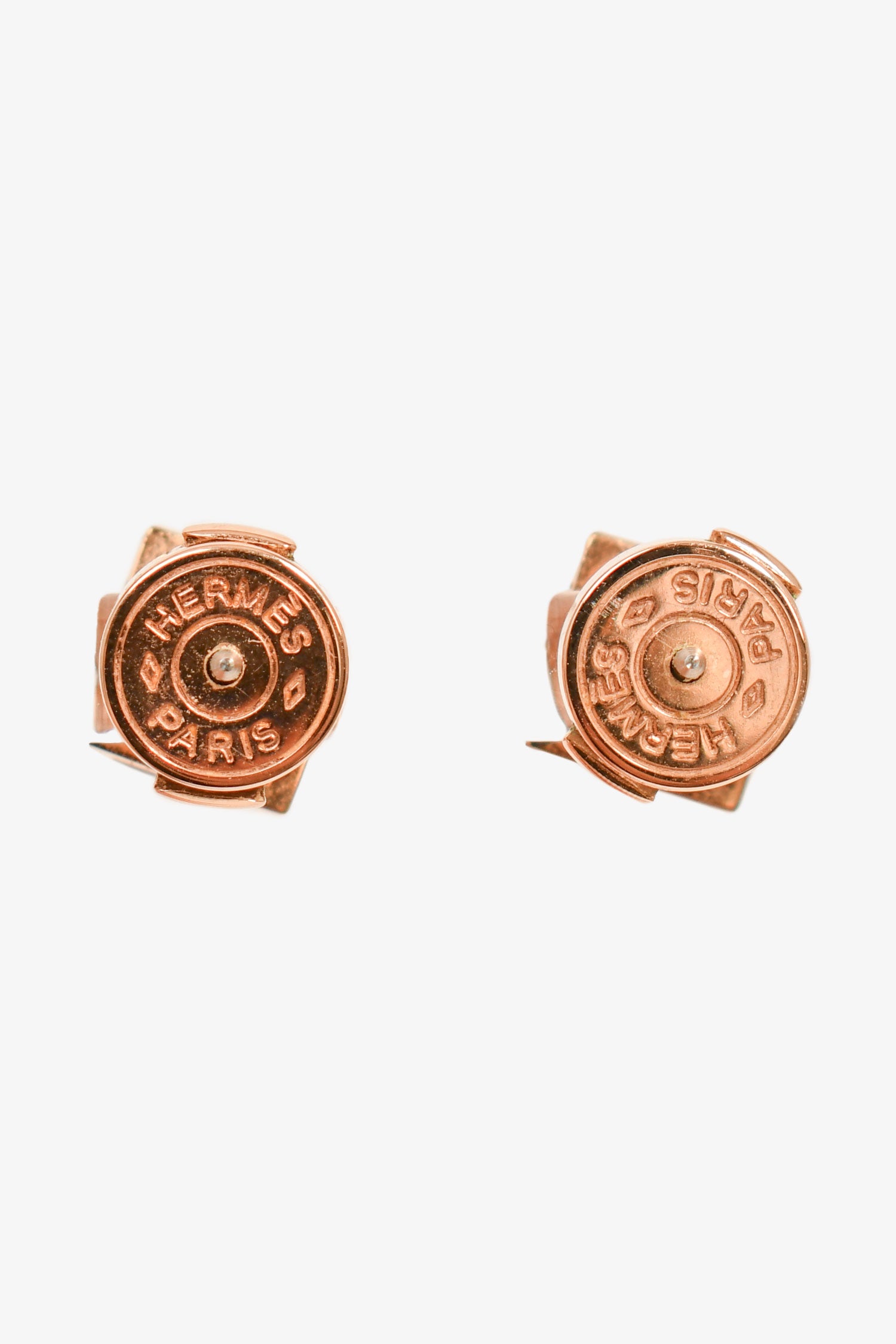 Hermès Rose Gold Tone Blue H Pop Stud Earrings