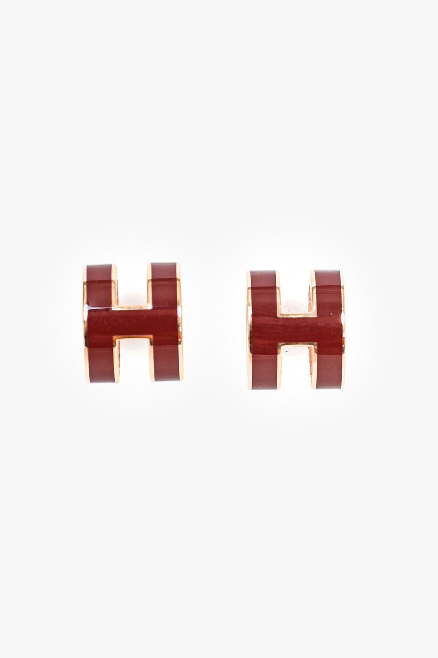 Refresh availabilityHermès Rose Gold Tone/Burgundy Enamel Pop H Earrings. Push-back closure.