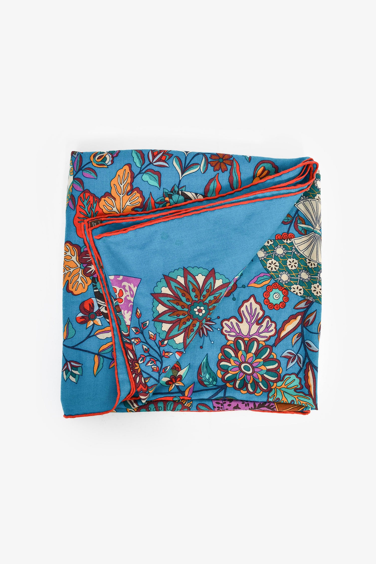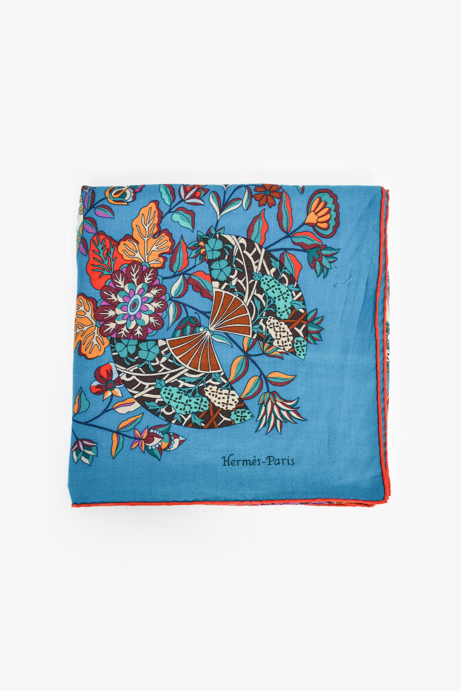 Hermès Silk/Cashmere Blue/Pink Floral Print Scarf Size 140