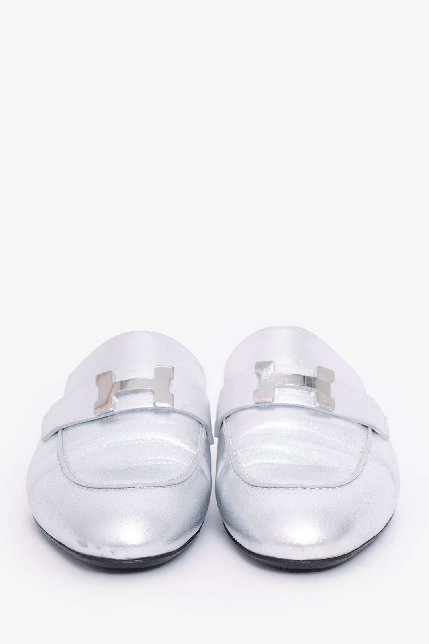 Hermès Silver Metallic Trocadero H Logo Mules Size 38