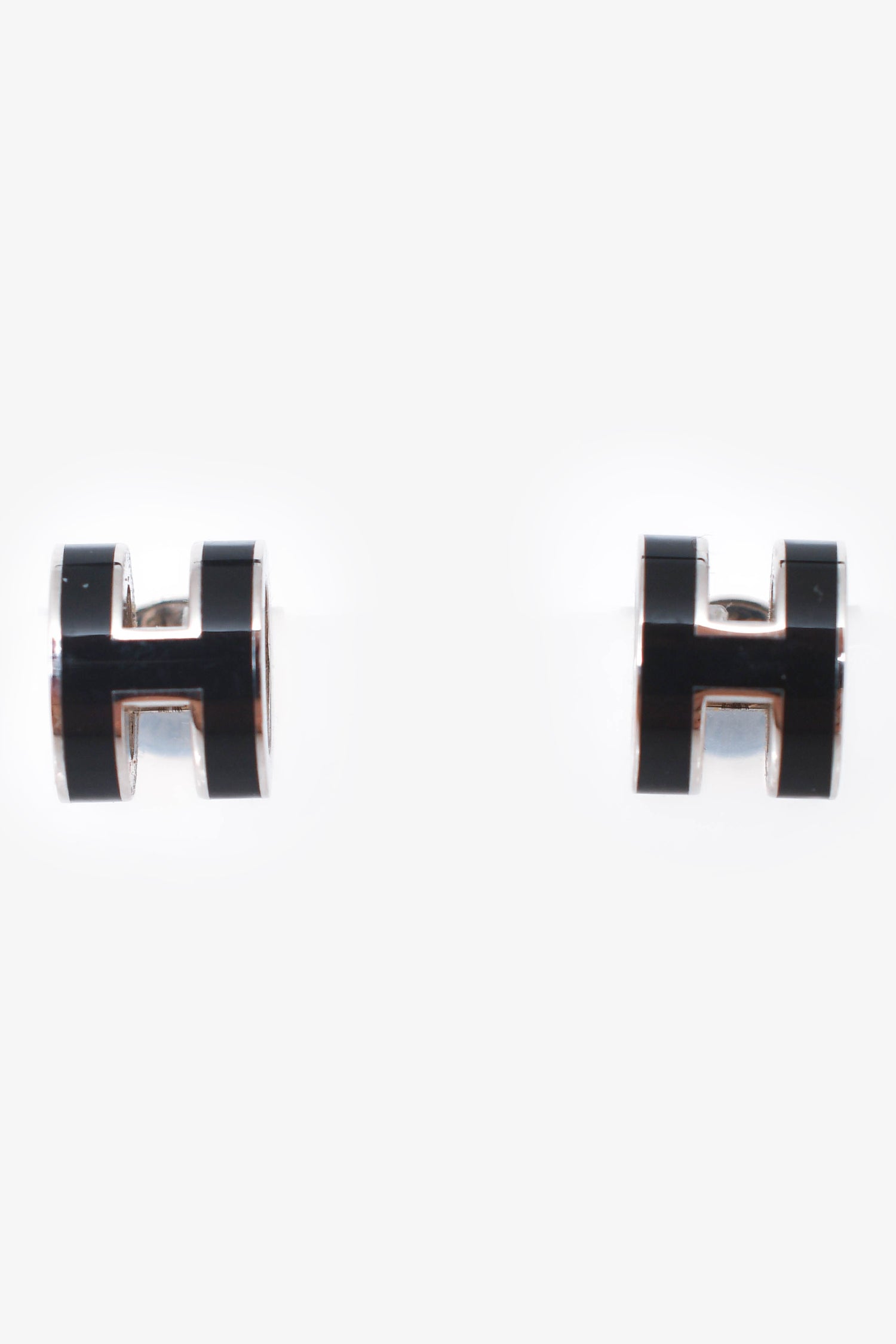 Refresh availabilityHermès Silver Tone/Black Enamel Mini Pop H Earrings. Screw-backing. Silver-tone hardware.