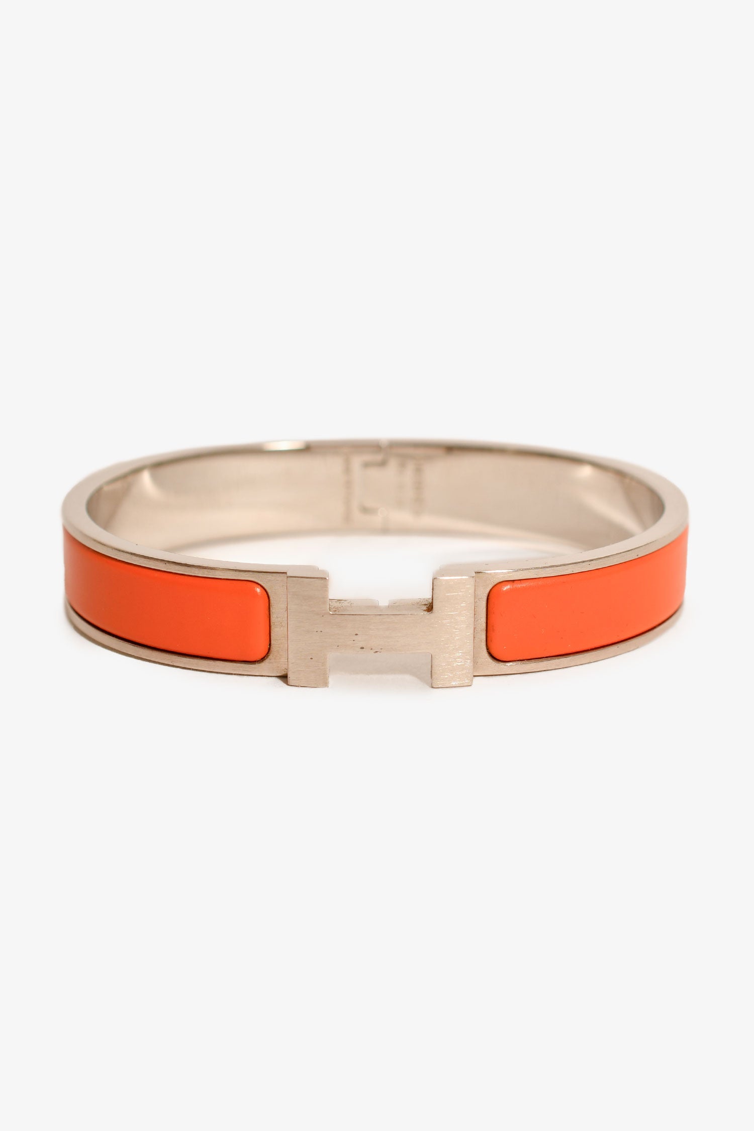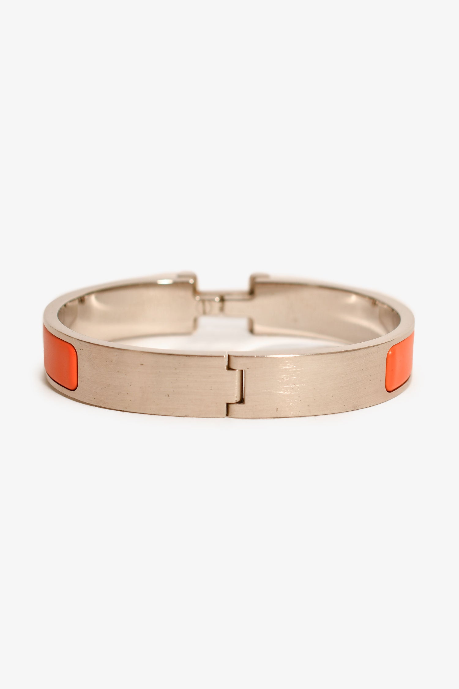 Refresh availabilityHermès Silver Toned/Orange Clic Bracelet. Silver-tone hardware. 'H' flip closure.