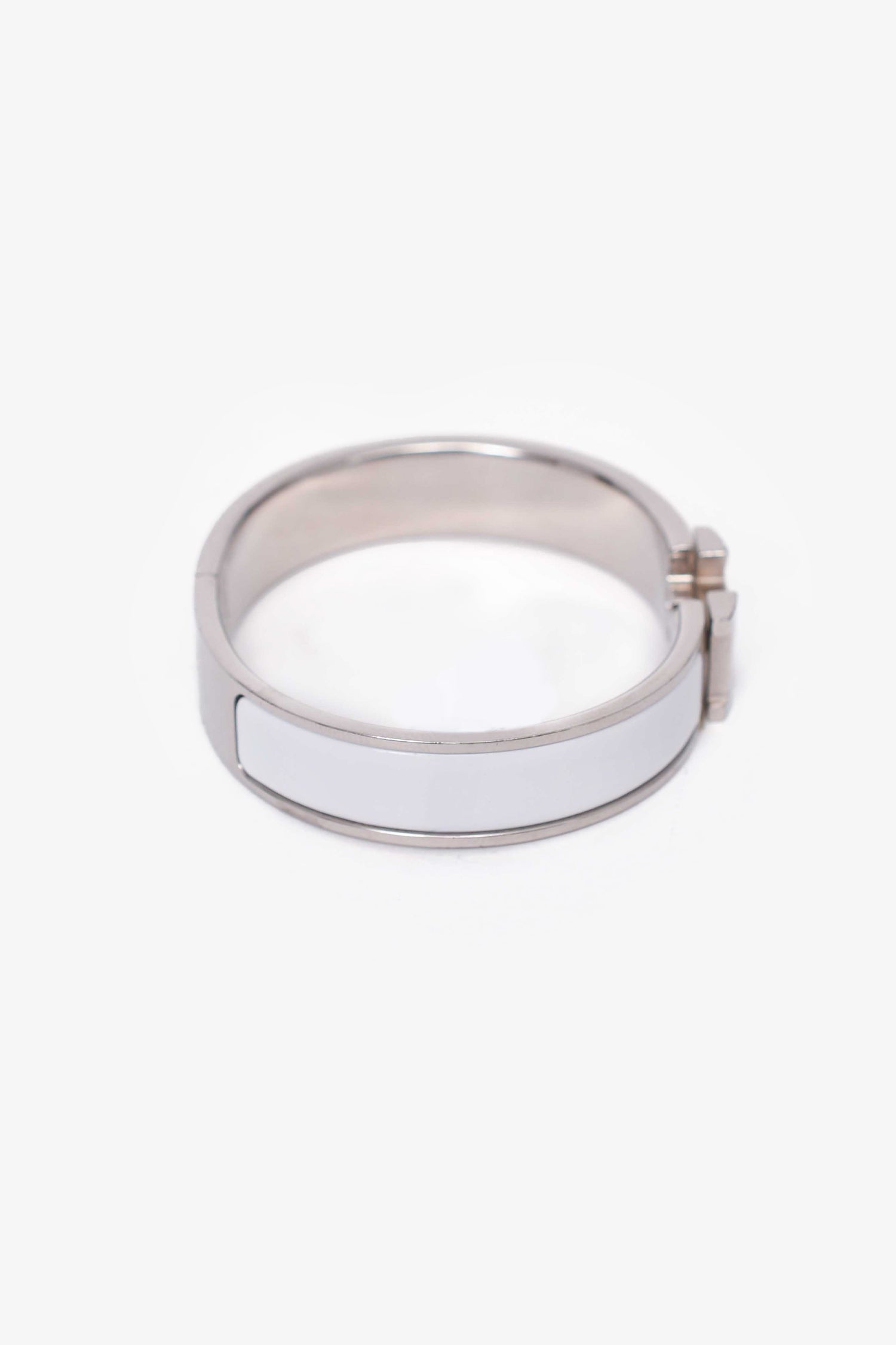 Refresh availabilityHermes Silver Toned/White Enamel Clic Bracelet. Turn-lock closure. Silver-toned.