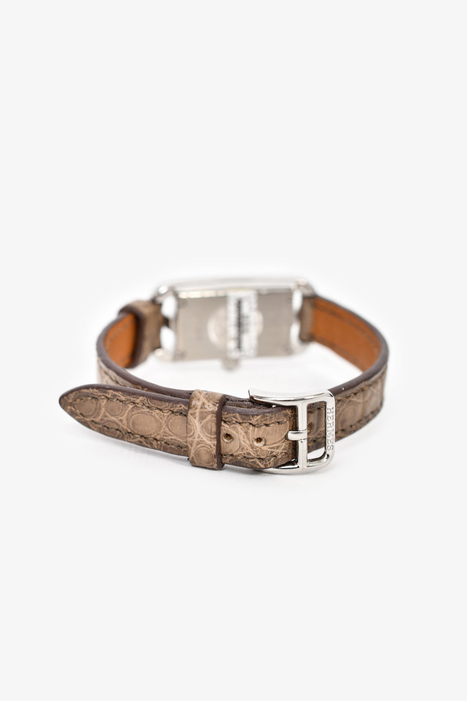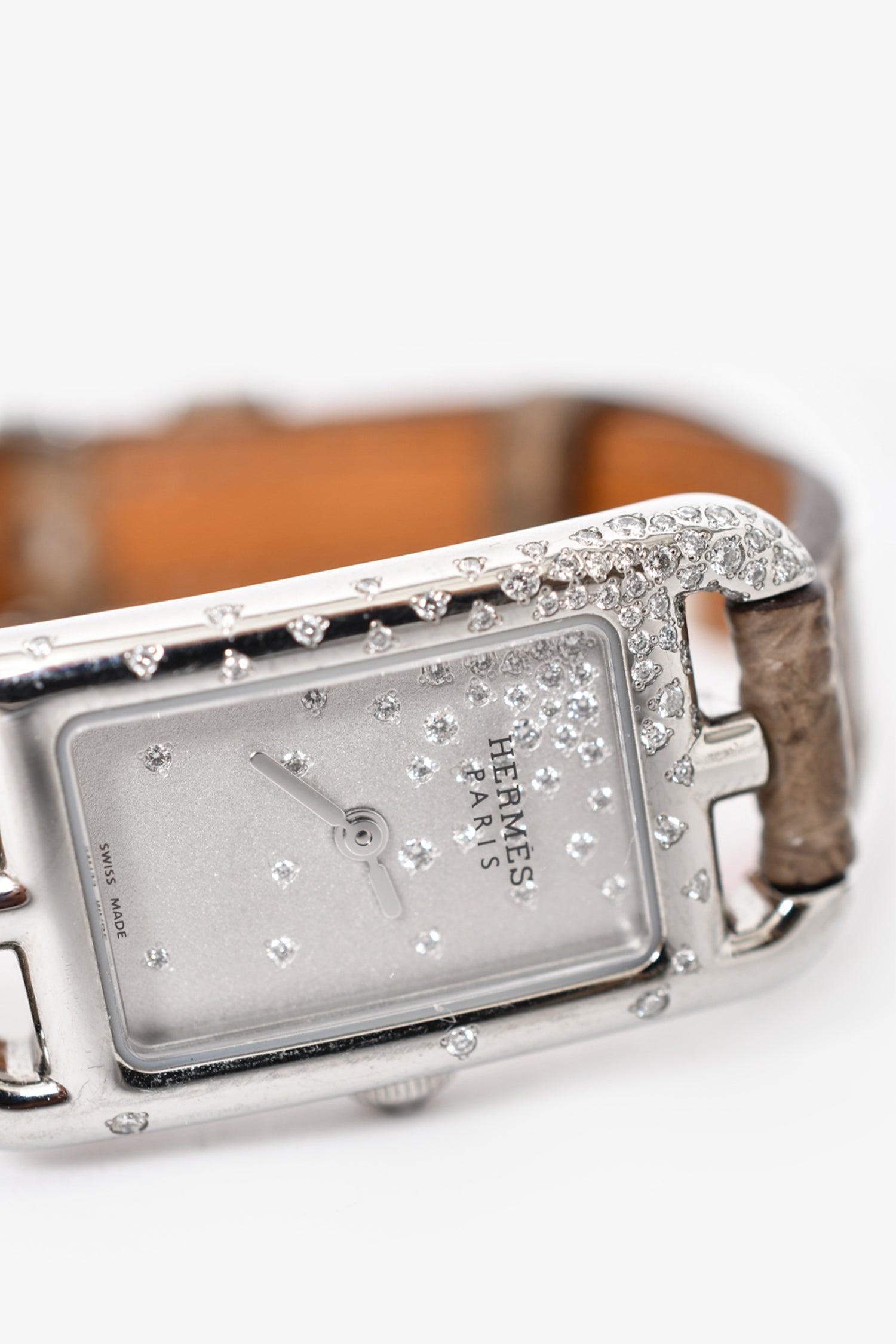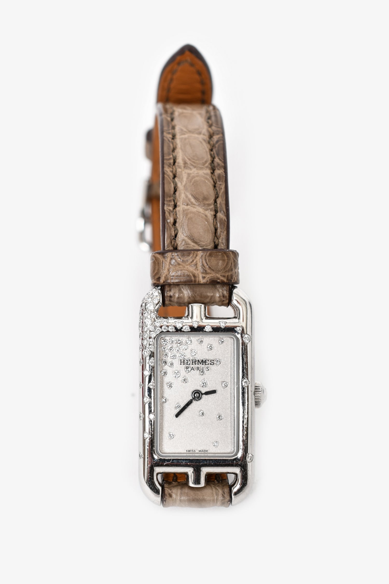 Hermès Taupe Alligator Leather Stainless Steel 'Nantucket Jeté de Diamants' Watch