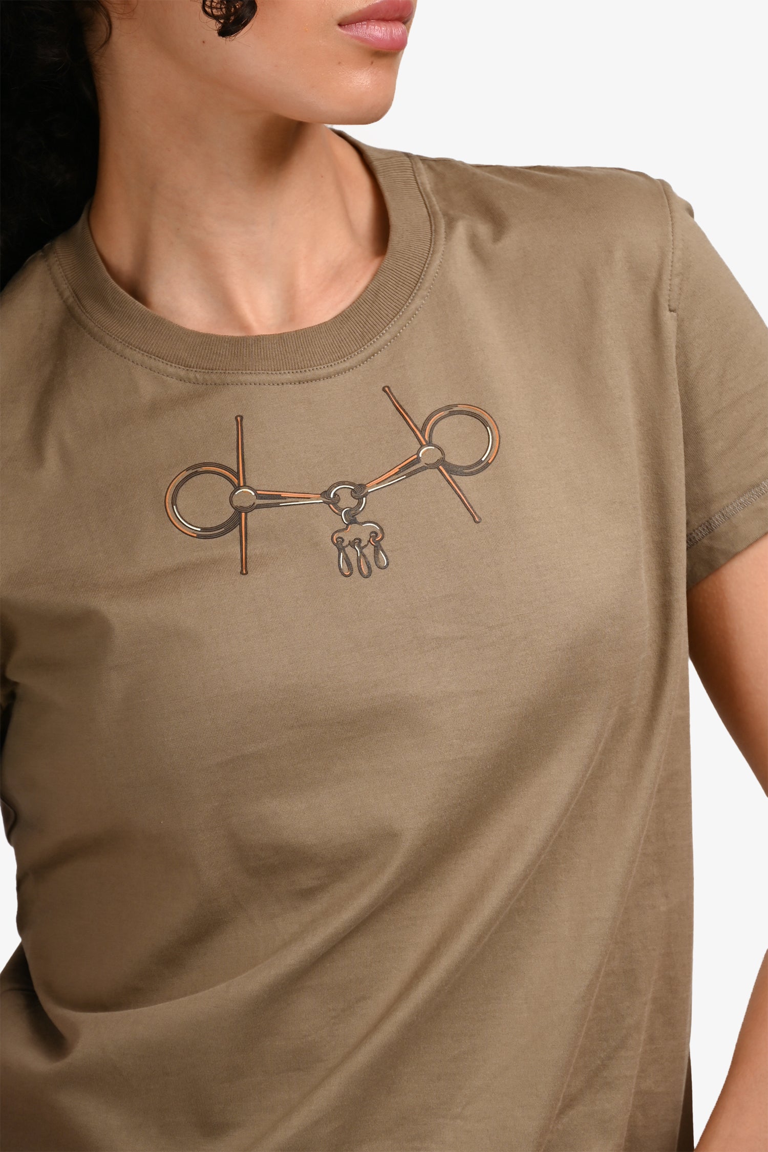 Refresh availabilityHermès Taupe Graphic Print Short Sleeve T-shirt. Pull-on. Round and ribbed neckline. Tonal stitching.