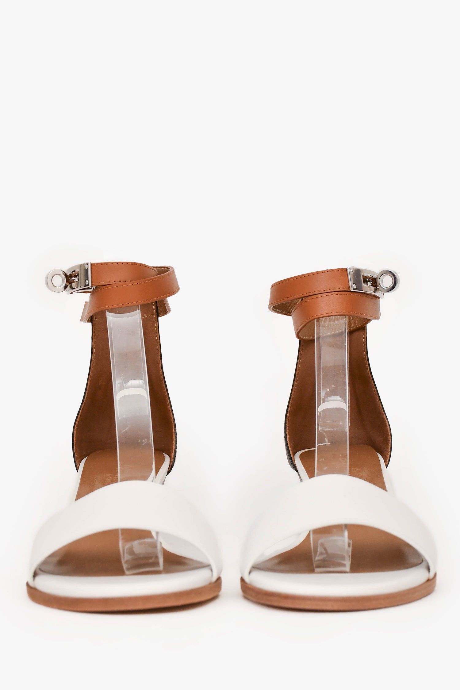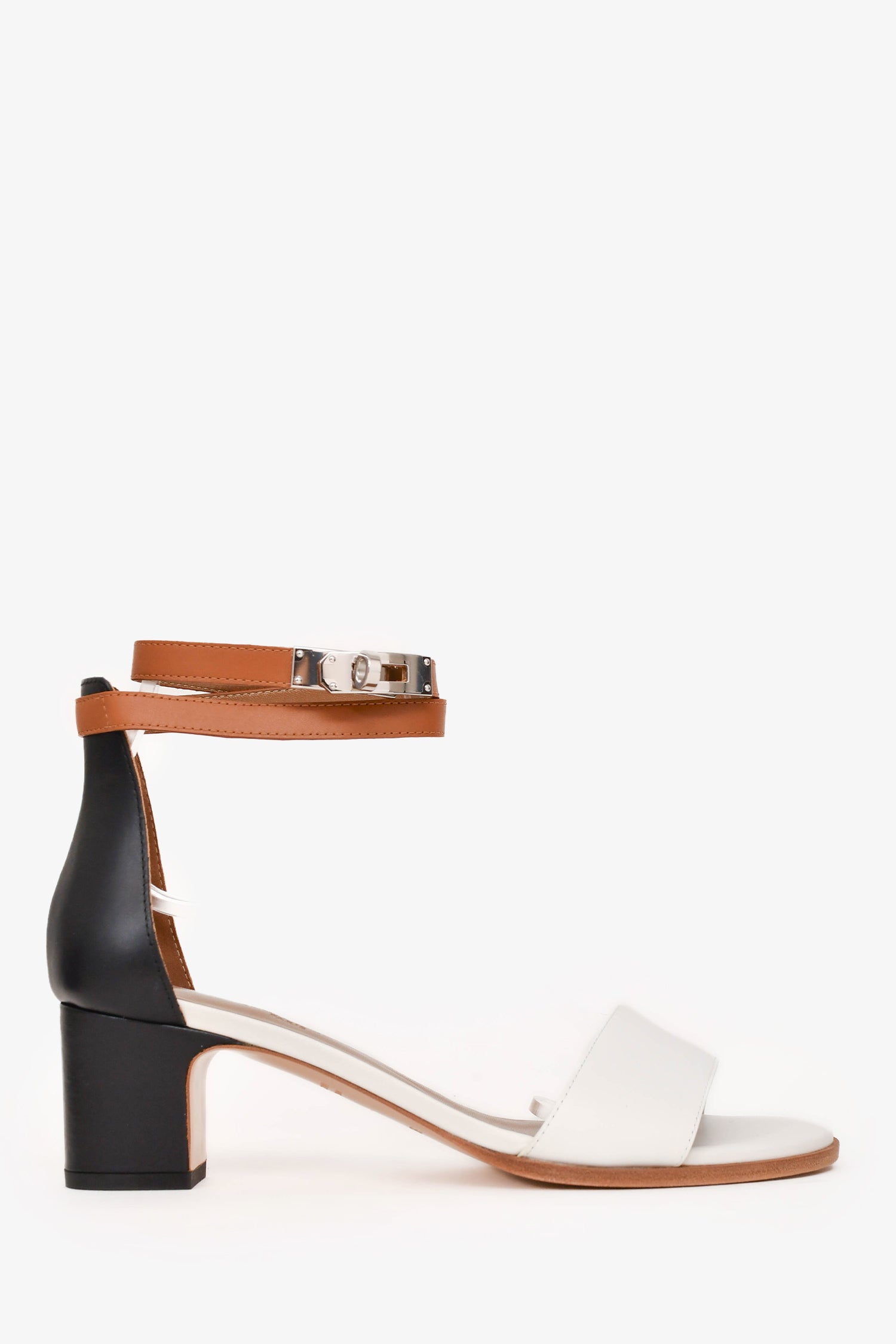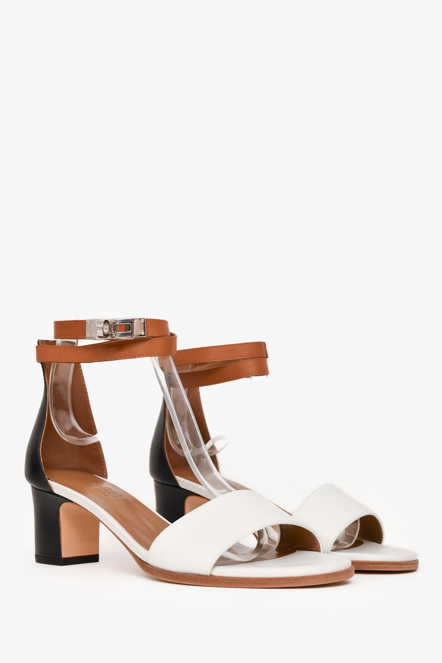 Hermès Tricolor Leather Manege Ankle Wrap Sandals Size 37.5