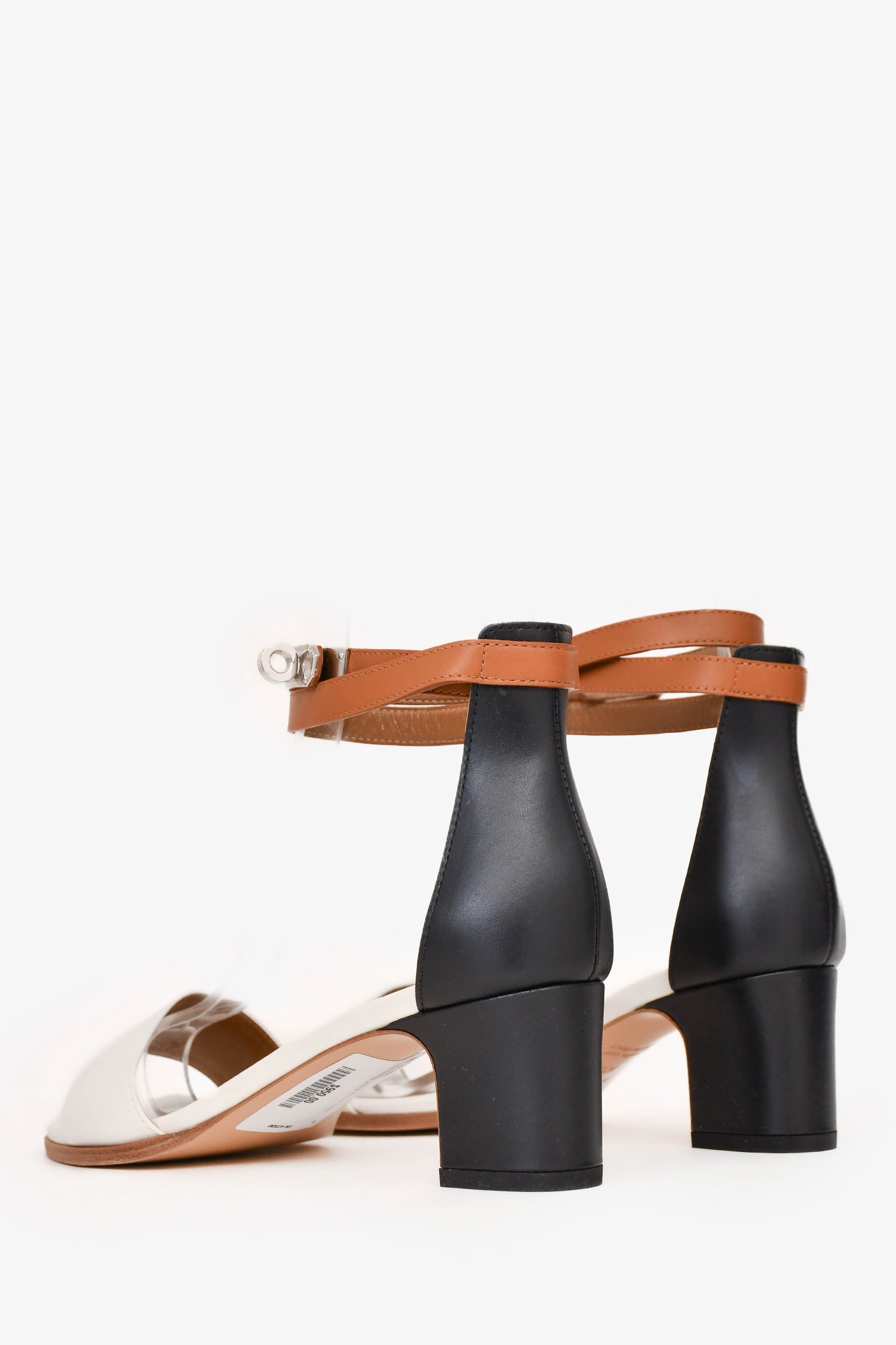 Refresh availabilityHermès Tricolor Leather Manege Ankle Wrap Sandals. Ankle buckle closure. Silver-tone hardware. Open-toe. Tonal stitching.
