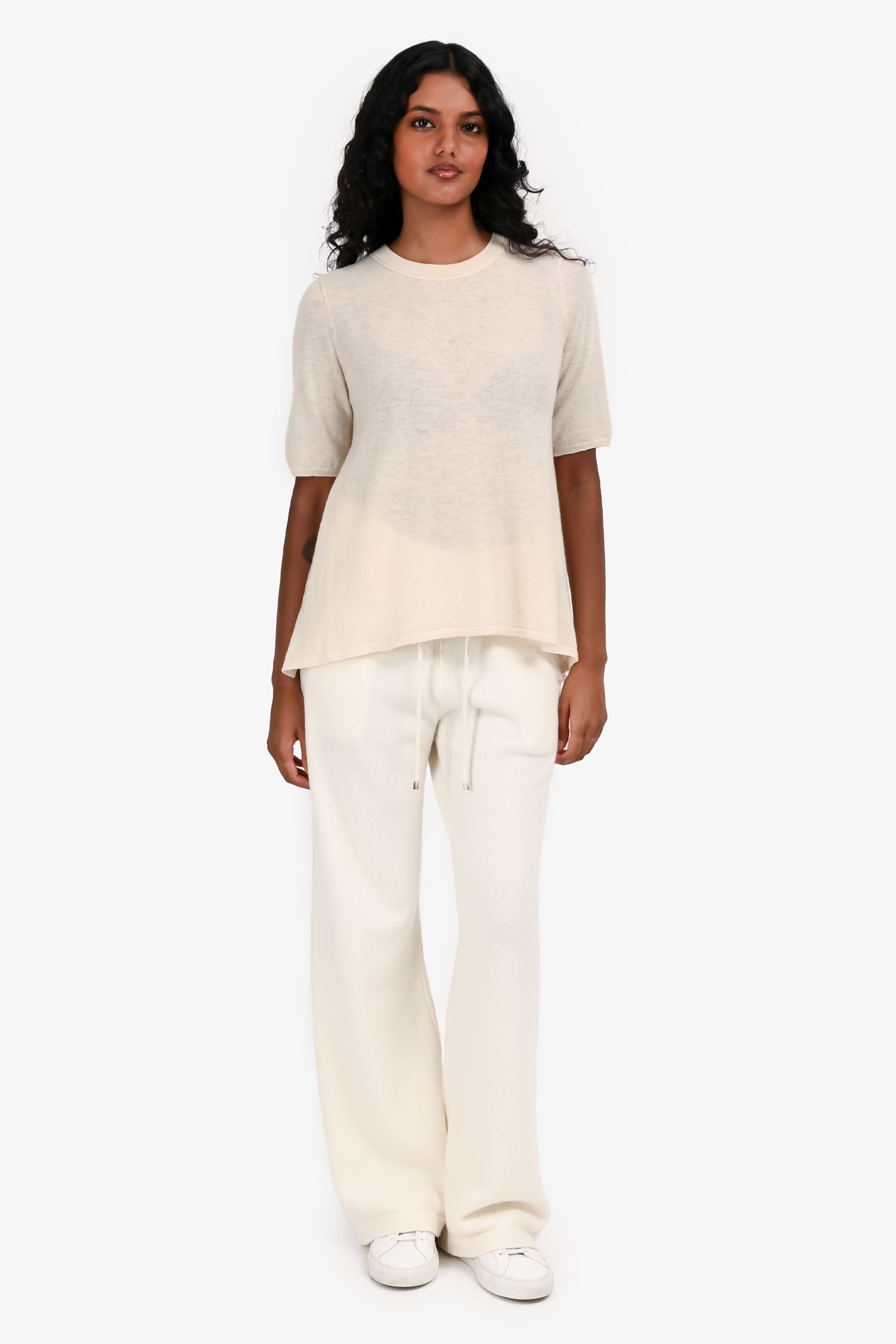 Refresh availabilityHermès White Cashmere Wide Leg Pants. Elastic waistband. Side slit pockets. Tonal stitching.