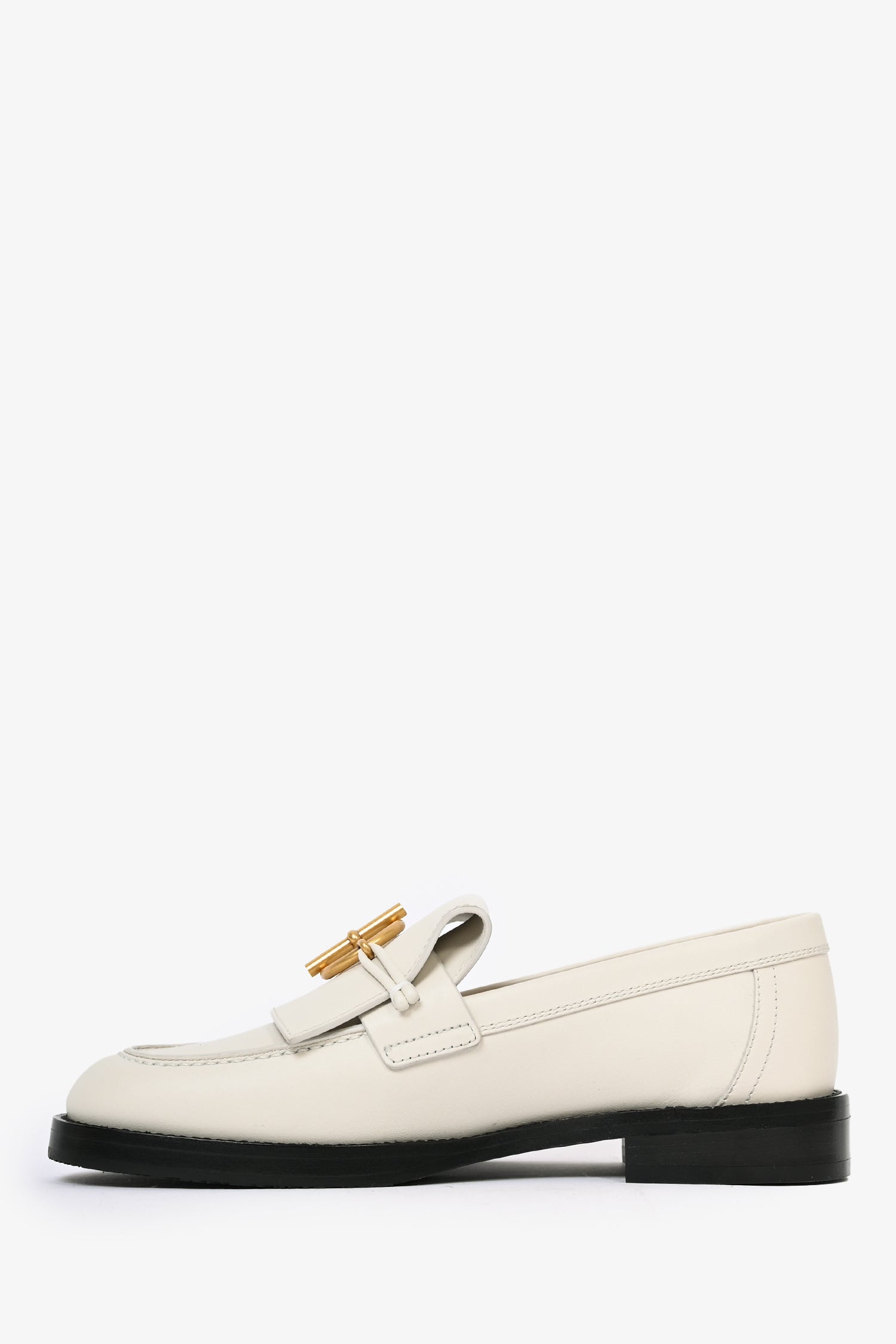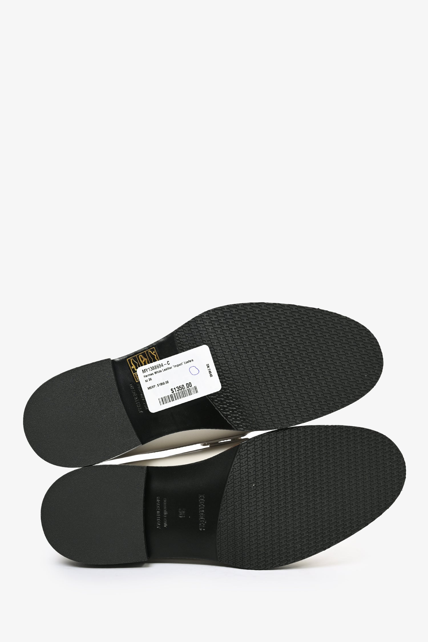 Refresh availabilityHermès White Leather 'Impact' Loafers. Tonal stitching. Gold-tone hardware. Round toe. Leather lined interior.