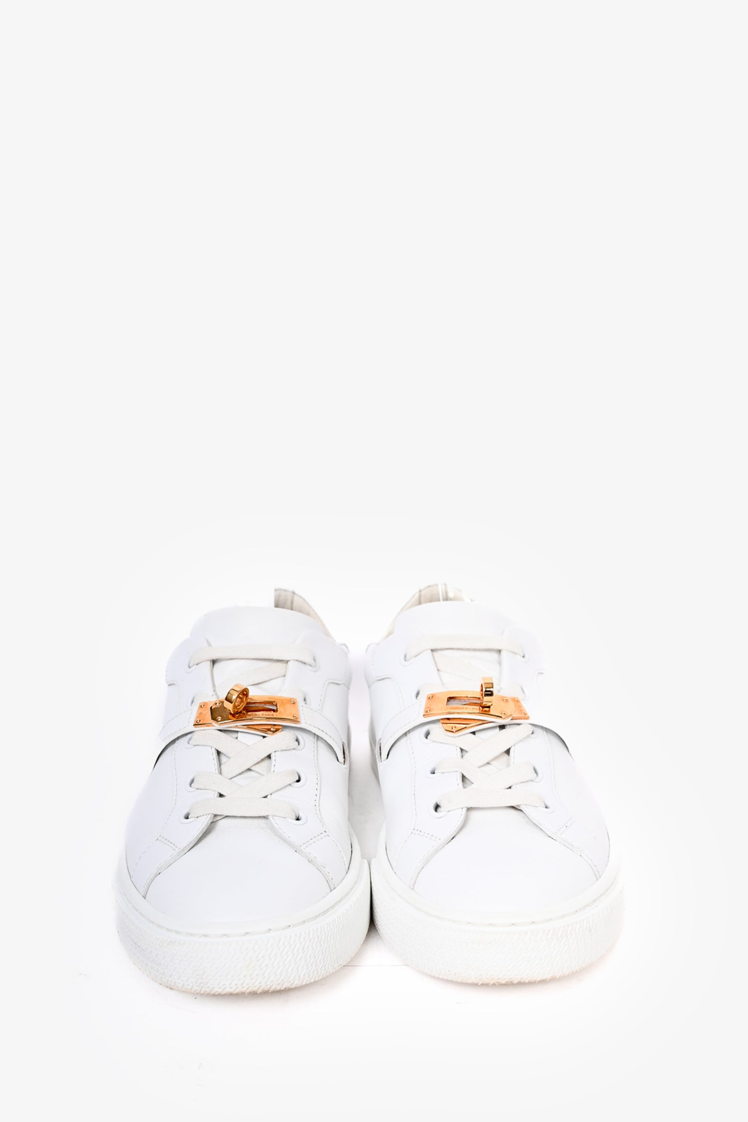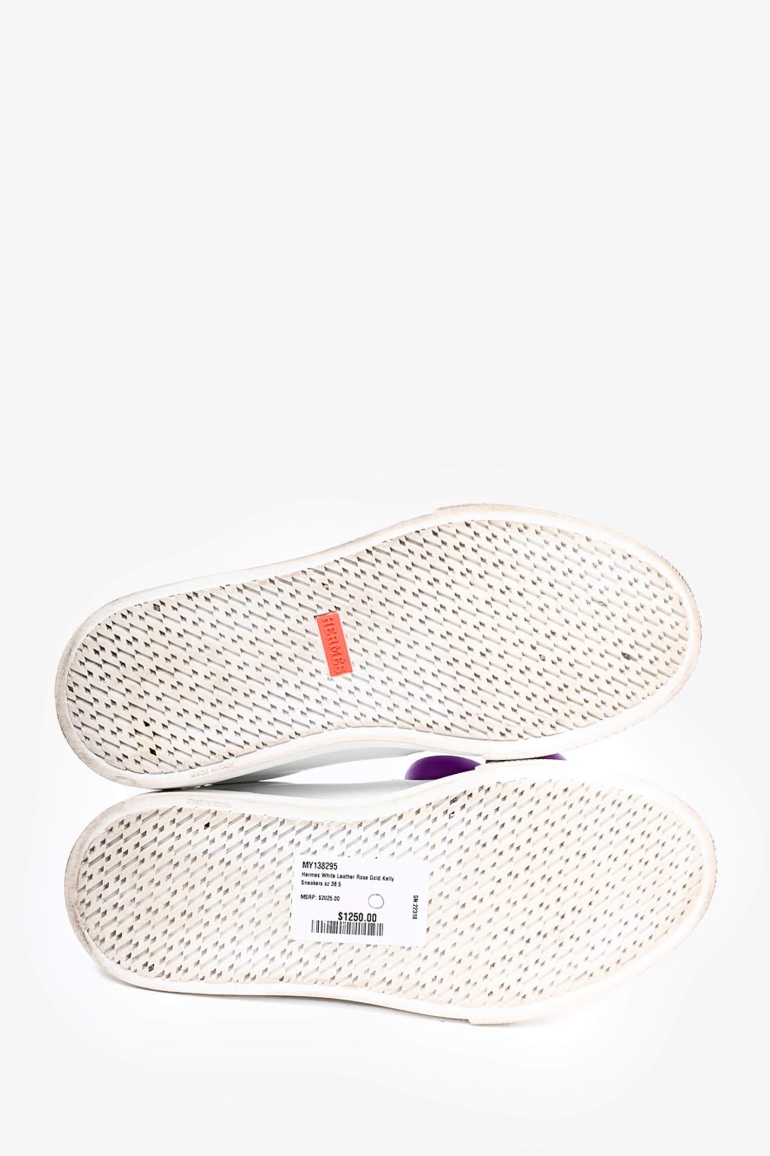Hermès White Leather Rose Gold Kelly Sneakers Size 38.5