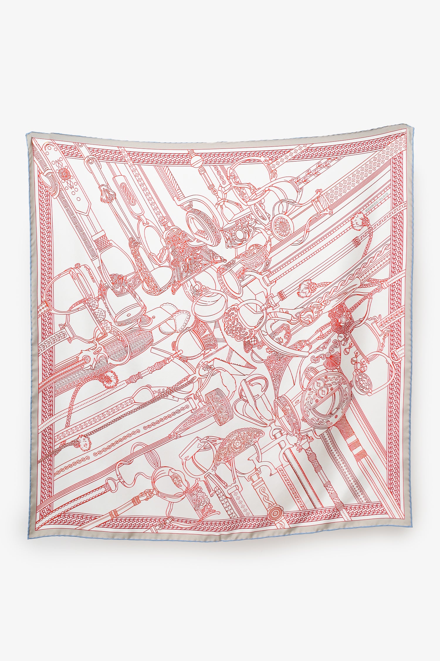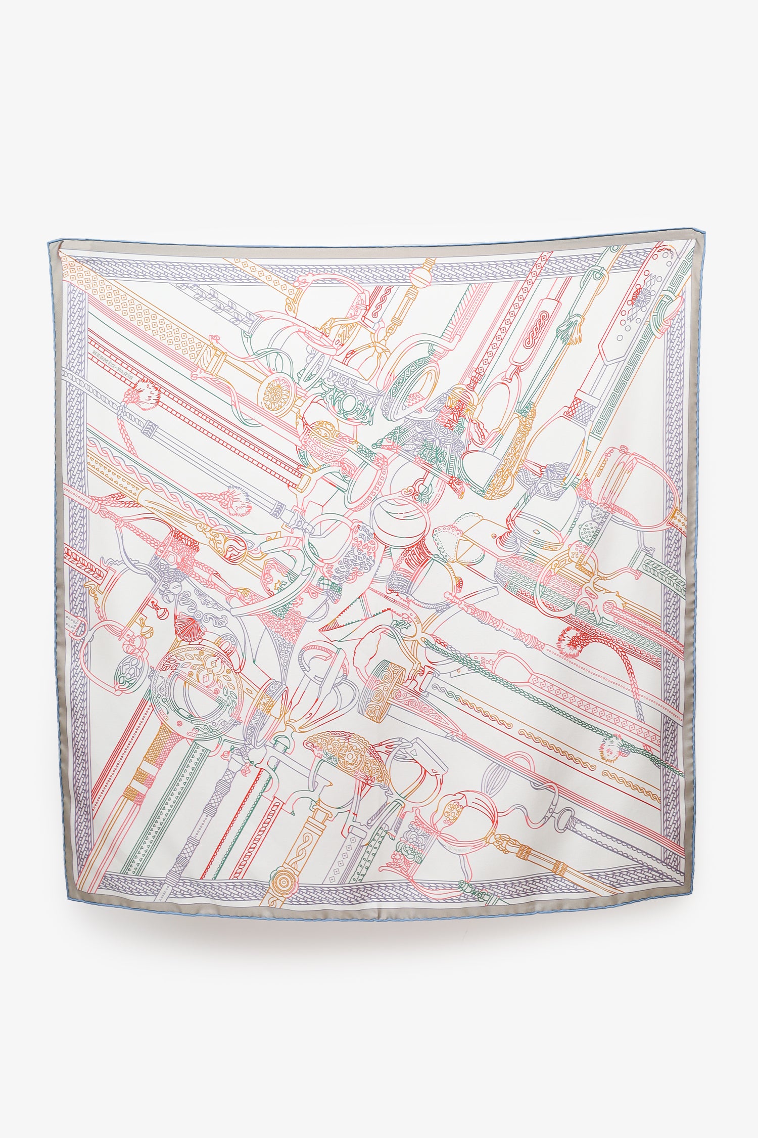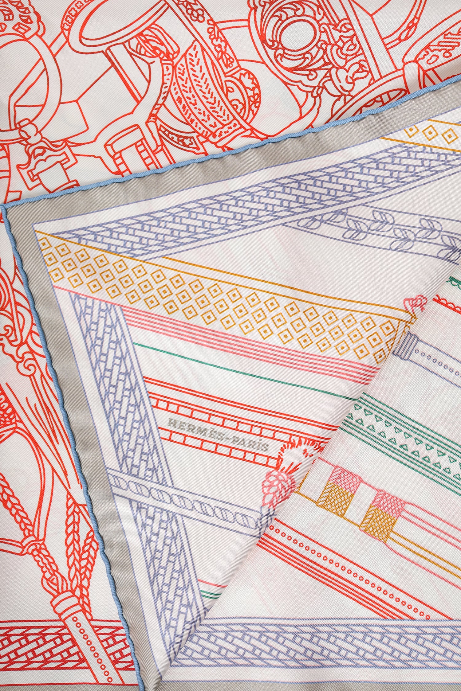 Refresh availabilityHermes White/Multi Silk Pattern Scarf 70. Tonal stitching.