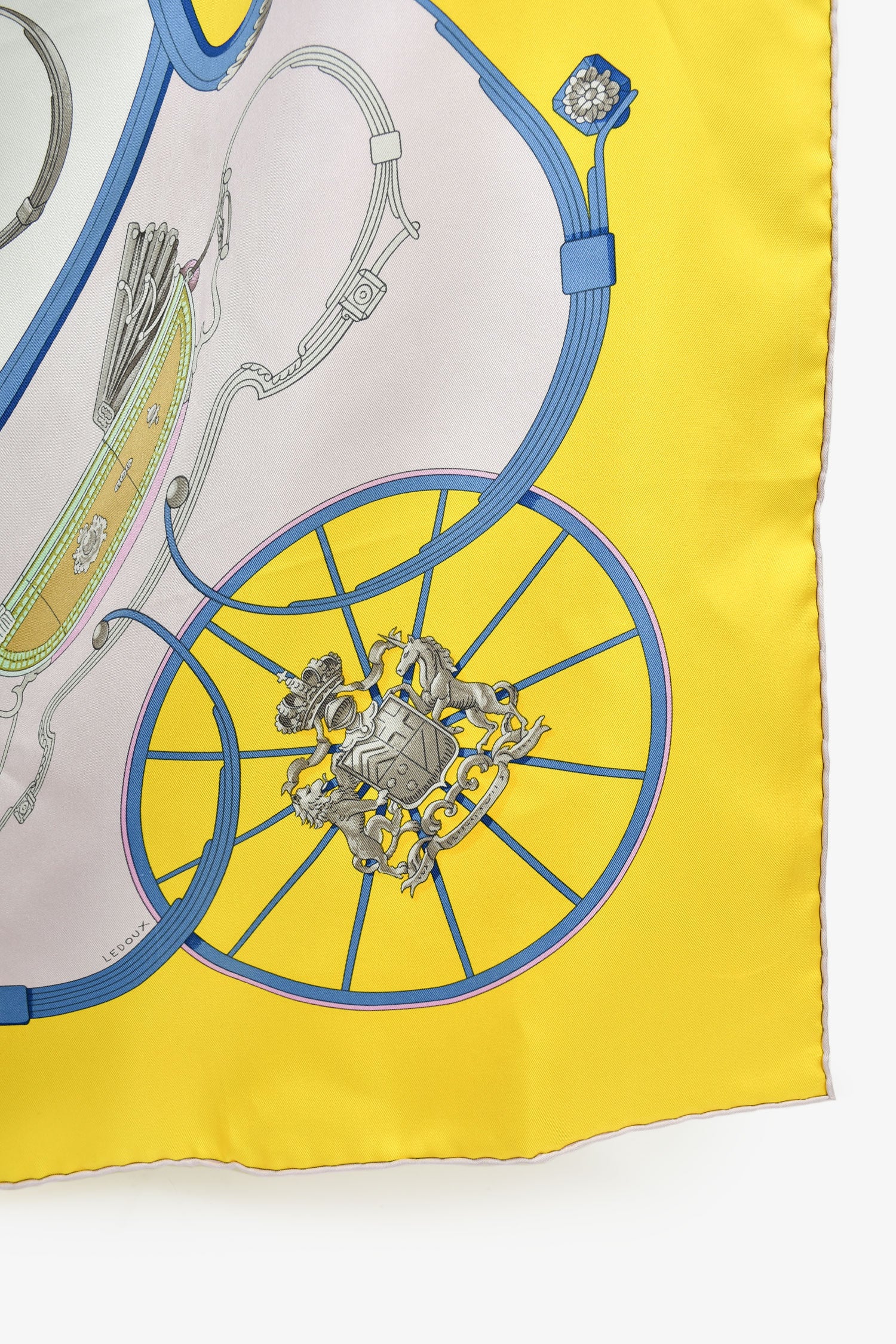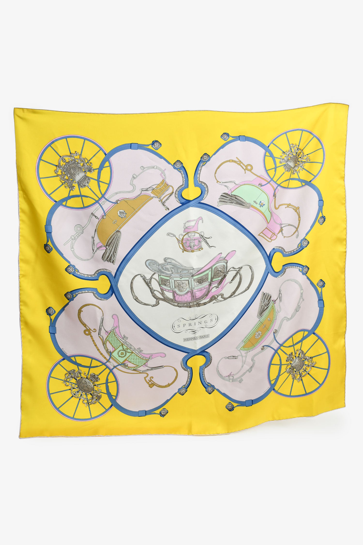 Refresh availabilityHermes Yellow/Blue Silk 'Springs' Scarf 90. Tonal stitching.