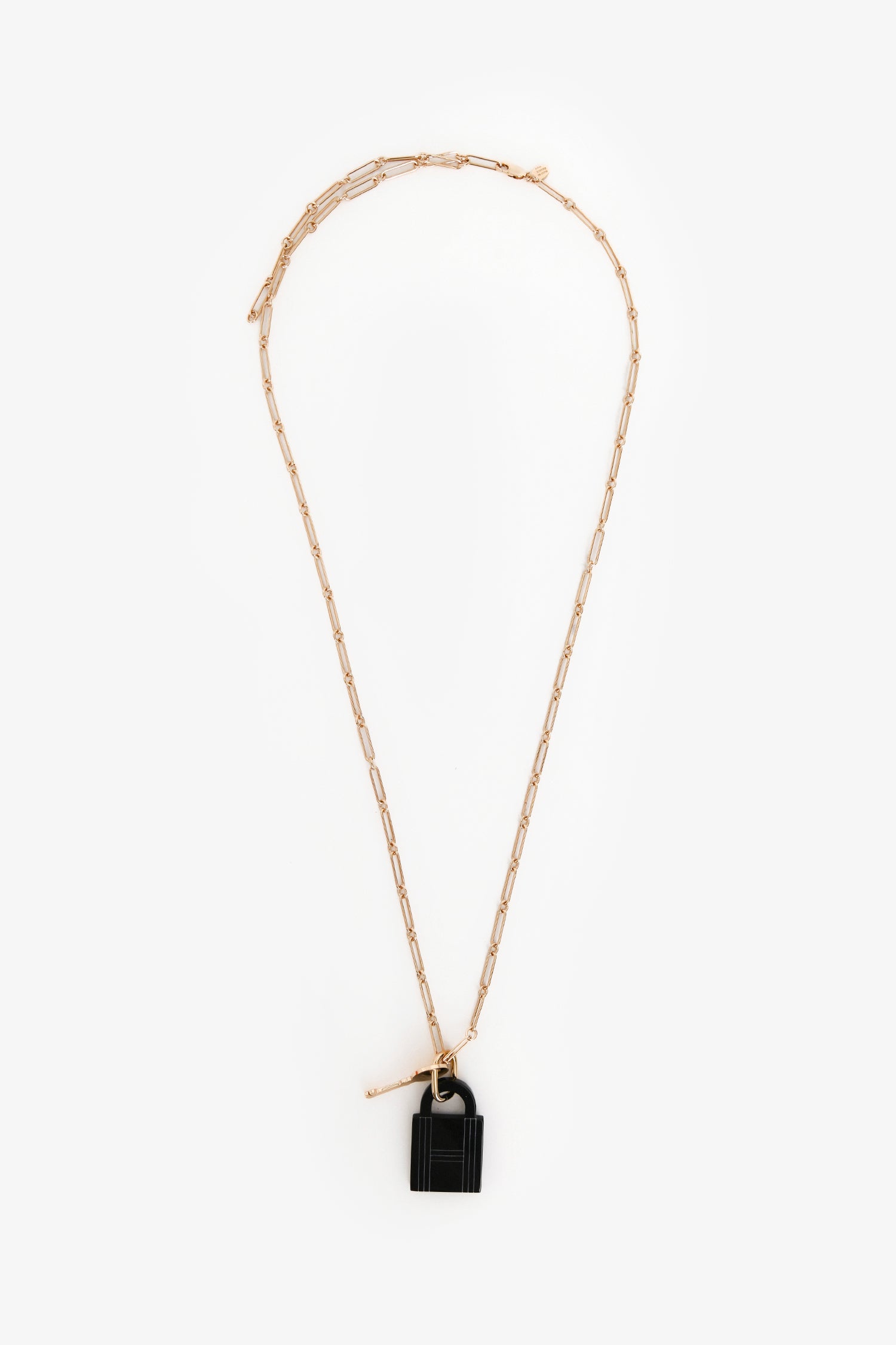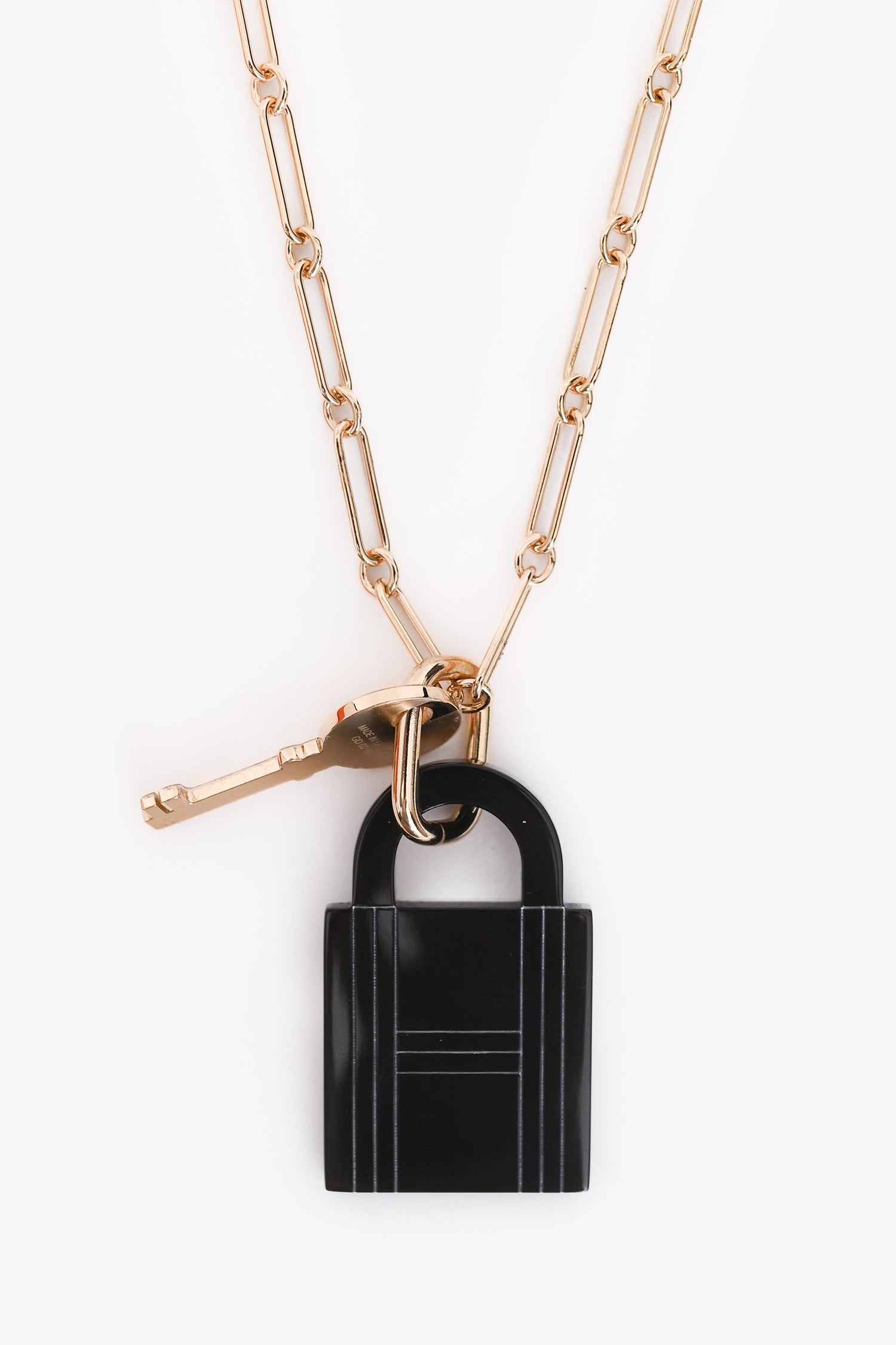 Refresh availabilityHermès Yellow Tone Metal Buffalo Horn Large Amulette Padlock/Key Pendant. Slip-on. Lobster clasp closure.