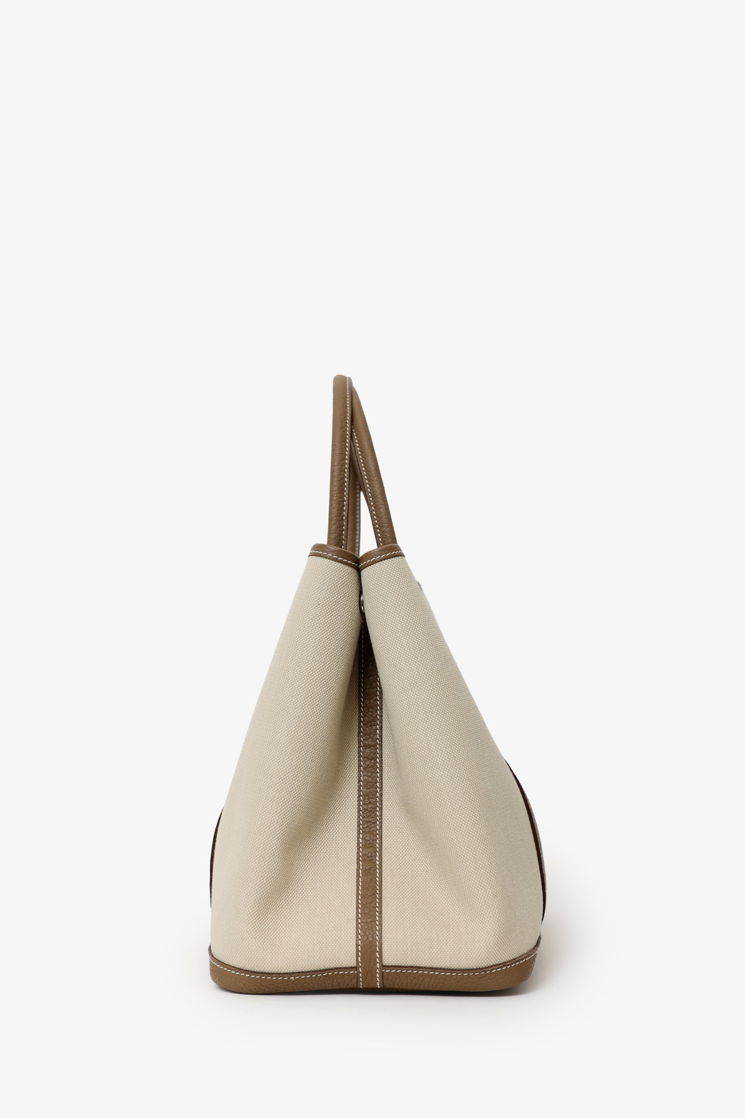 Refresh availabilityHermès 2023 Beige Canvas/Taupe Negonda Leather Garden Party 36 Bag. Top snap-button closures. Twin top handles. Snap-button-up closure to exterior sides. Open interior. Palladium-tone hardware. Contrast stitching.