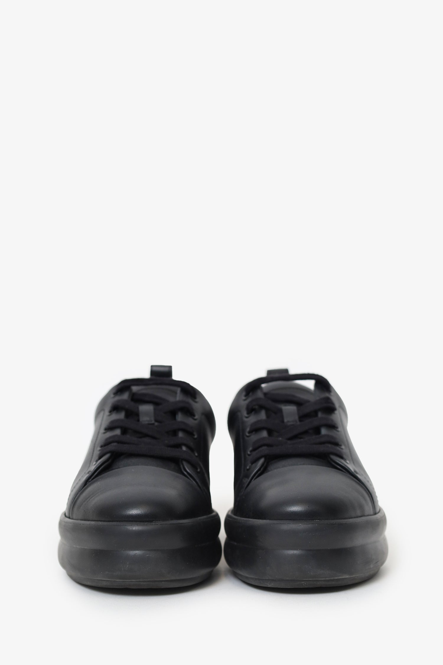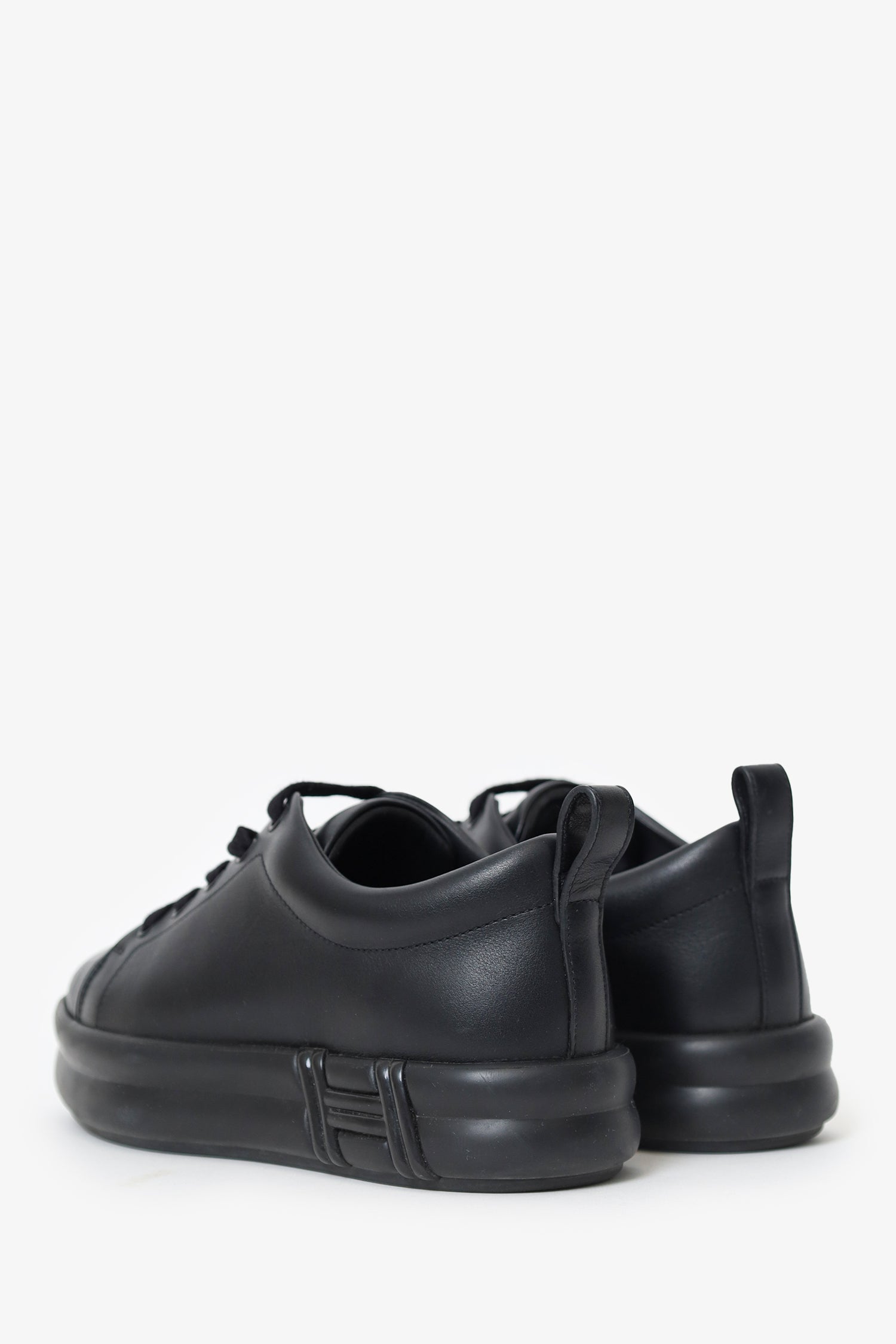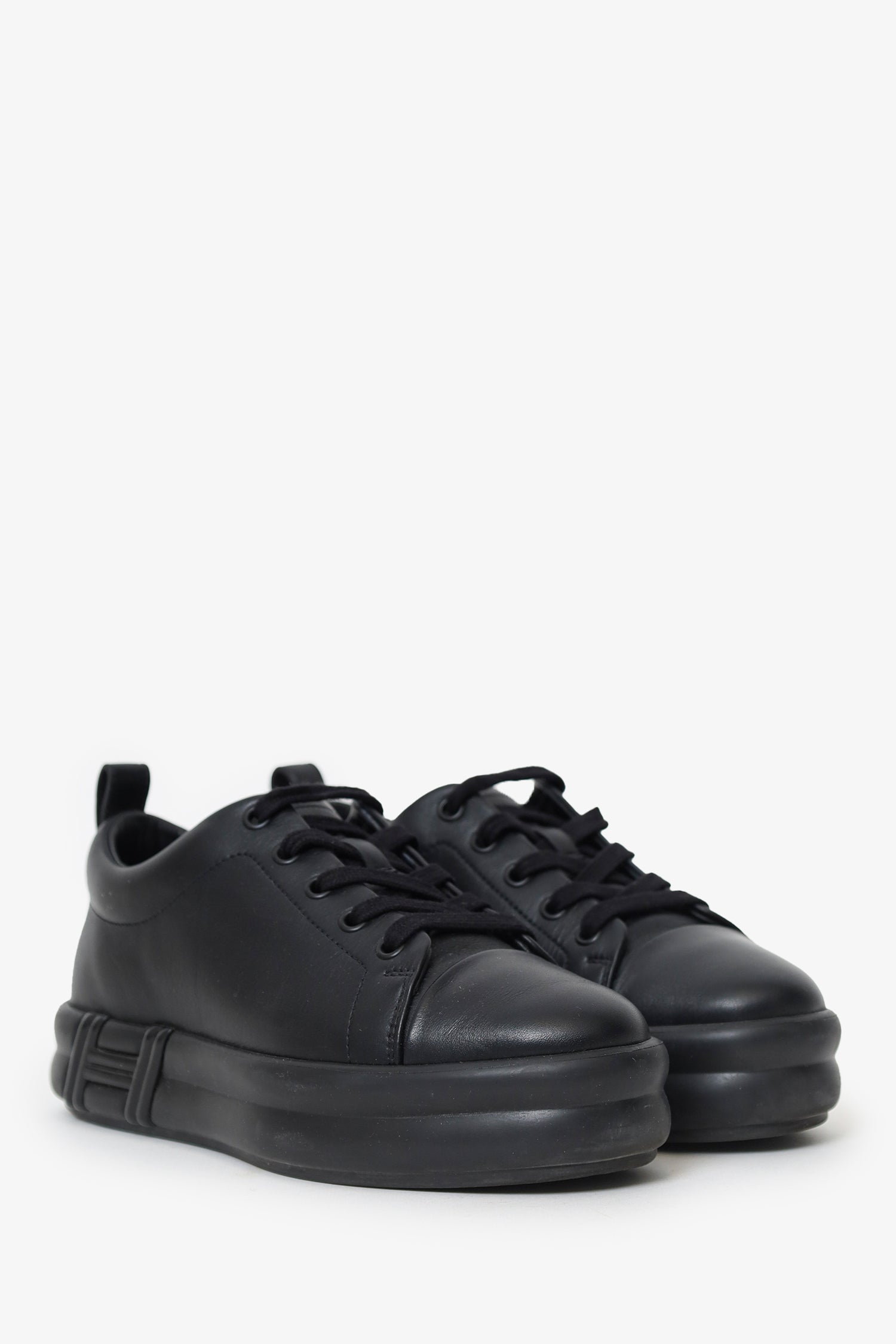 Refresh availabilityHermès Black Leather Happy Sneakers. Pull on. Front lace-up closure. Rear pull tab. Round toe. Tonal hardware. Tonal stitching.