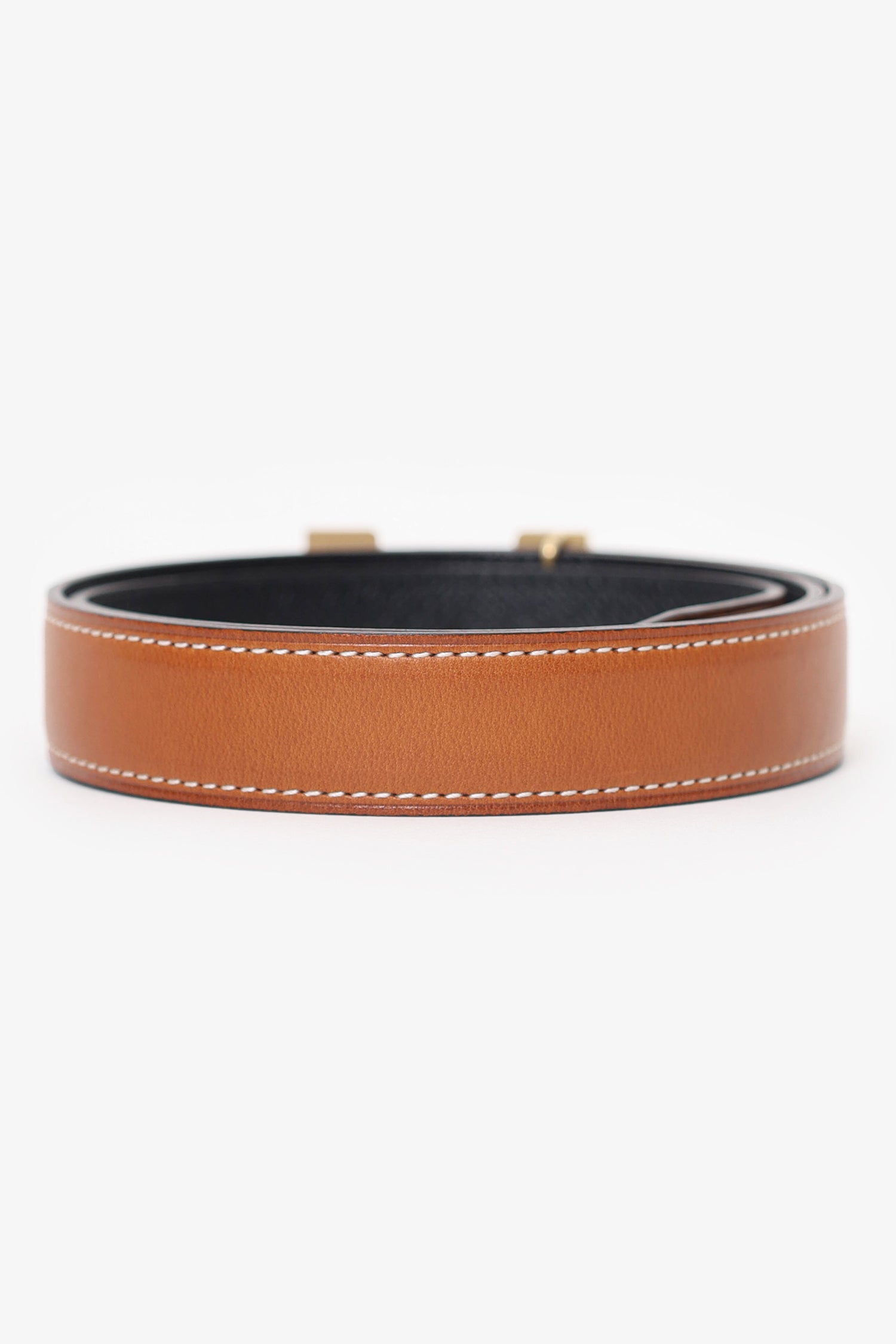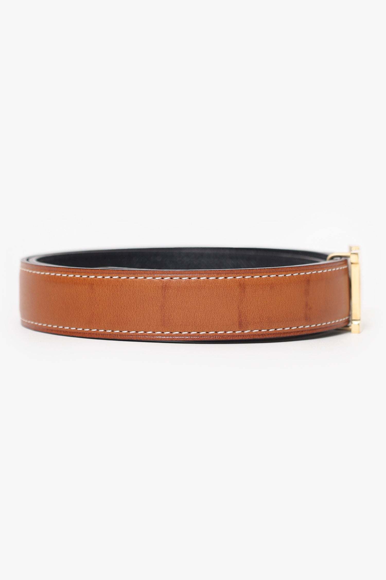 Hermès Black/Gold Epsom Leather Reversible 'H' Belt Size 75