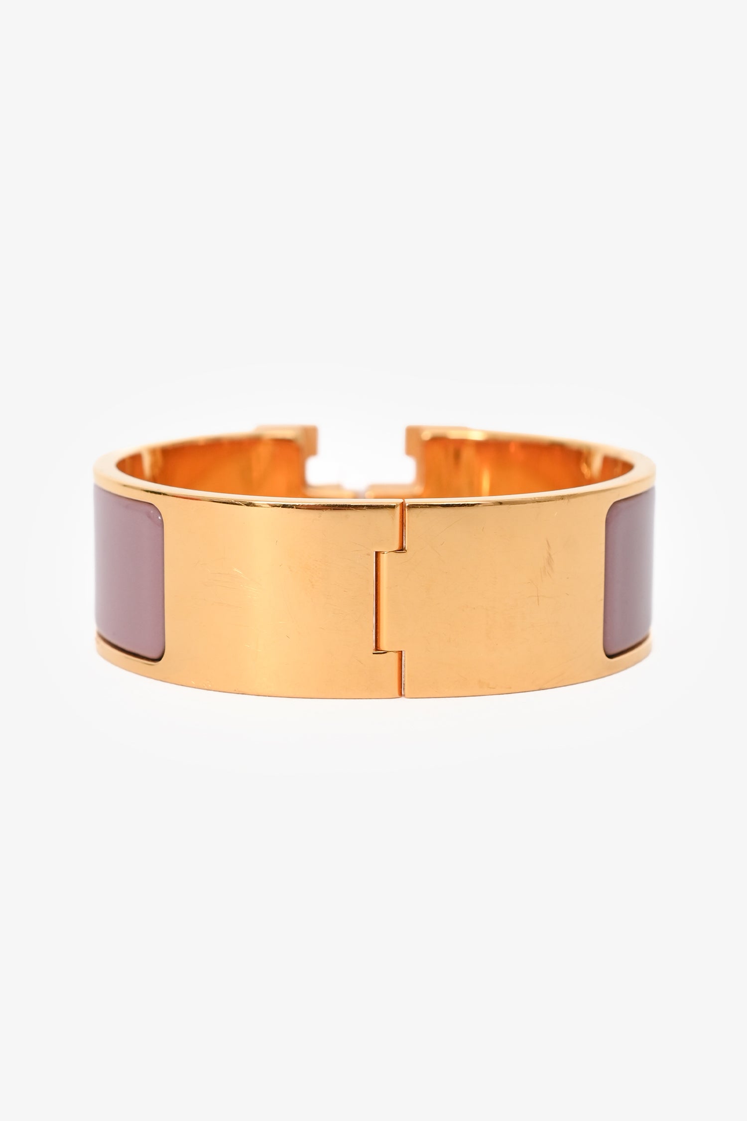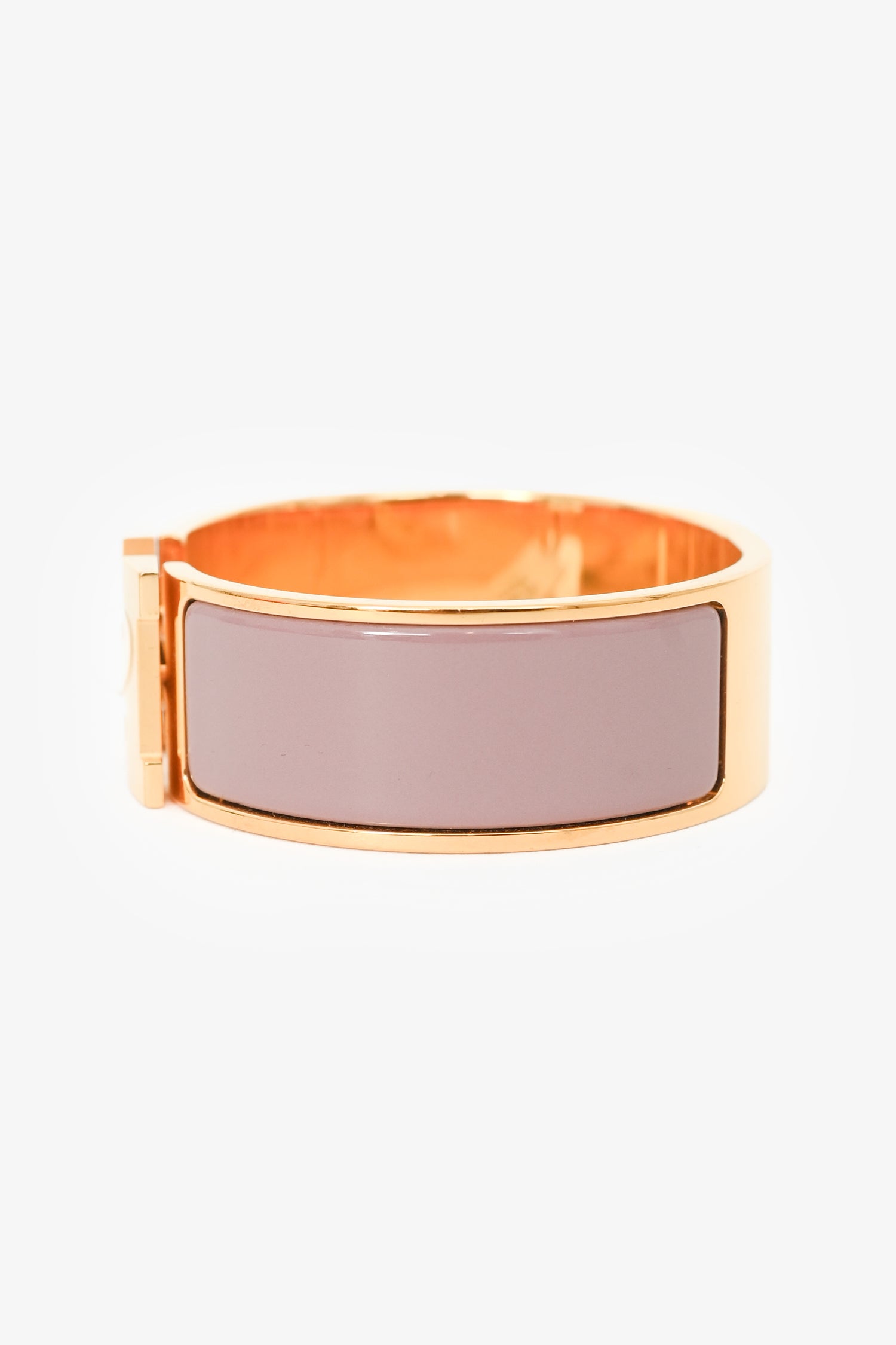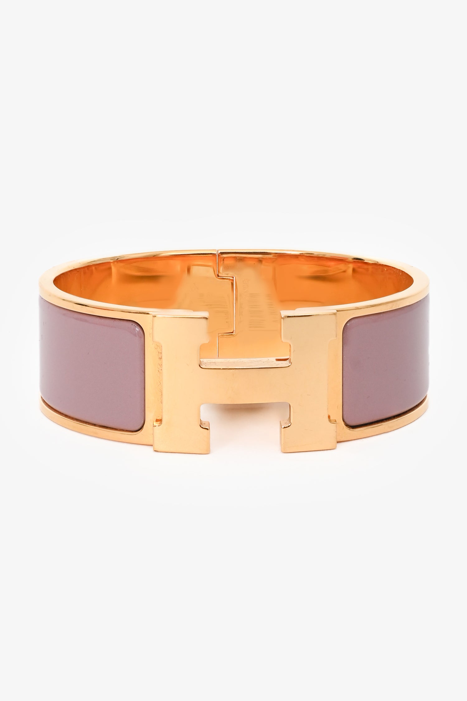 Refresh availabilityHermès Gold Tone Pink Ceramic 'Clic Clac H' GM Bracelet. Turn-lock closure. Gold-tone hardware.