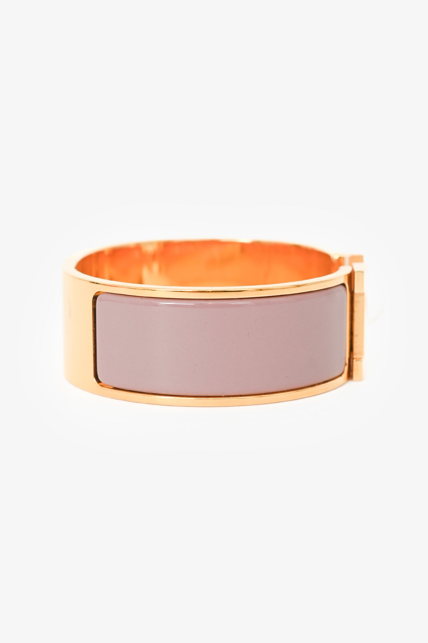 Hermès Gold Tone Pink Ceramic 'Clic Clac H' GM Bracelet