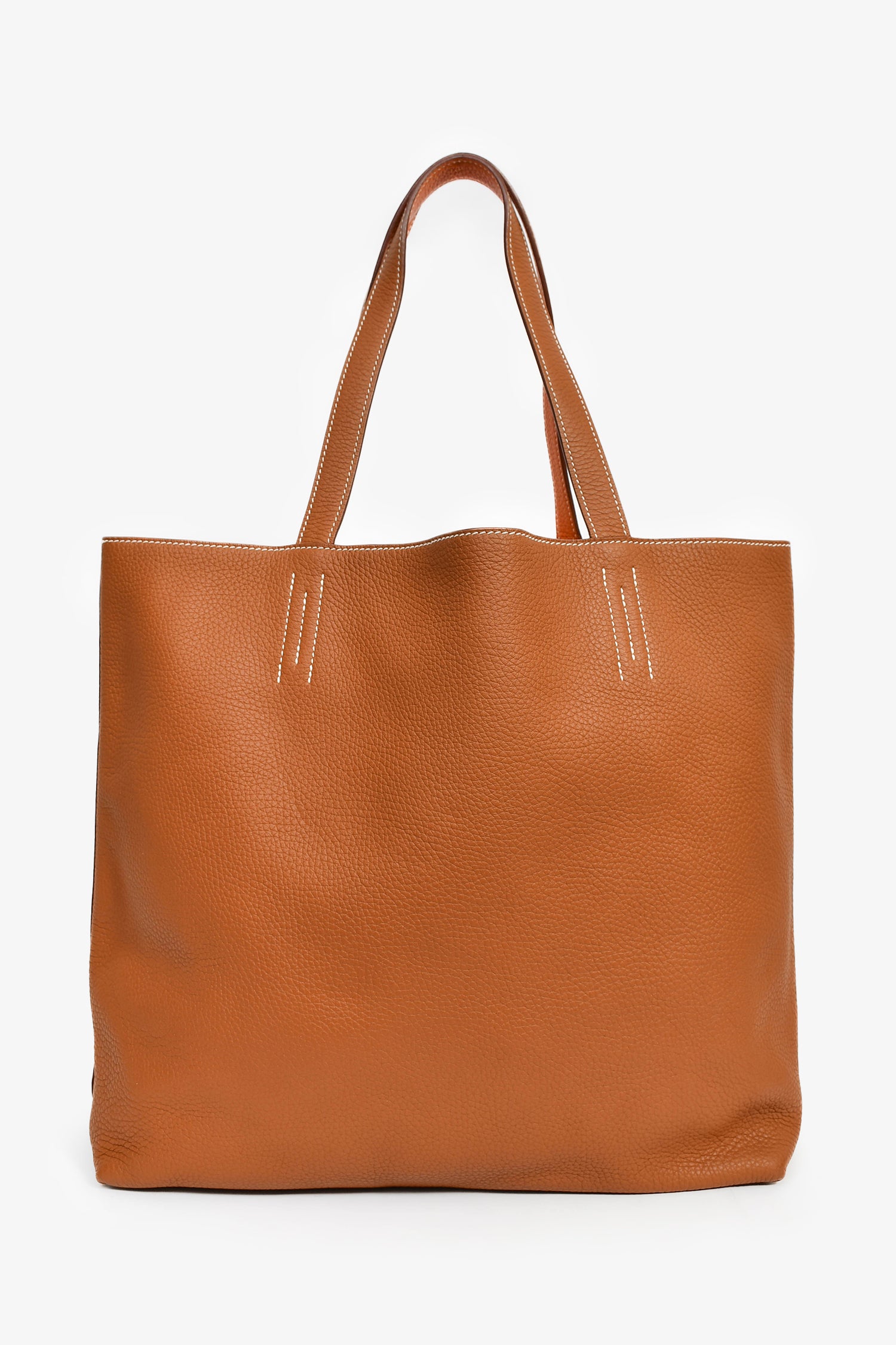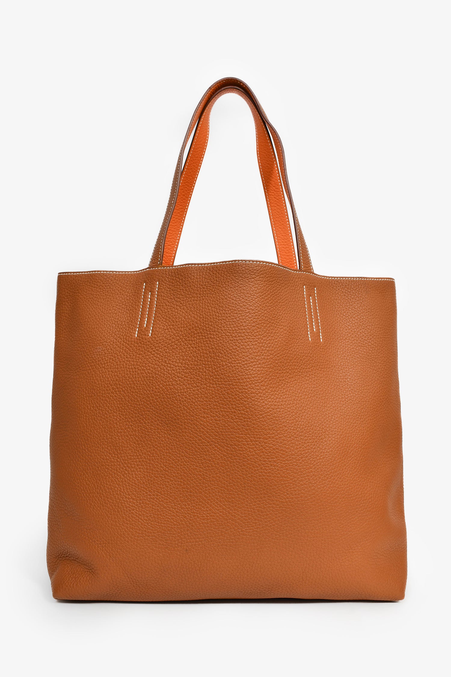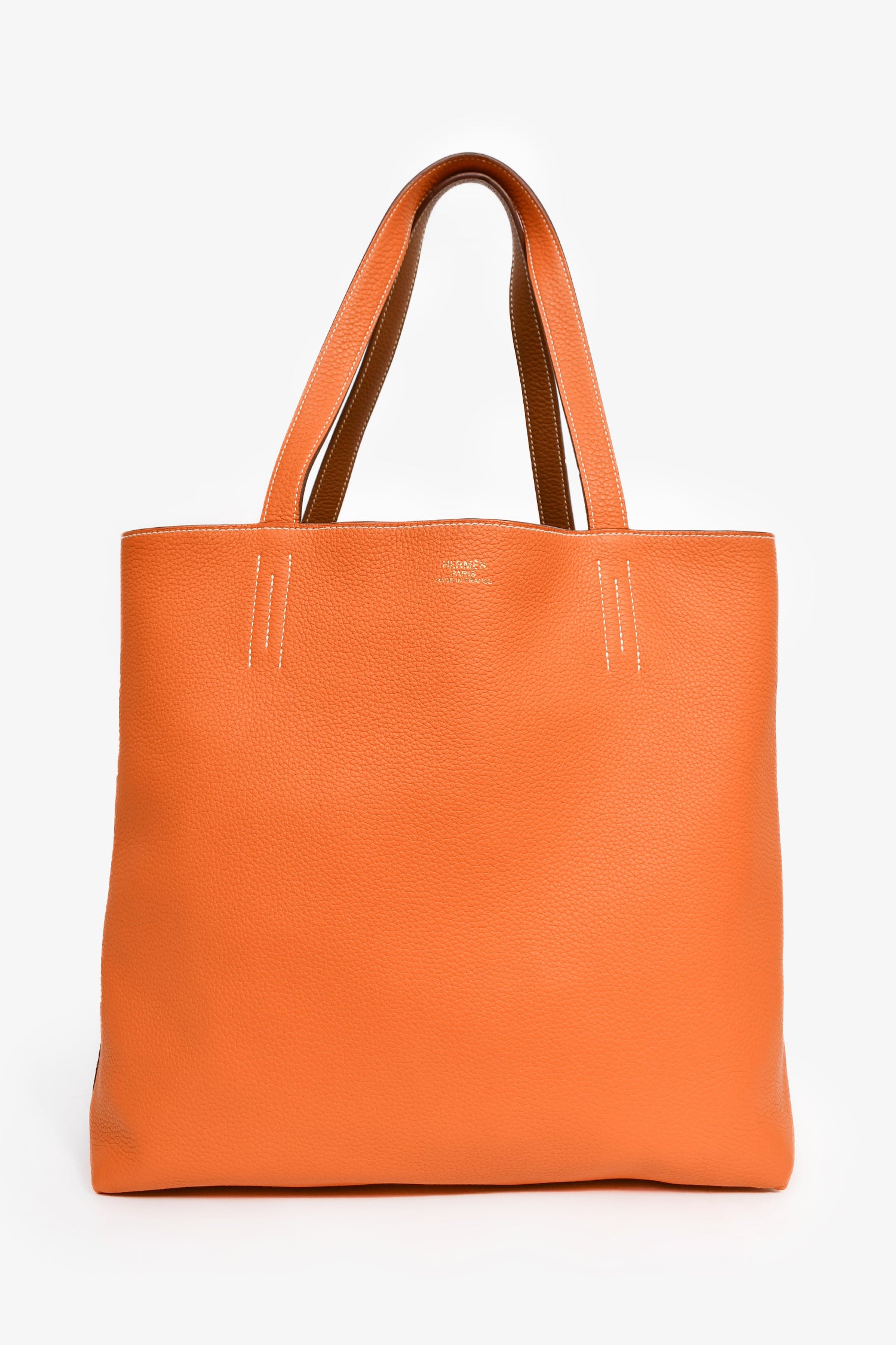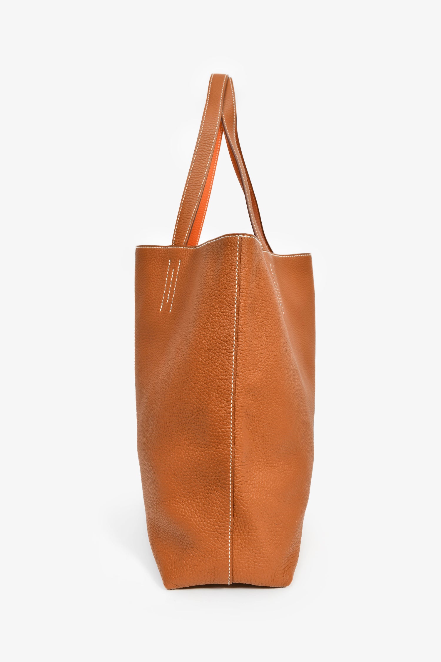 Refresh availabilityHermès Gold/Orange Reversible Togo Leather 'Sens 36' Tote. Open top. 2 shoulder straps. Open interior. Contrast stitching.