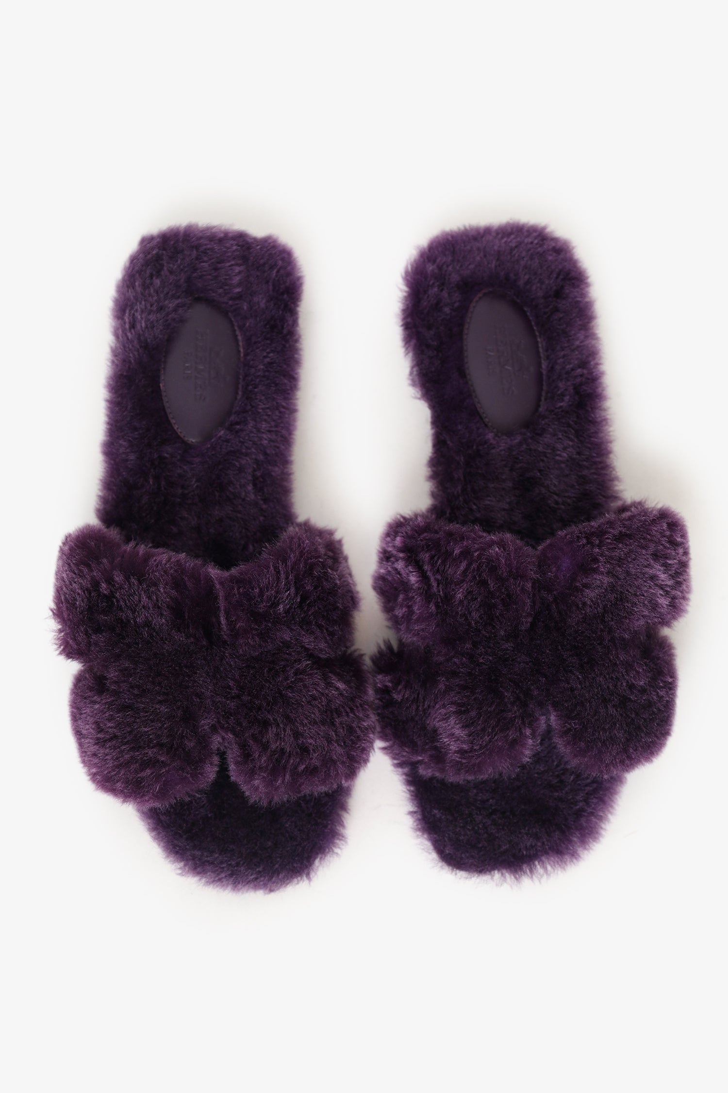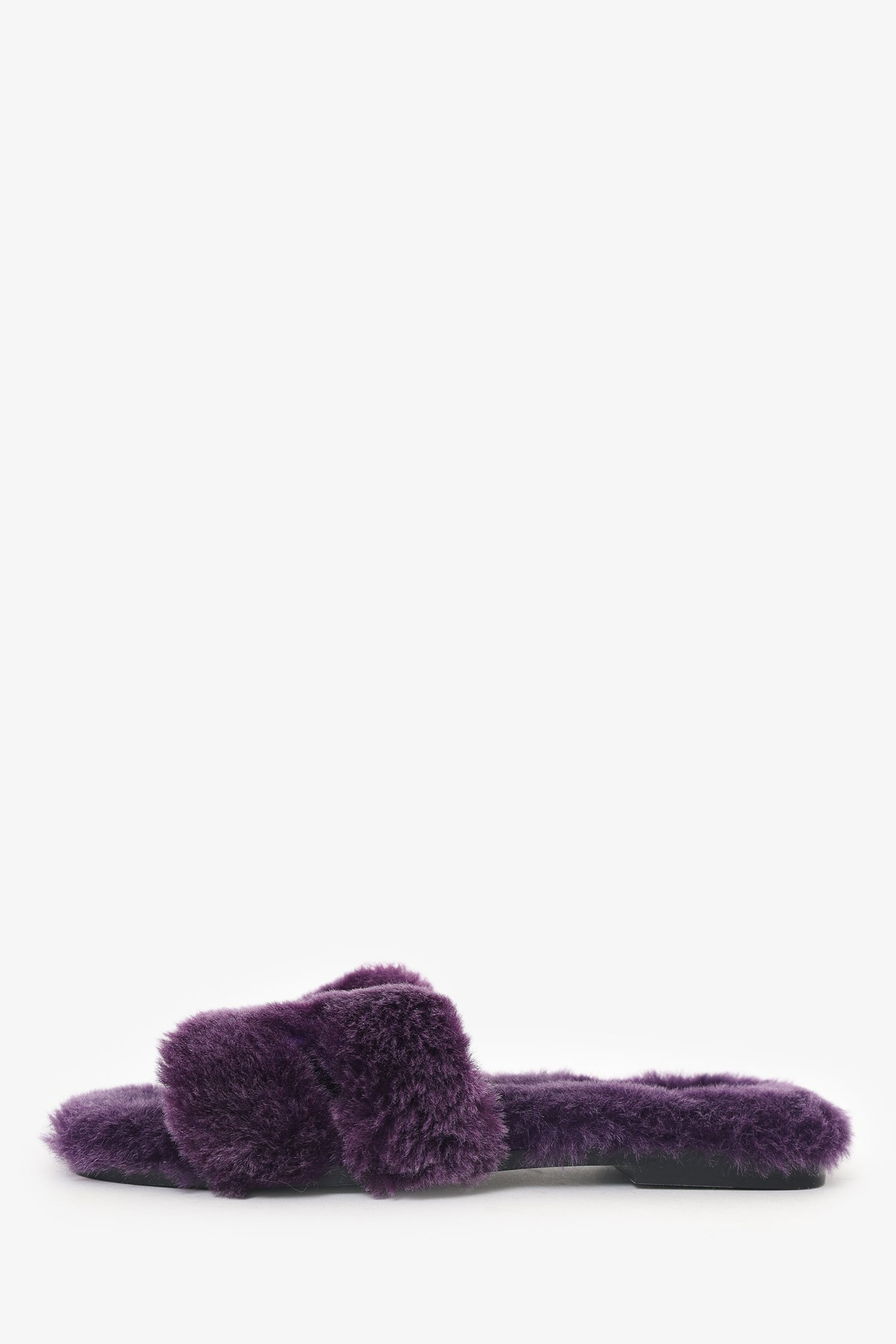 Refresh availabilityHermès Violet Shearling 'Oran' Sandals. Slip-on. Round-open toe. Tonal stitching.