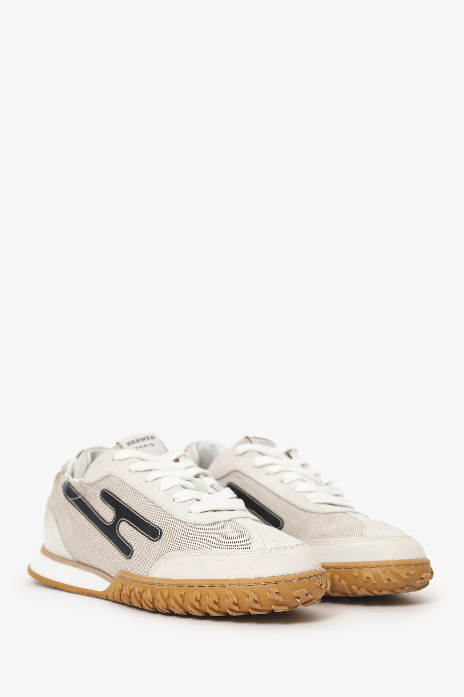 Hermès White/Grey Toile Suede Goatskin Jet Sneakers Size 38