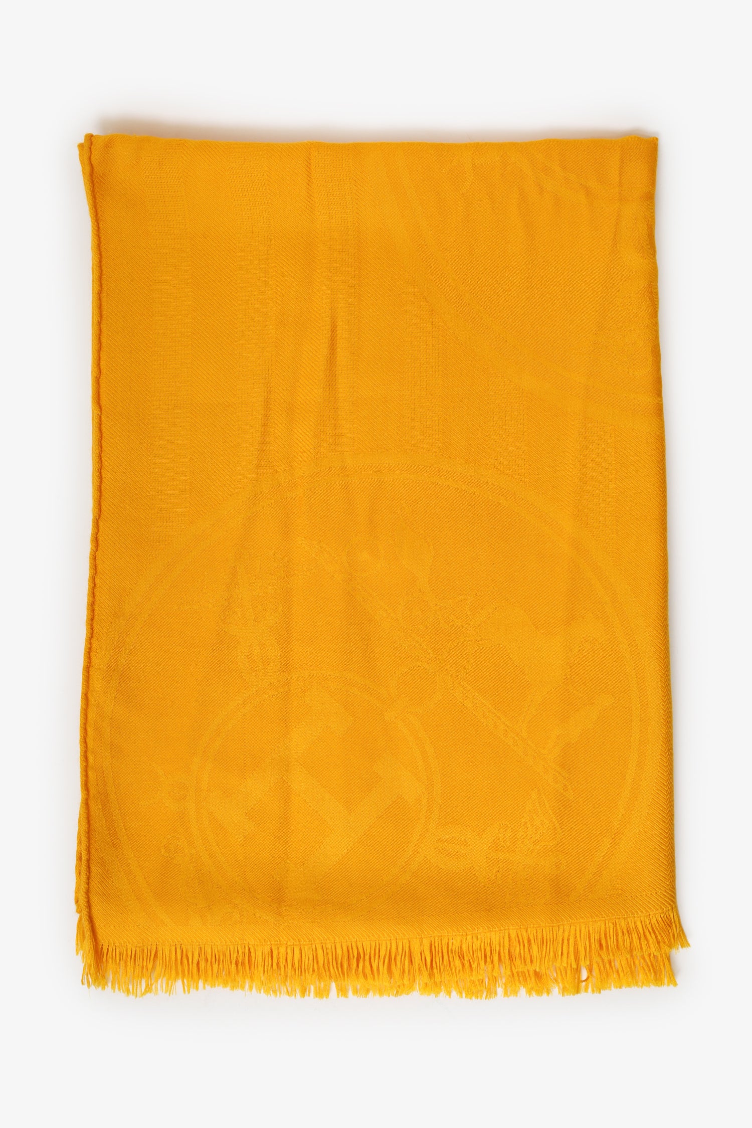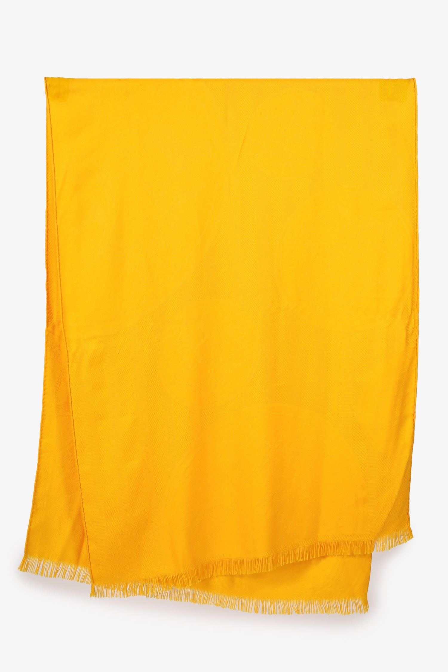 Refresh availabilityHermès Yellow Cashmere/Silk New Libris Stole. Fringe hem detail. Tonal stitching.