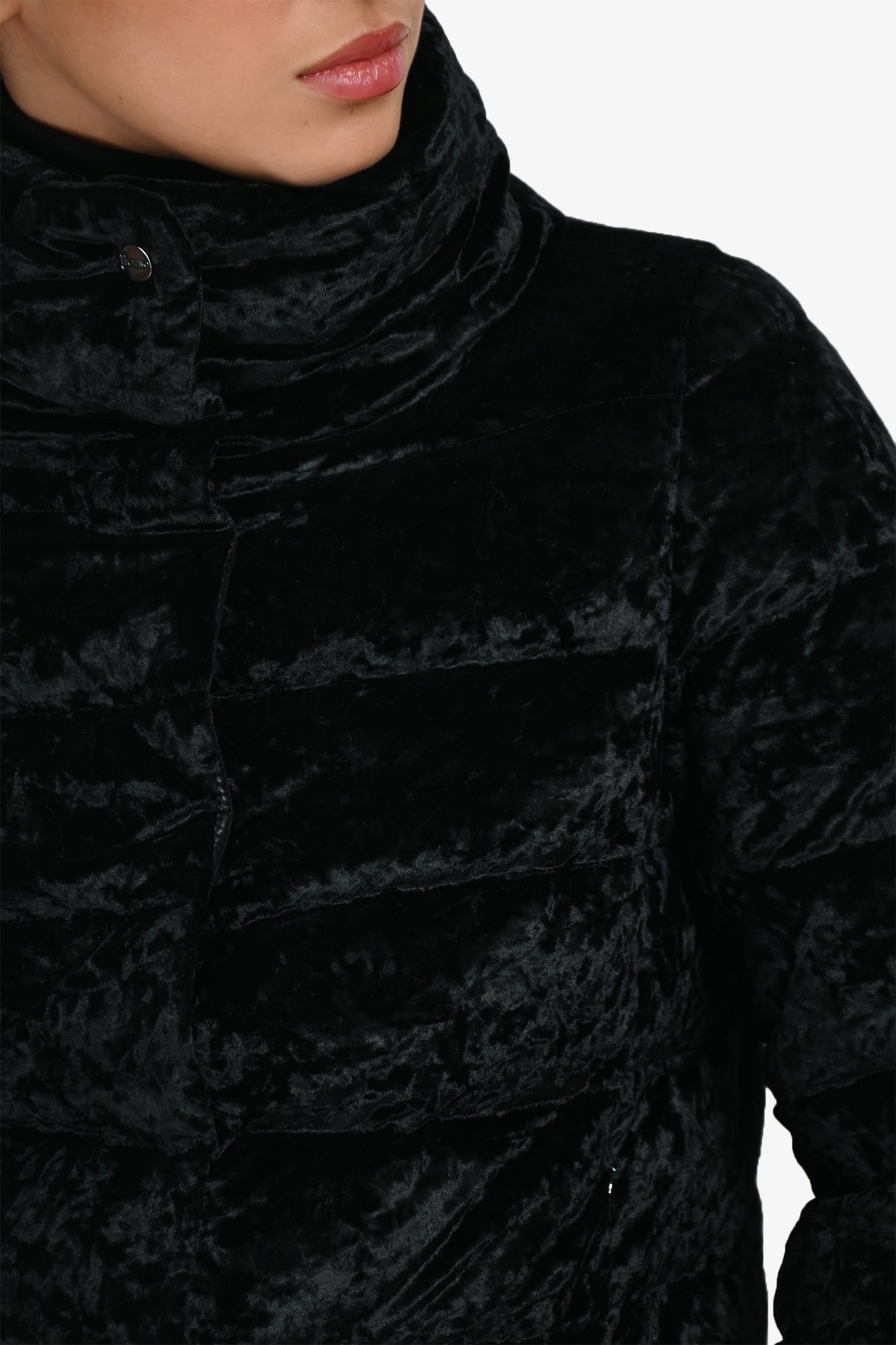 Herno Black Crushed Velvet Puffer Jacket Size 36