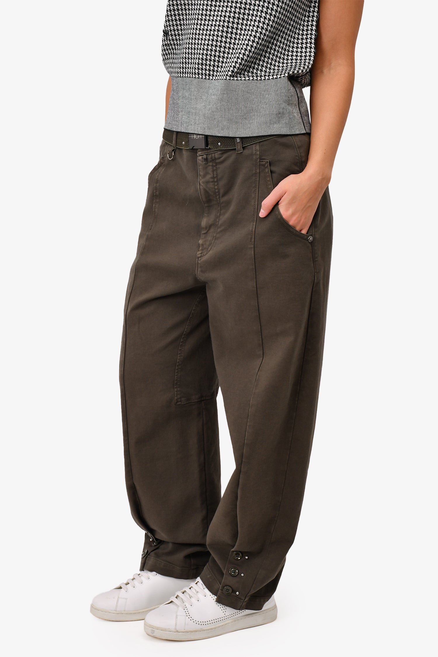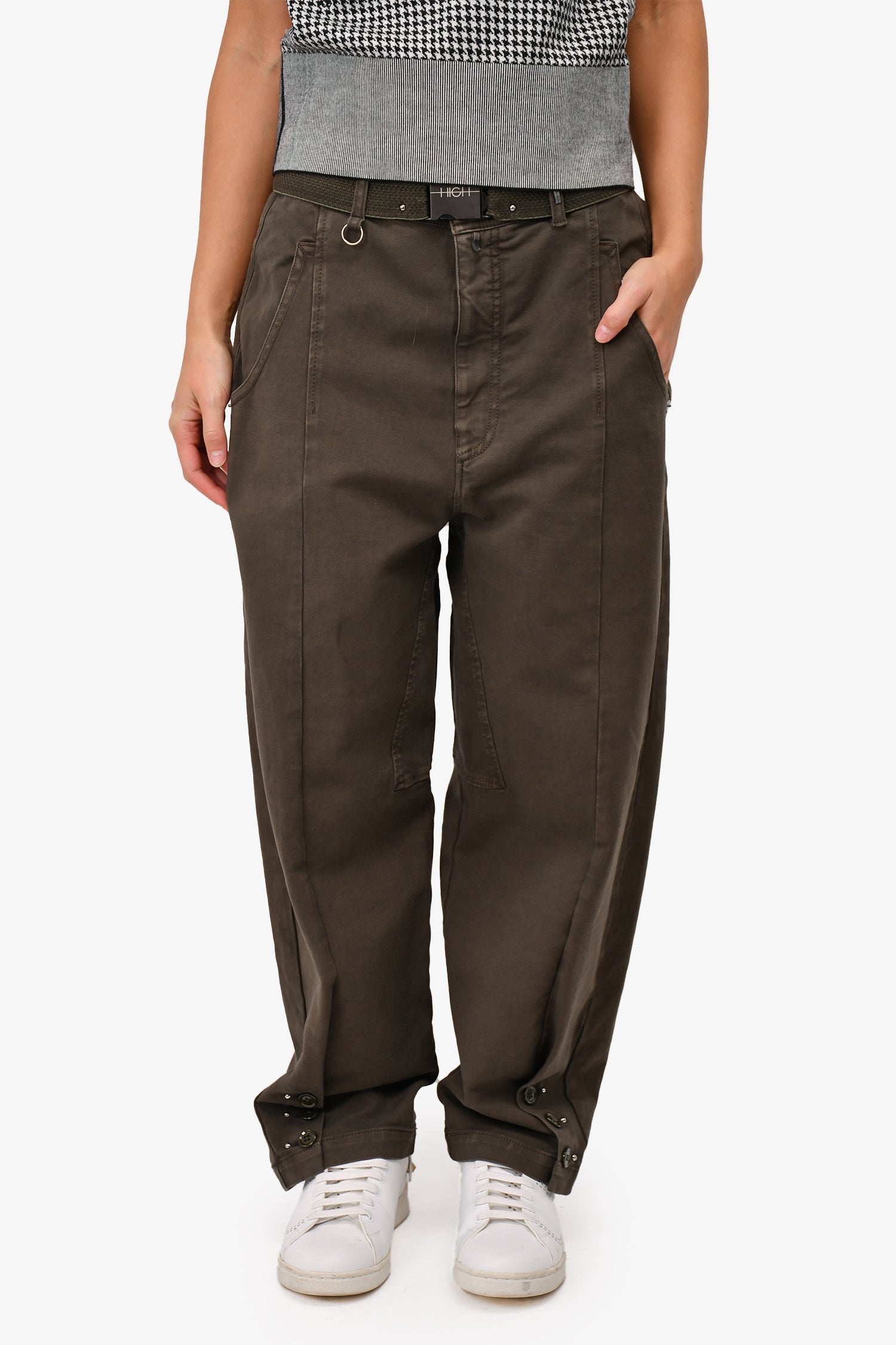 Refresh availabilityHigh Dark Green Cotton Balloon Leg Belted Pants. Front button closure with zipper and buckle. Two front and back pockets. Grey-tonal hardware. Tonal stitching.
