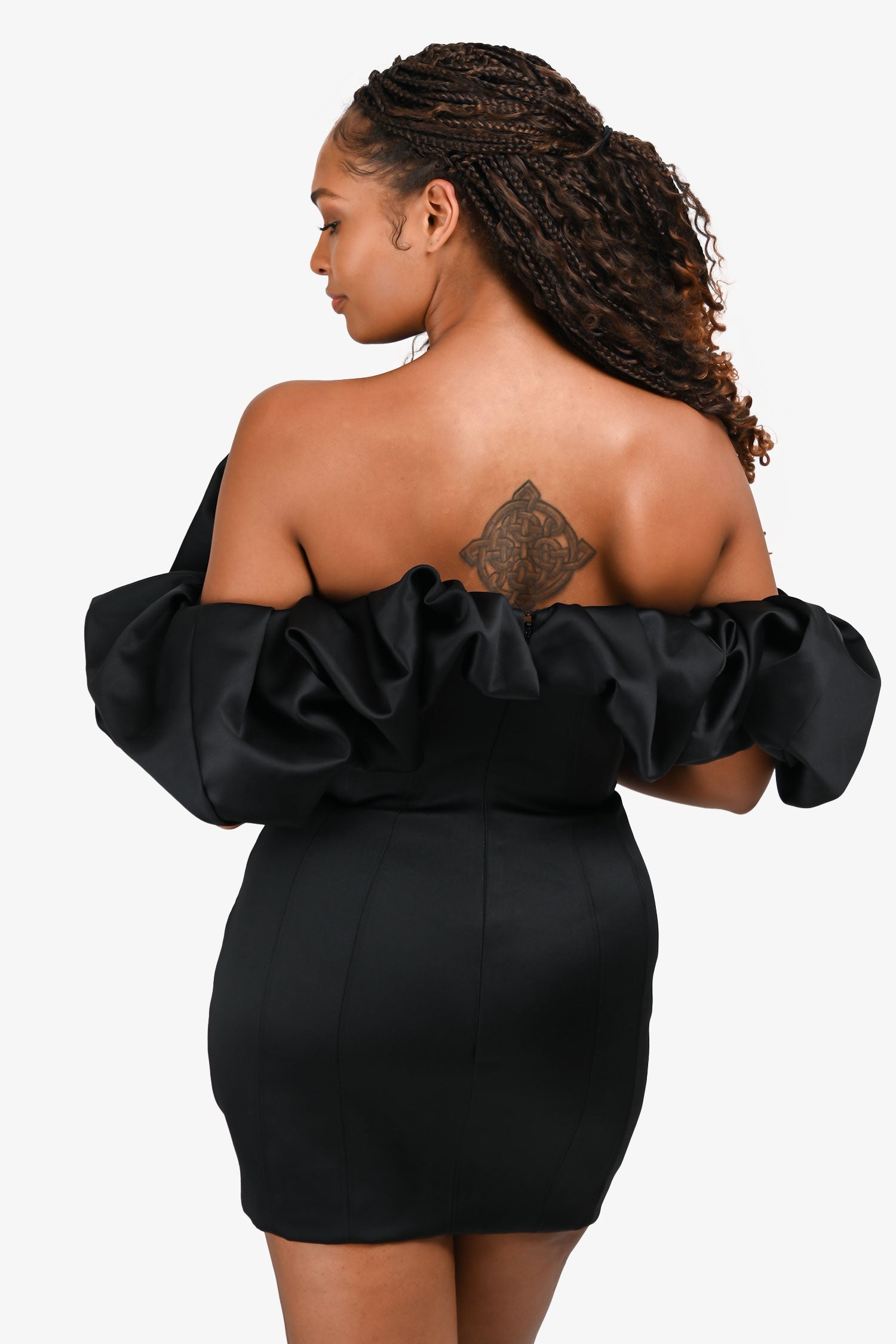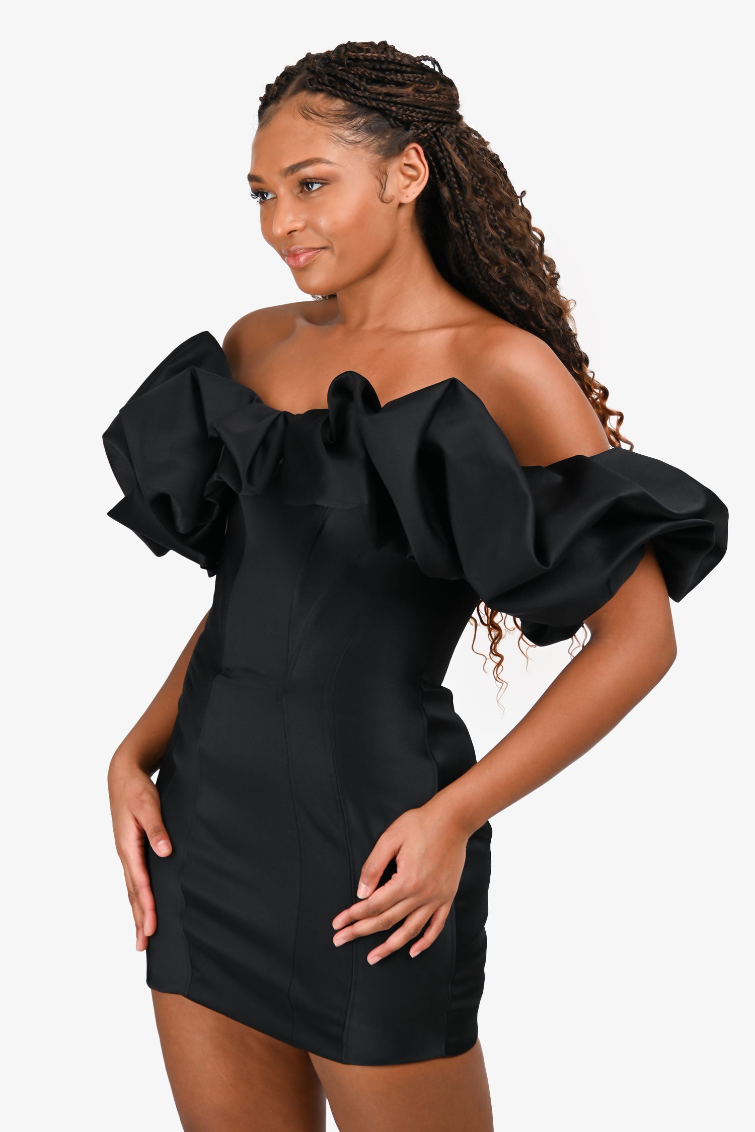 House of CB Black Satin 'Selena' Ruffle Strapless Dress Size M