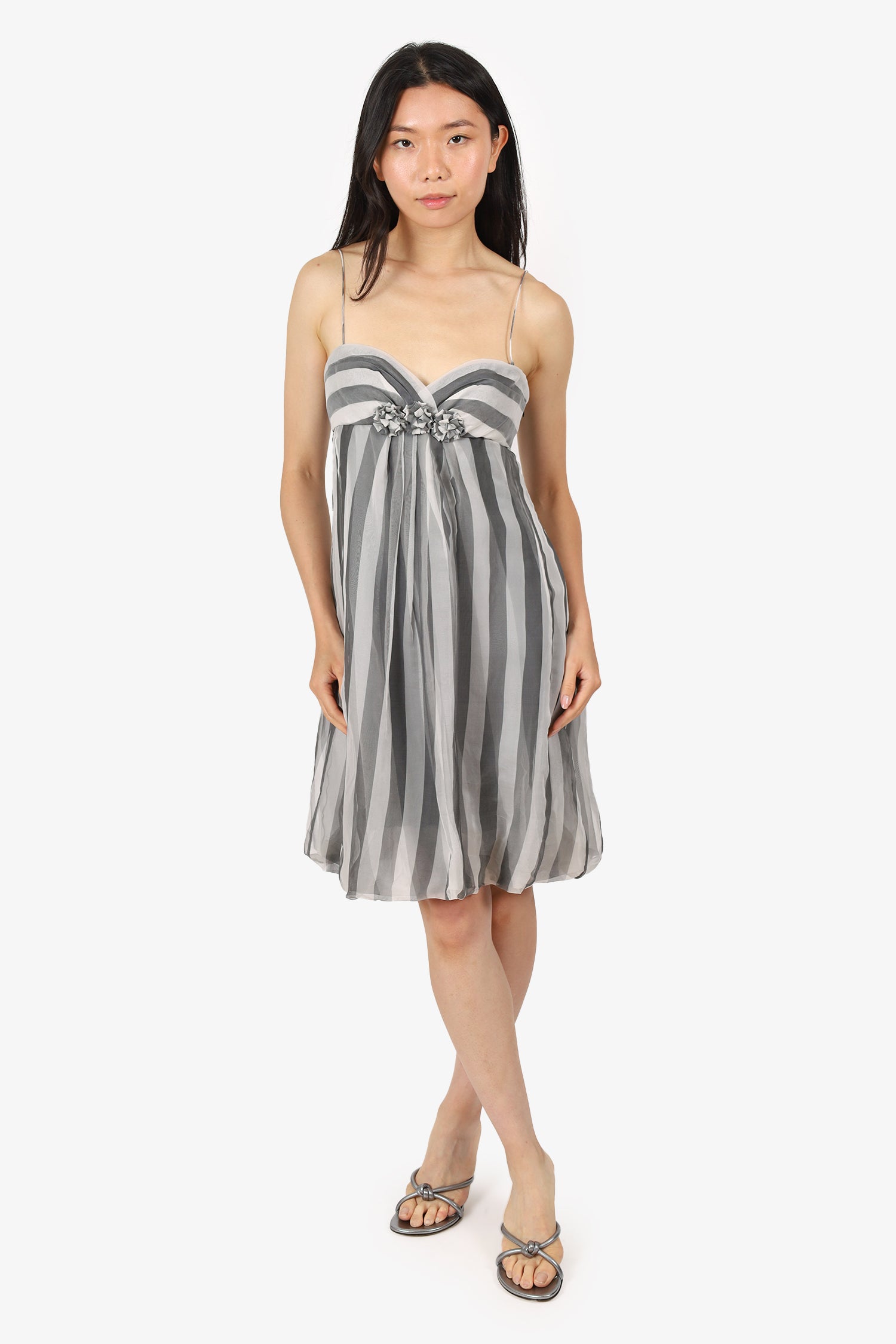 Hugo Boss Grey Silk Striped Bubble Hem Mini Dress Size 6