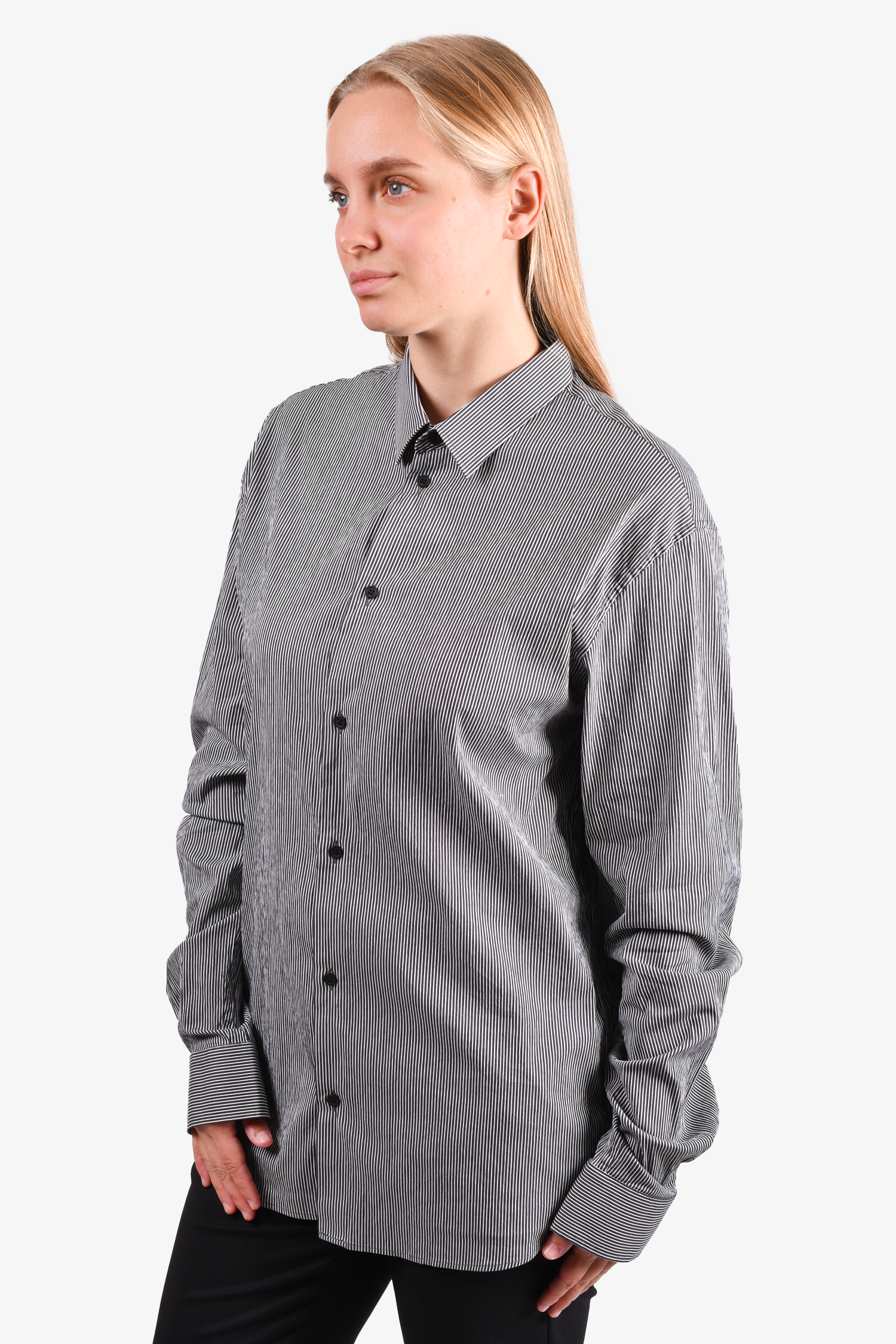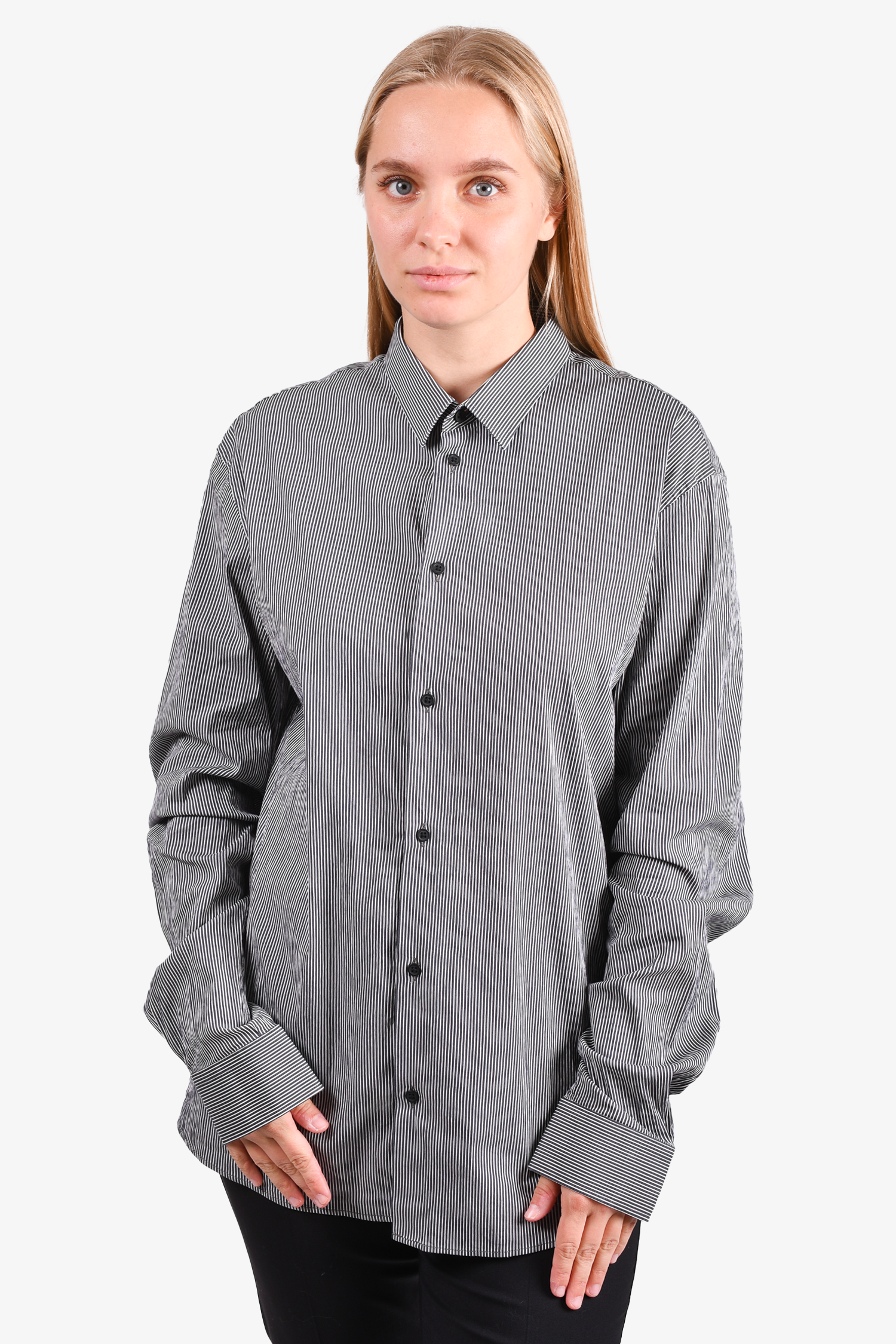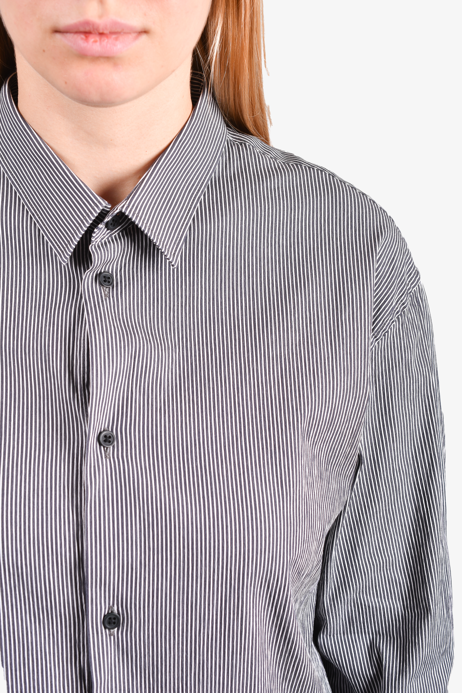Refresh availabilityIRO Navy Pinstriped Cotton Button-Down Shirt. Button closures on the cuffs. Tonal stitching.