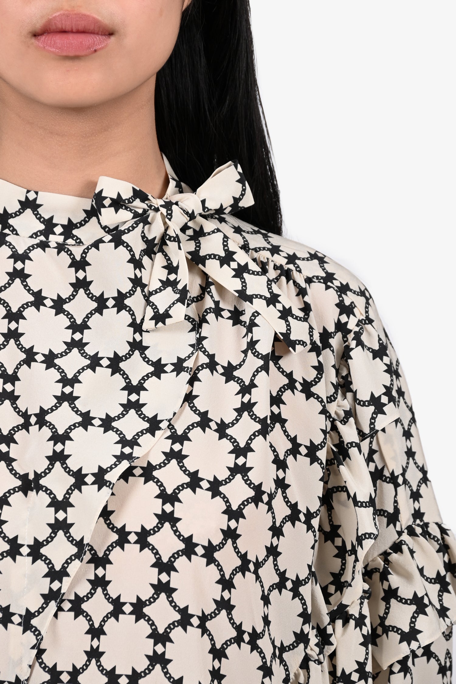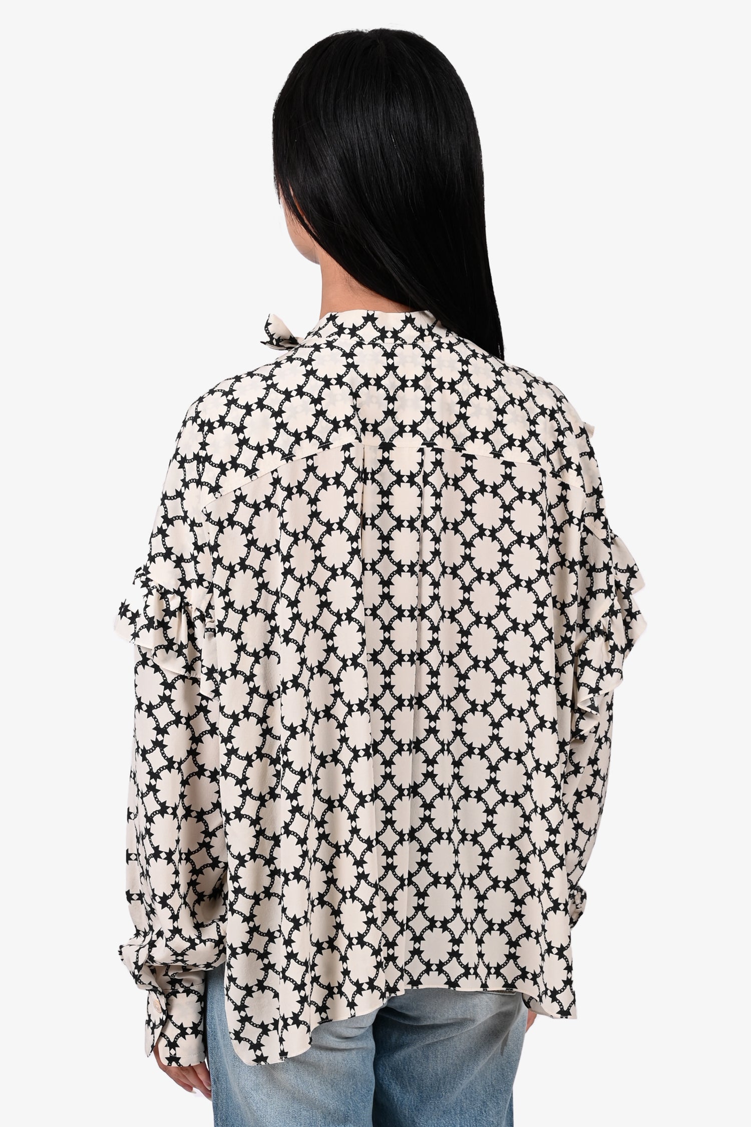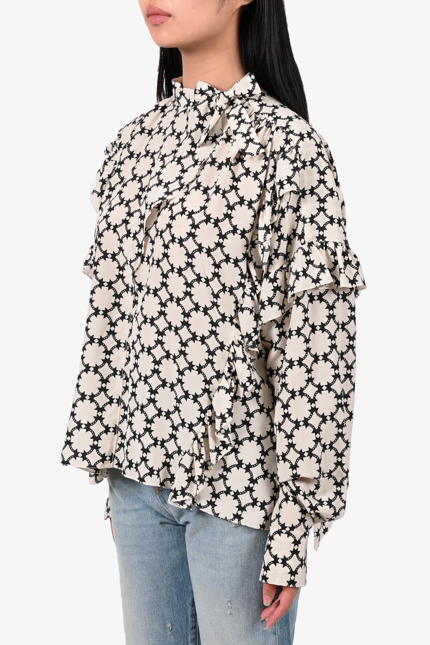 Isabel Marant Beige/Black Printed Silk Ruffle Blouse Size 36