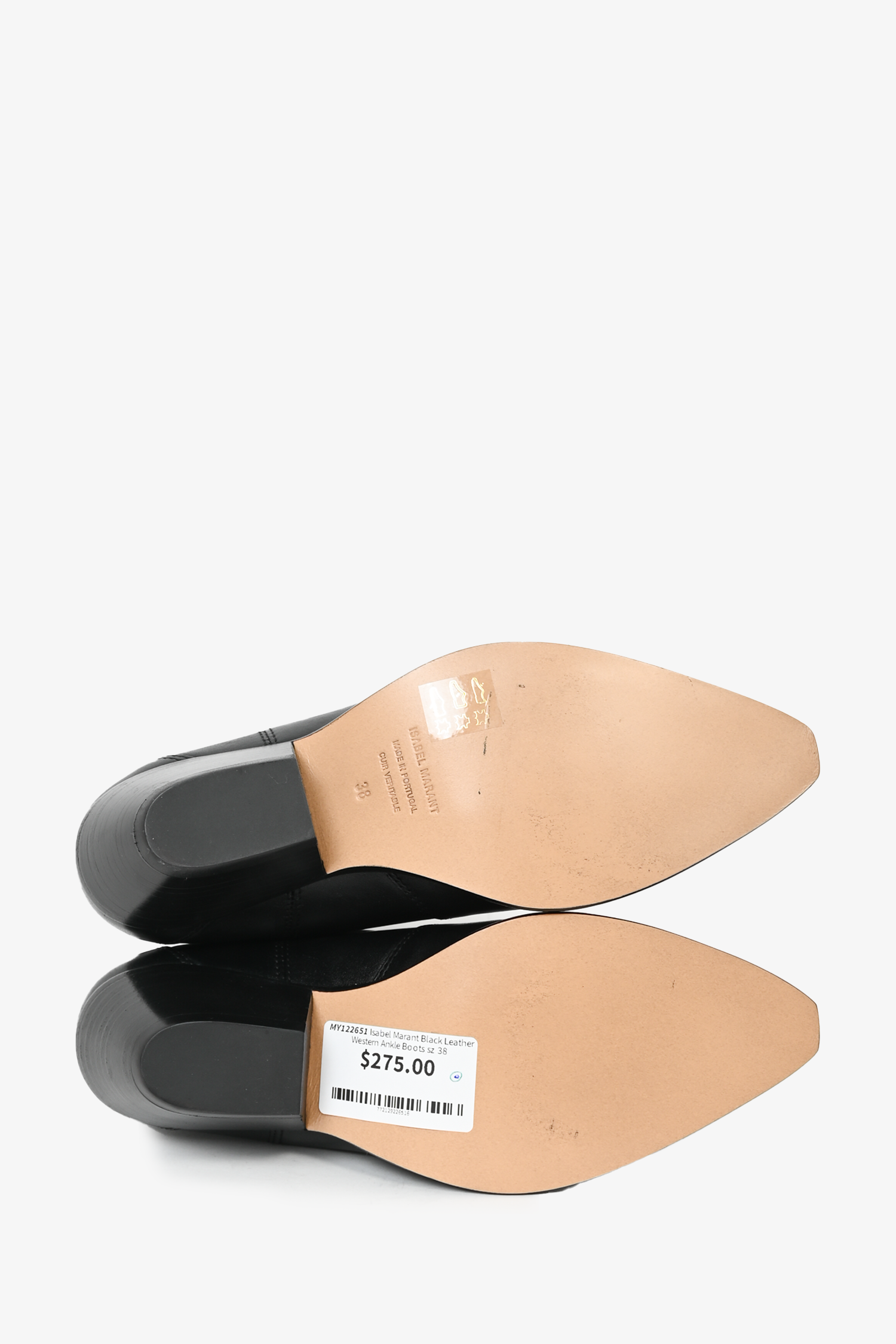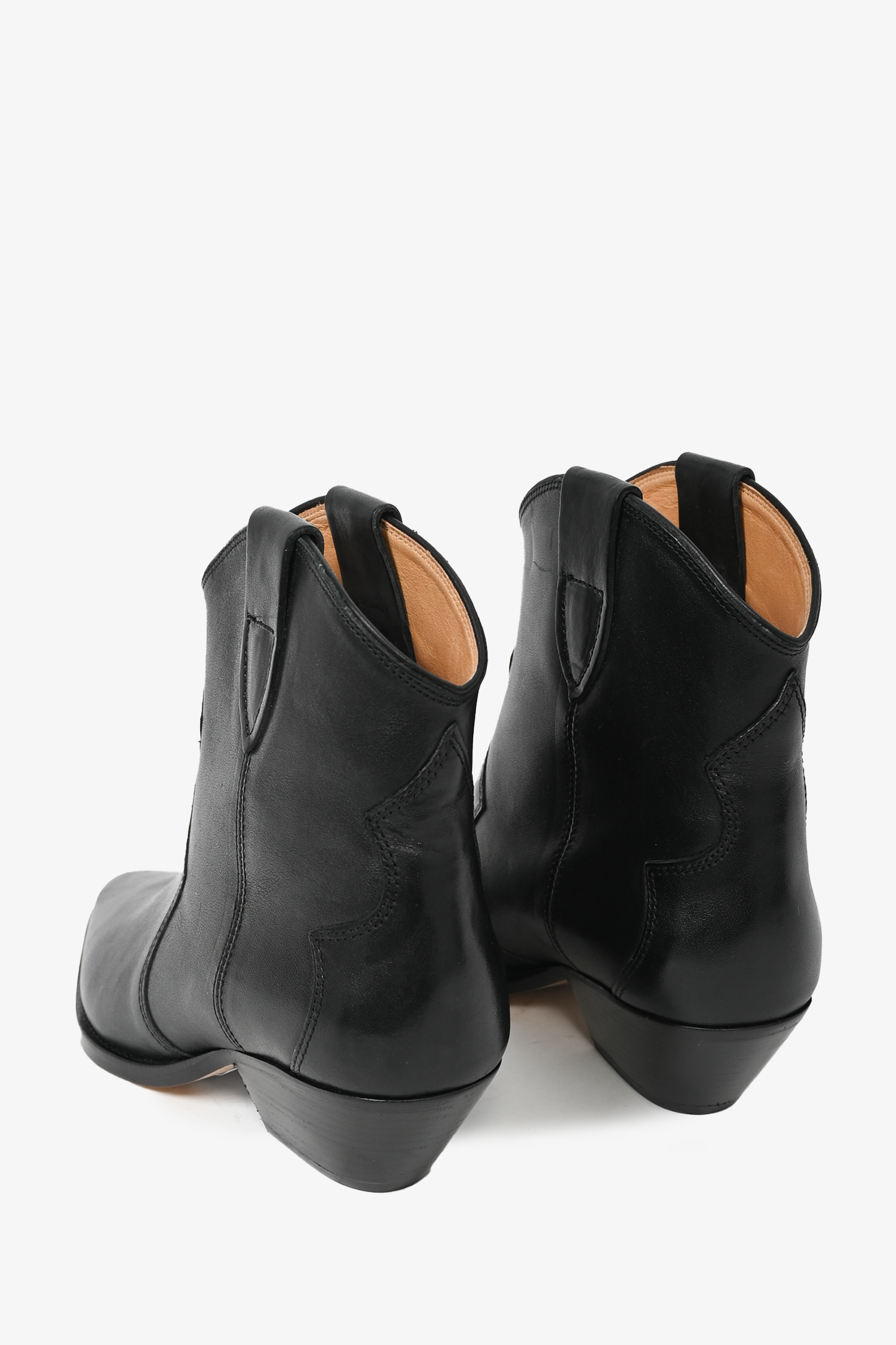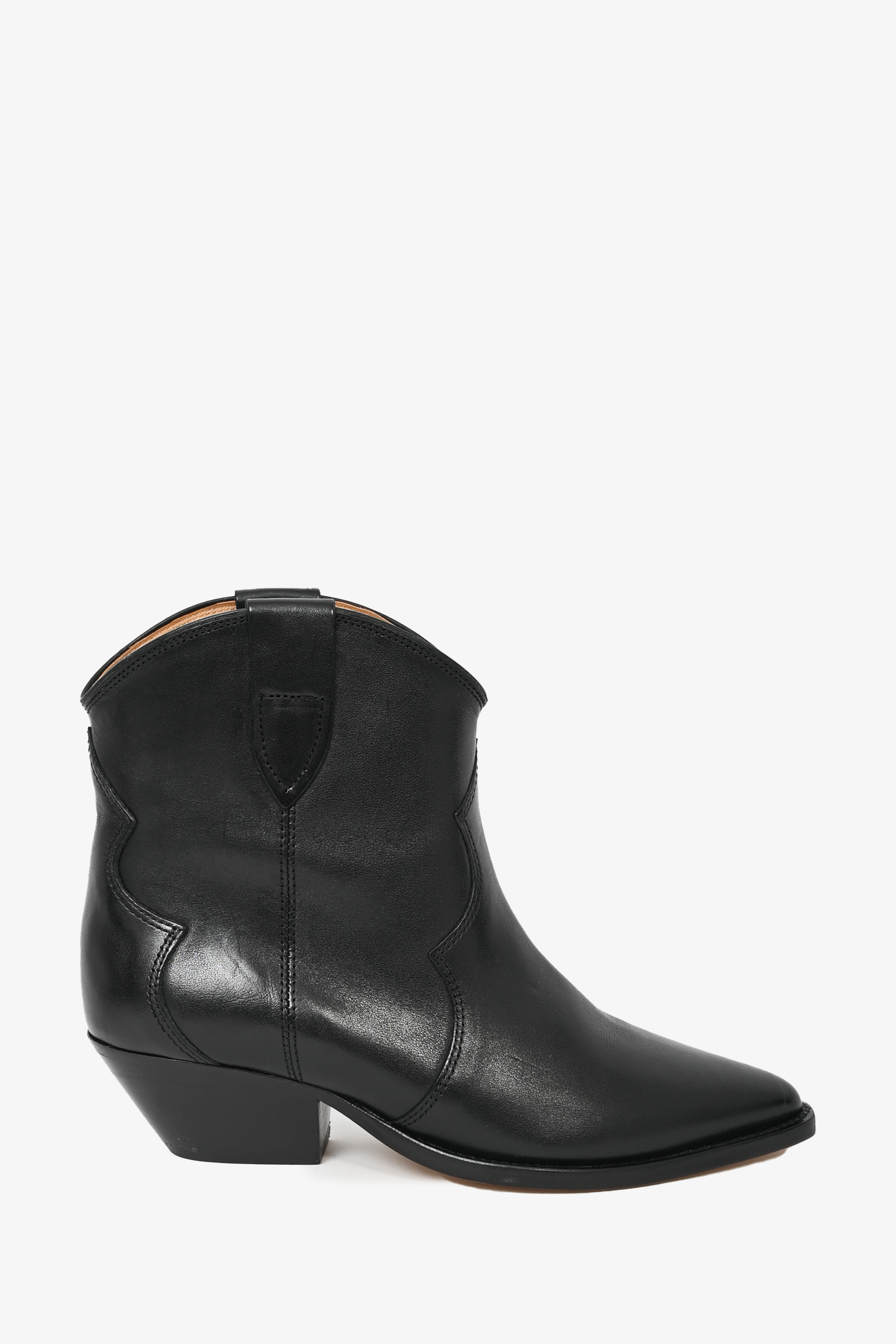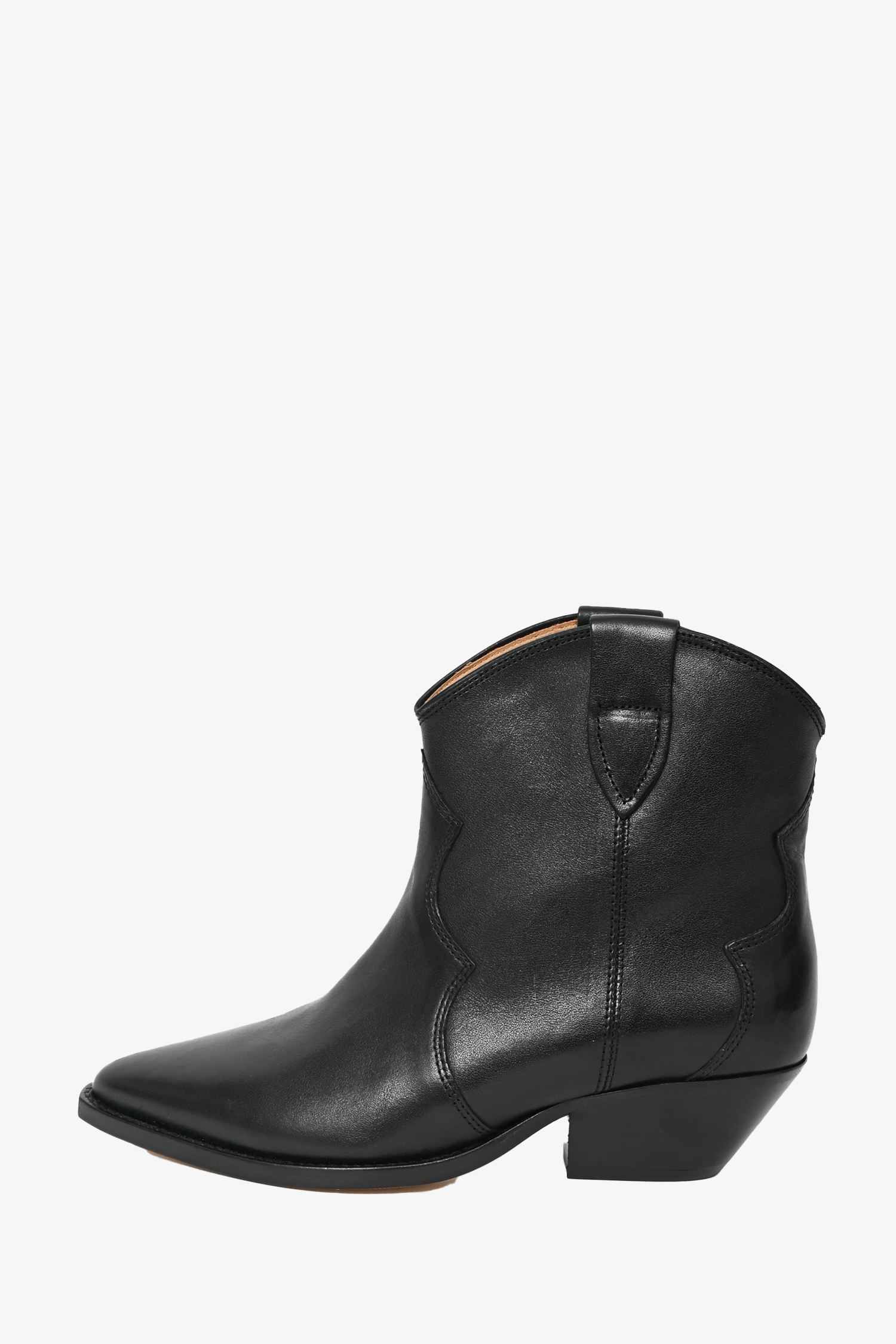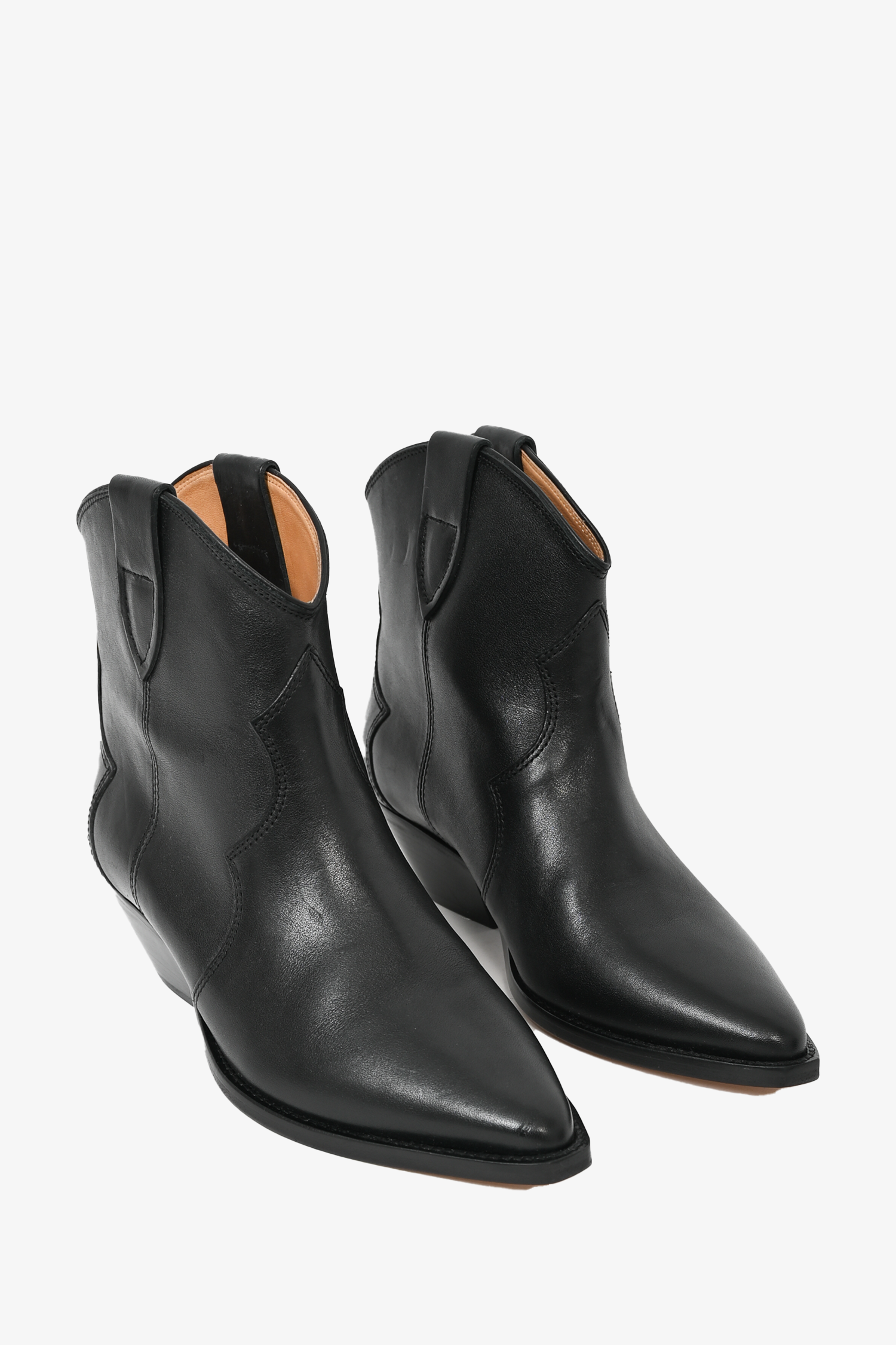 Refresh availabilityIsabel Marant Black Leather Western Ankle Boots. Square toe. Slip on. Contrast stitching.