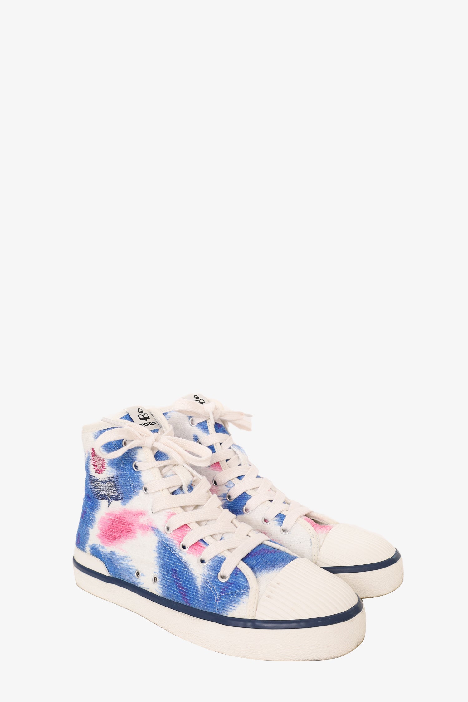 Refresh availabilityIsabel Marant Blue/Pink Multiprint High Top Sneakers. Round toe. Lace closure. Tonal stitching.