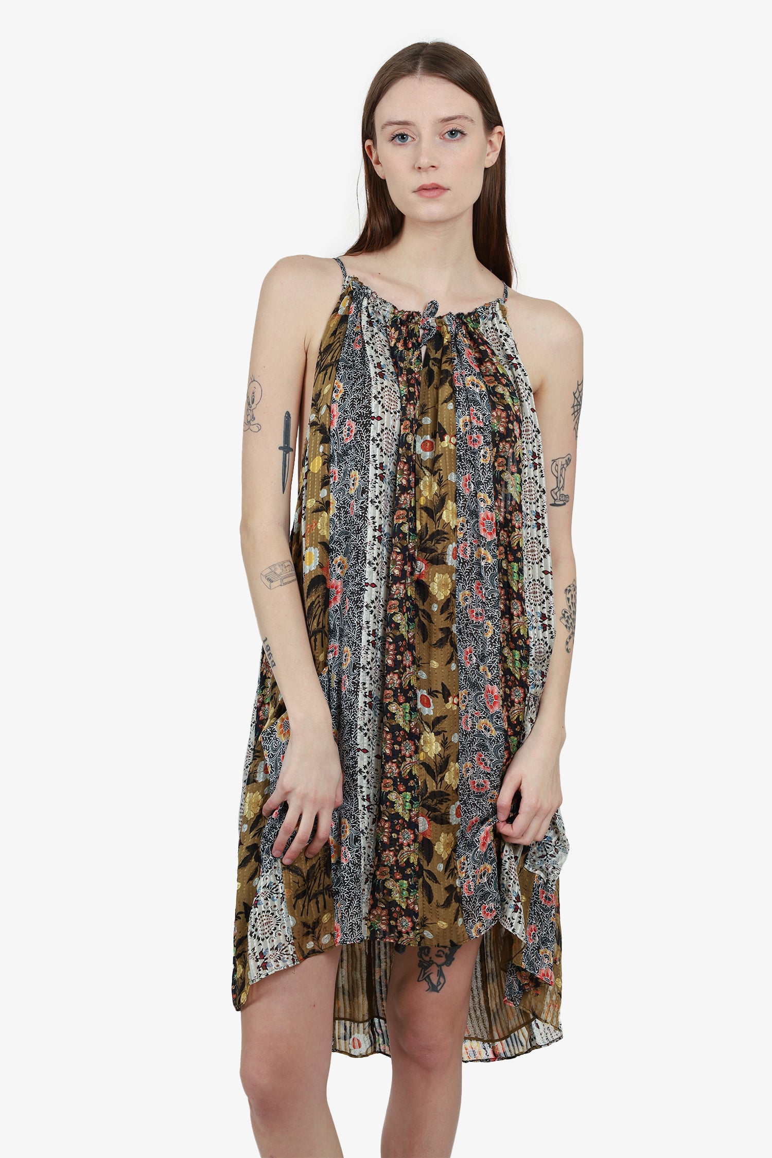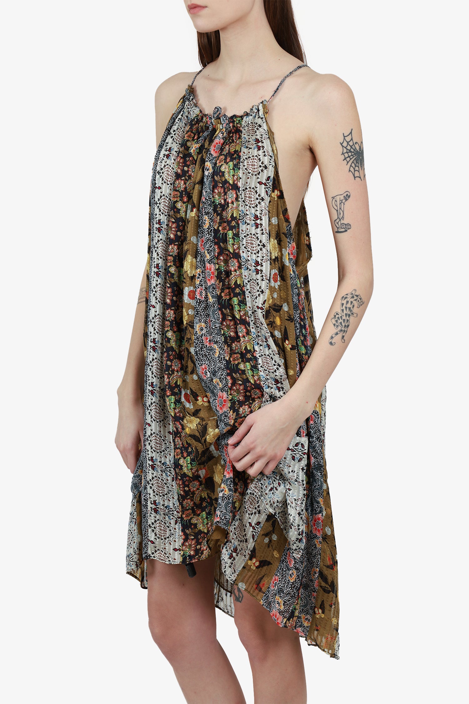 Refresh availabilityIsabel Marant Brown/Orange Silk Halter Neck Dress. Front tie closure. V neckline. Side pockets. Lined. Tonal stitching.