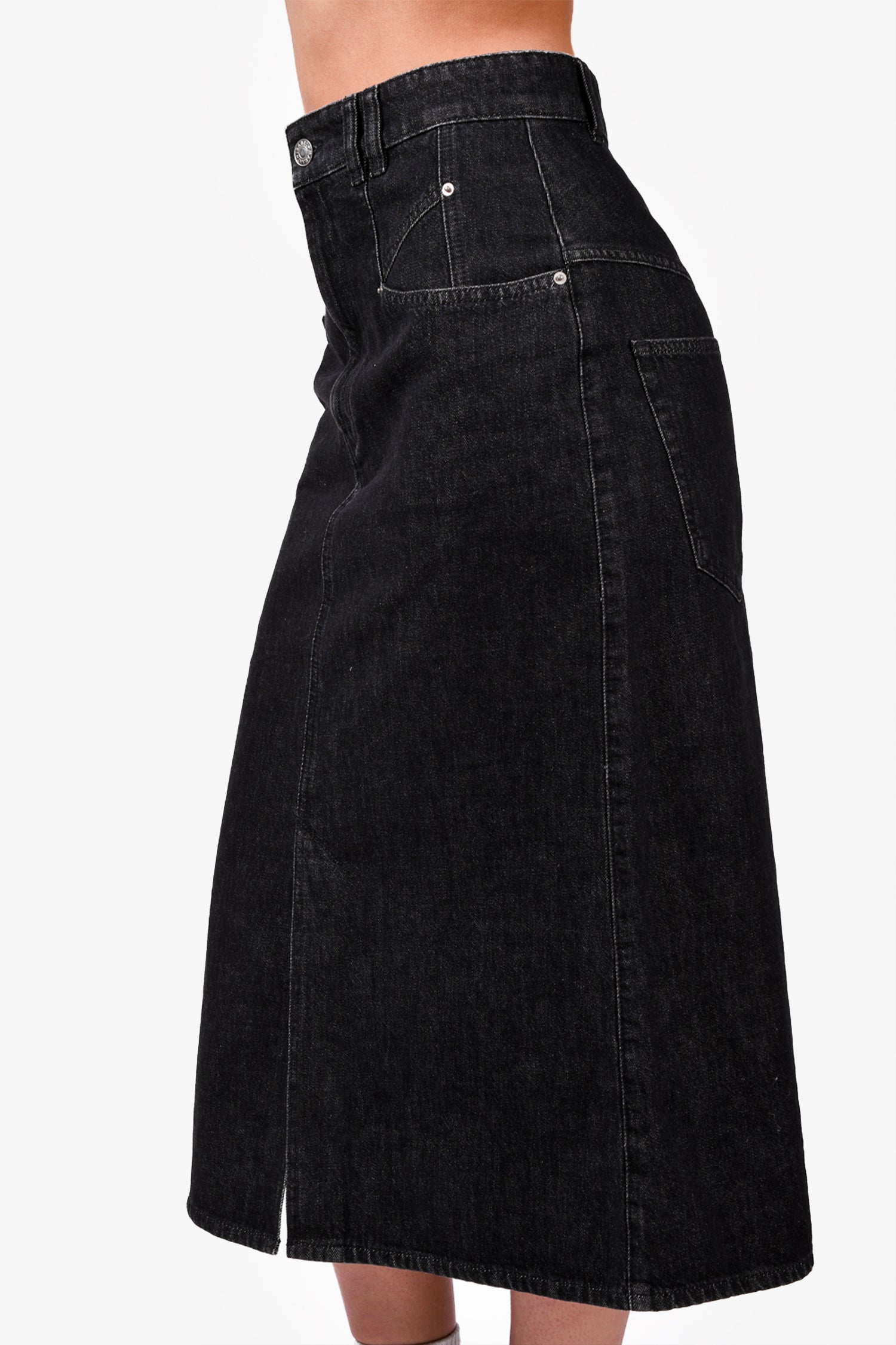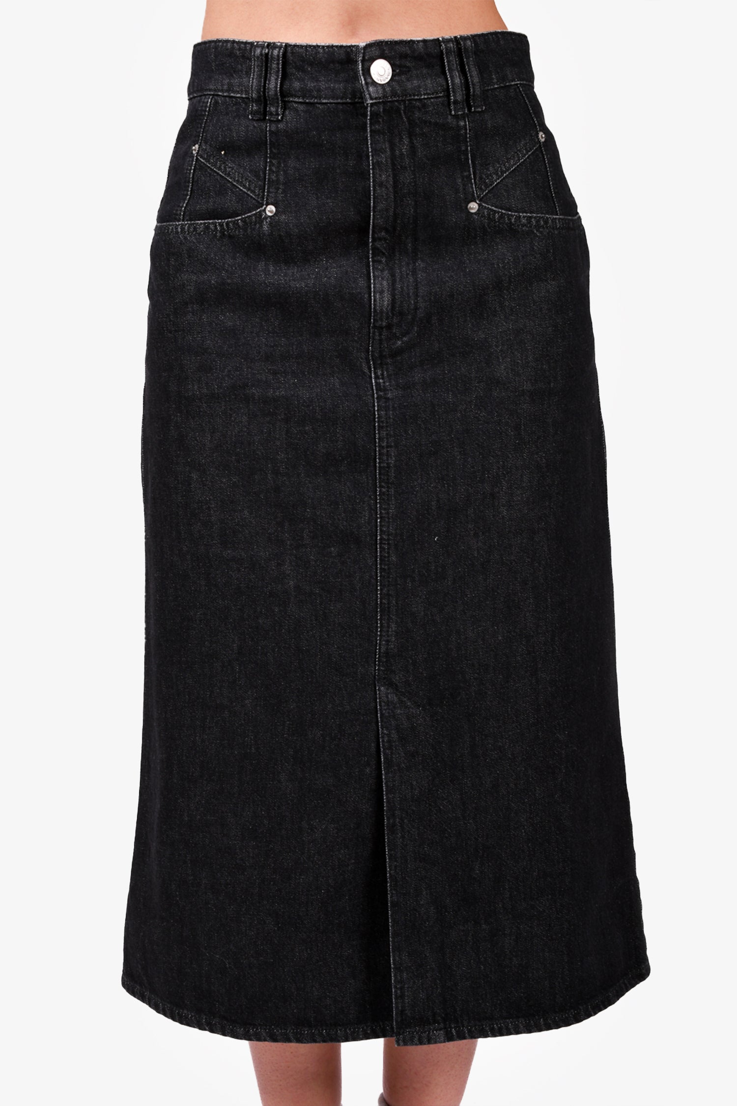 Refresh availabilityIsabel Marant Dark Denim Midi Skirt. Front zip and button closure. Waist belt loops. Front and rear pockets. Unlined. Tonal stitching.