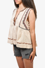 Isabel Marant Etoile Beige Cotton Red/Black Embroidered Sleeveless Top Size 40