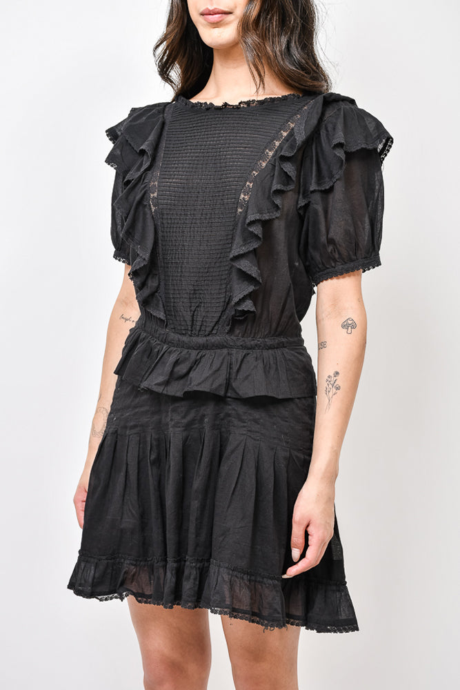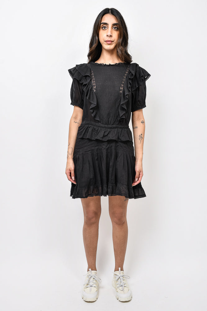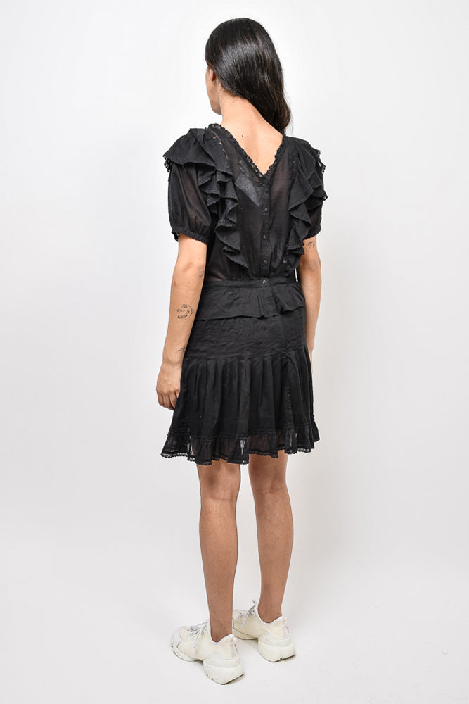 Refresh availabilityIsabel Marant Etoile Black Cotton Ruffle Mini Dress. Top button closure on reverse. Tonal stitching.
