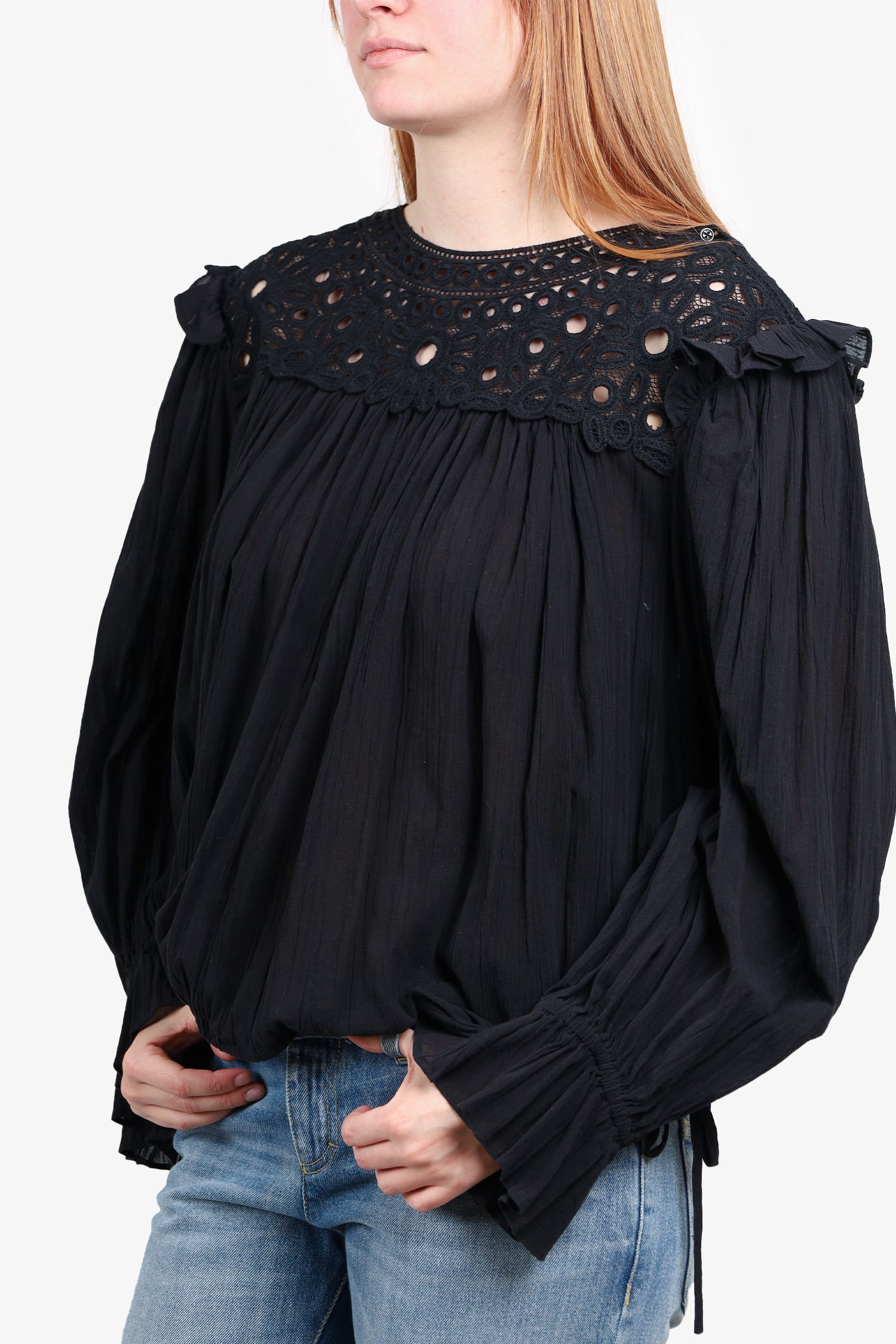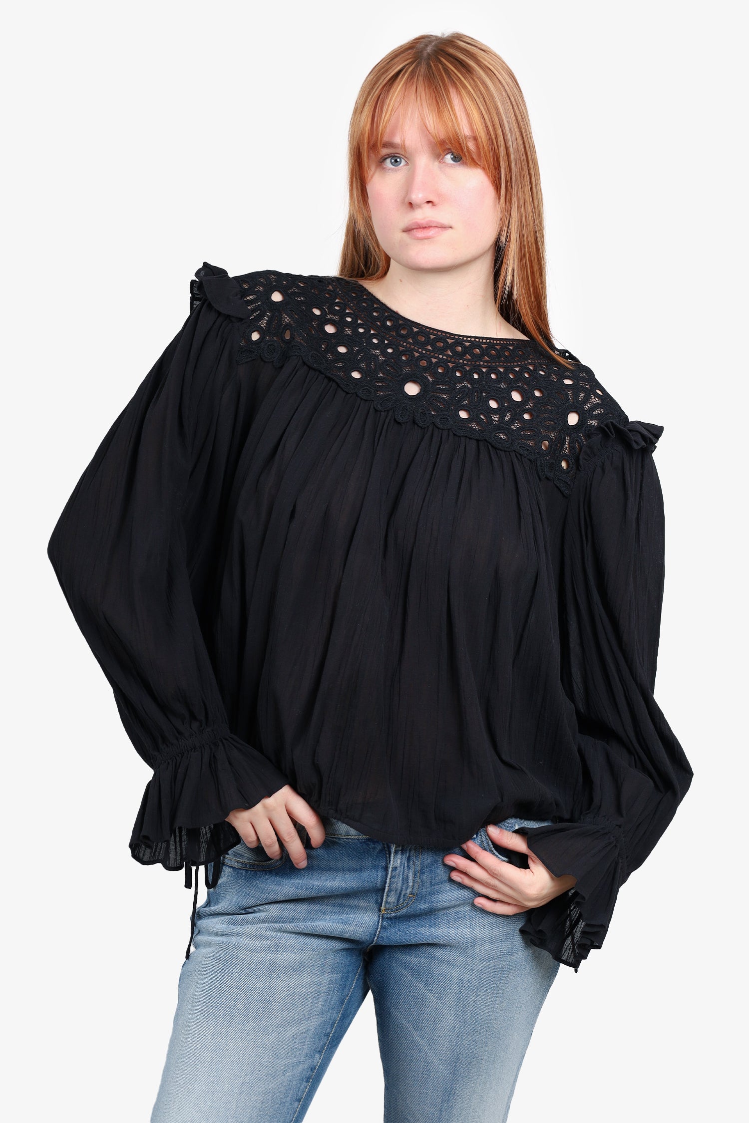 Isabel Marant Etoile Black Crochet Trim Silk Blouse Size 44