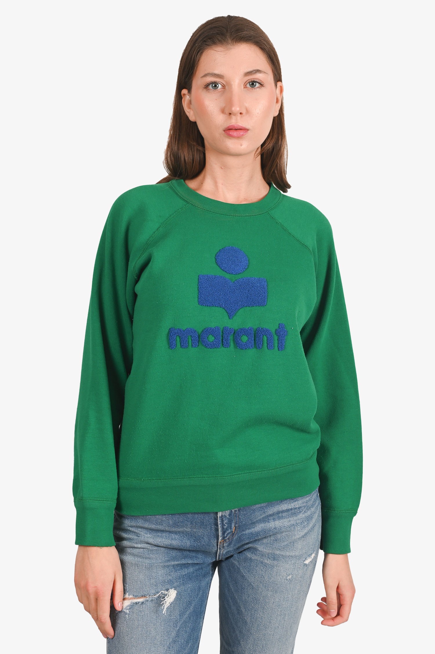 Refresh availabilityIsabel Marant Etoile Green/Blue Cotton Logo Sweater. Pull-on. Round neck. Tonal stitching.