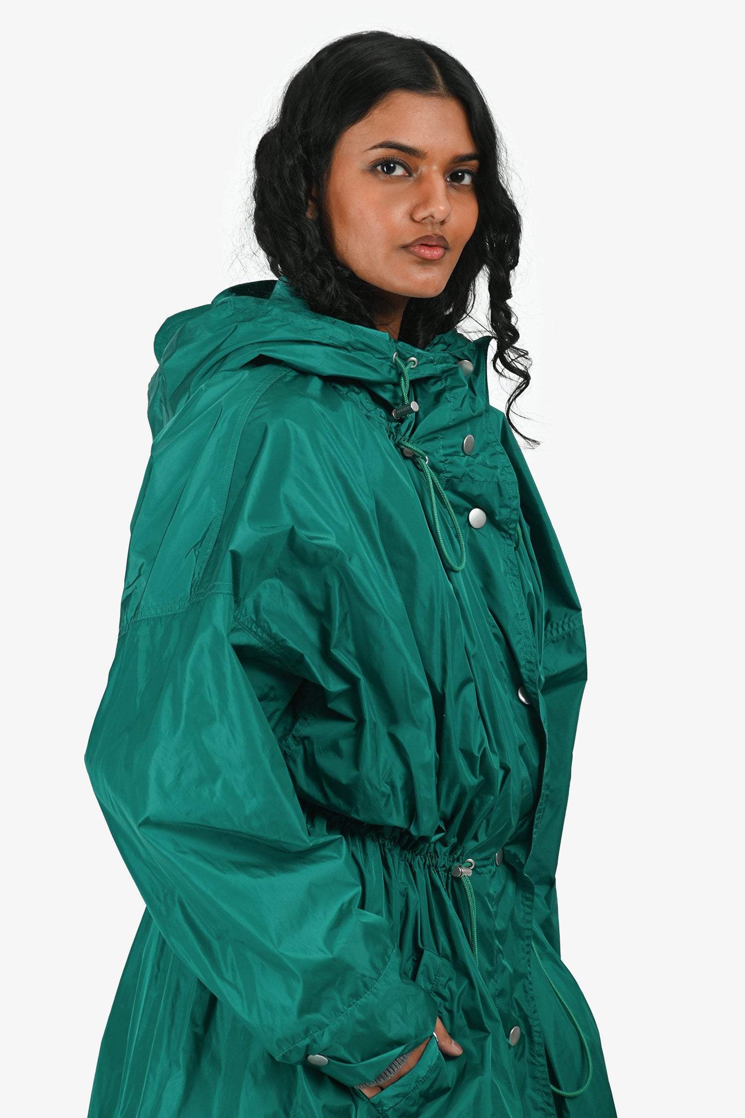 Isabel Marant Etoile Green Cinched Waist Hooded Raincoat Size 34