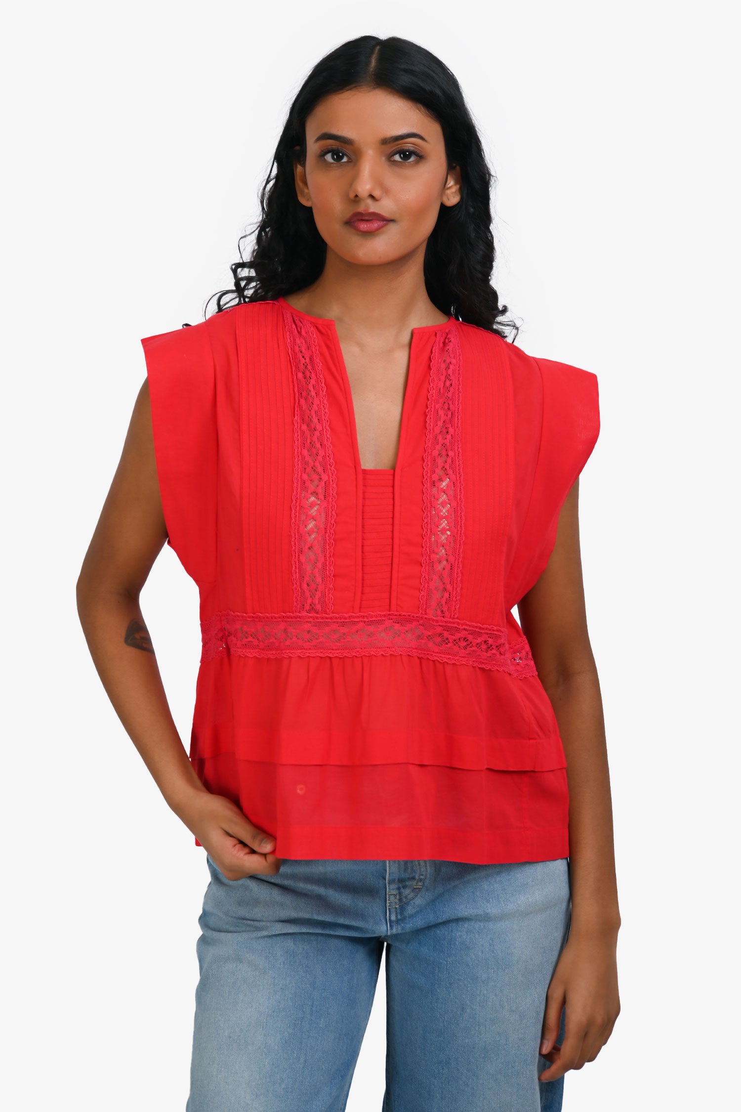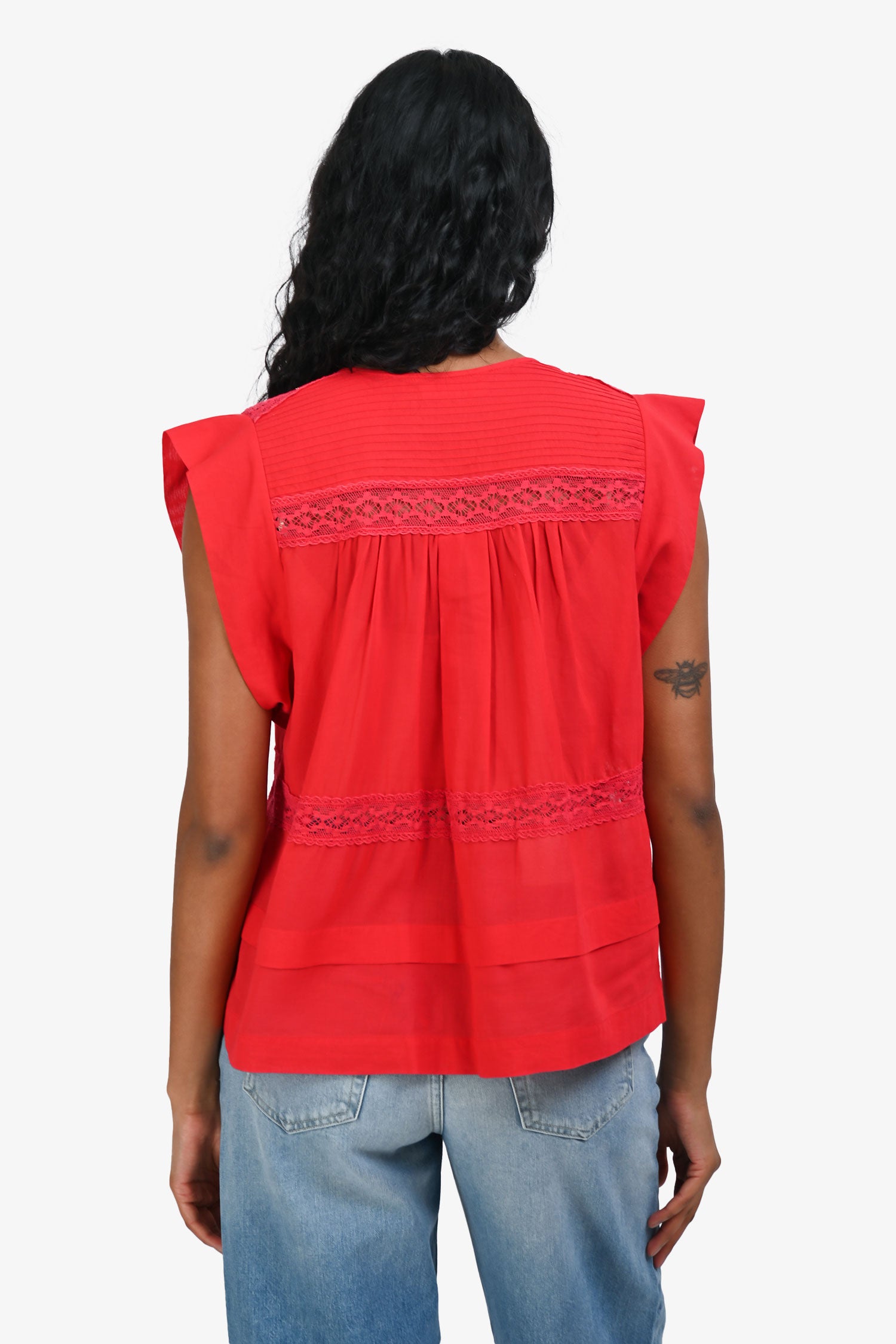 Isabel Marant Etoile Red Cotton Lace Accent Blouse Size 34