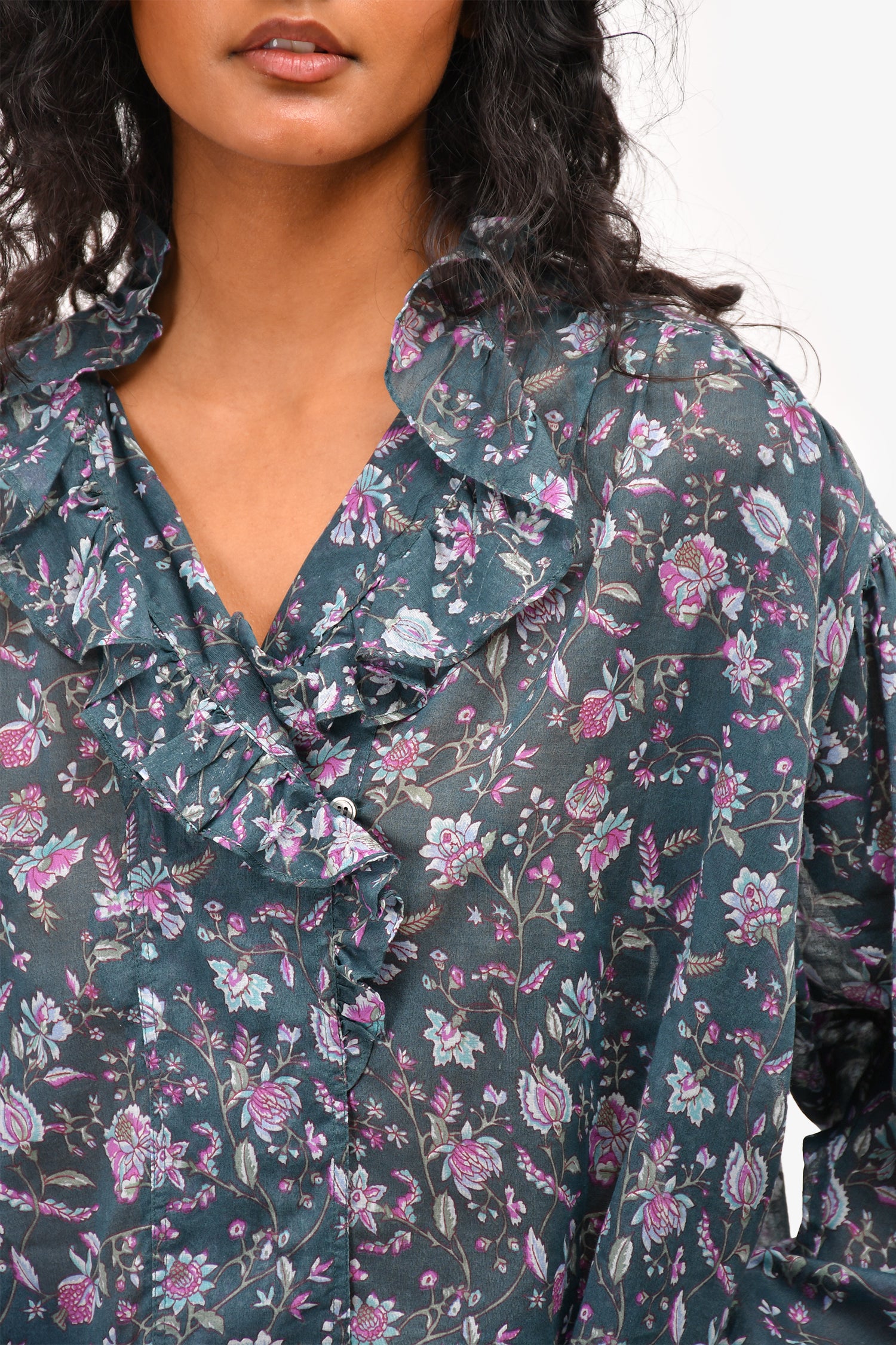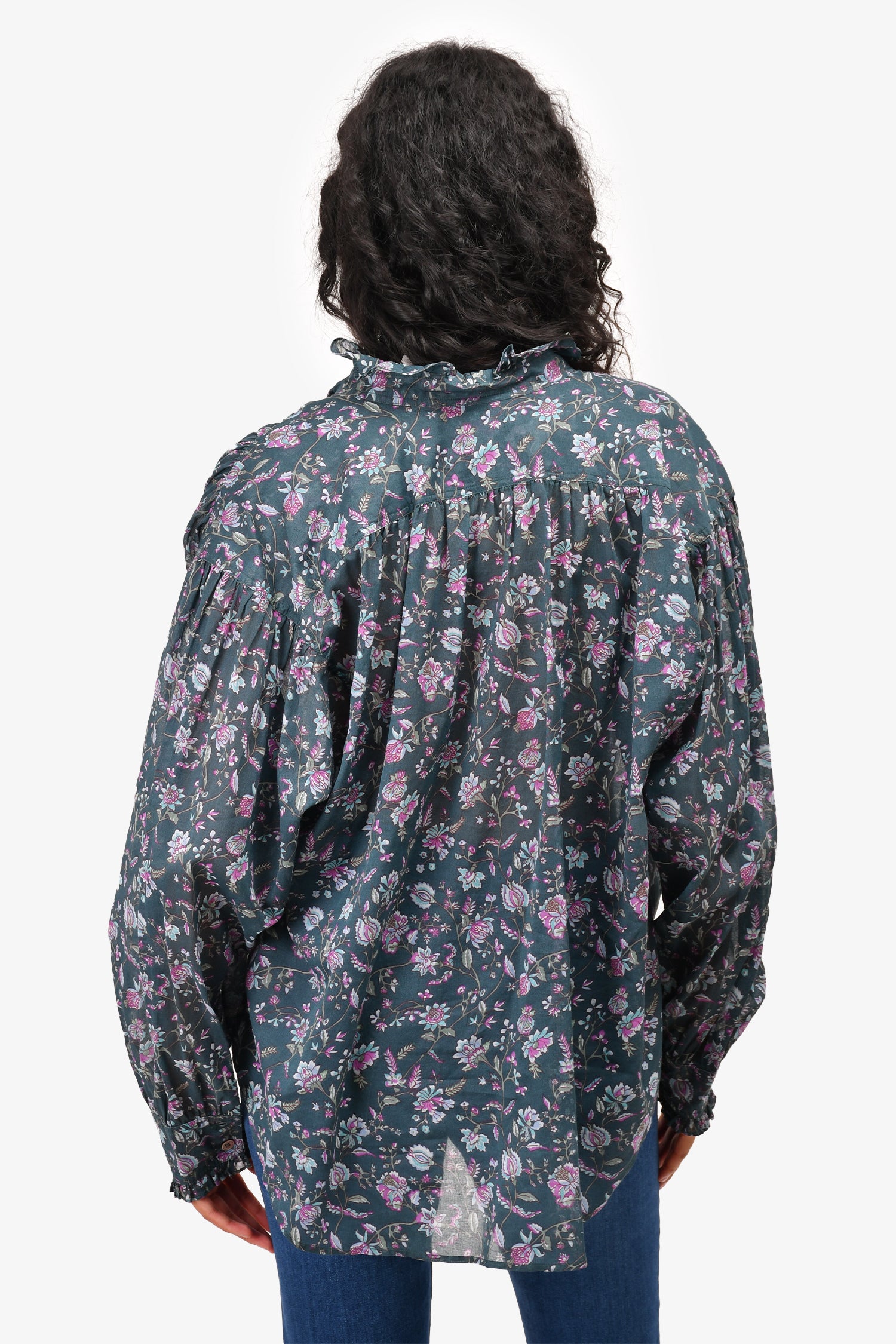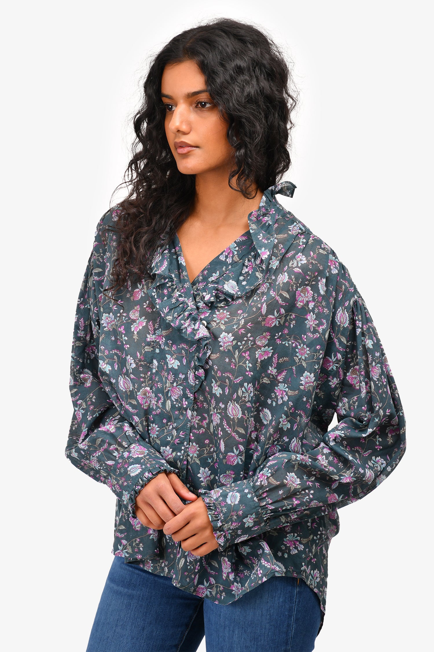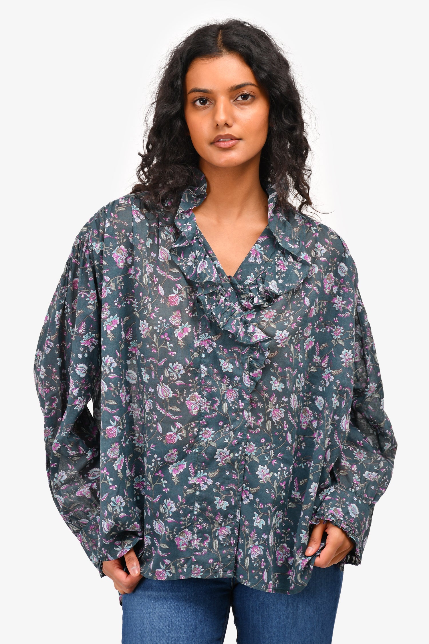 Refresh availabilityIsabel Marant Etoile Teal/Purple Floral Cotton Top. Pull-on. Front button-up closures. Button closure on the cuffs.