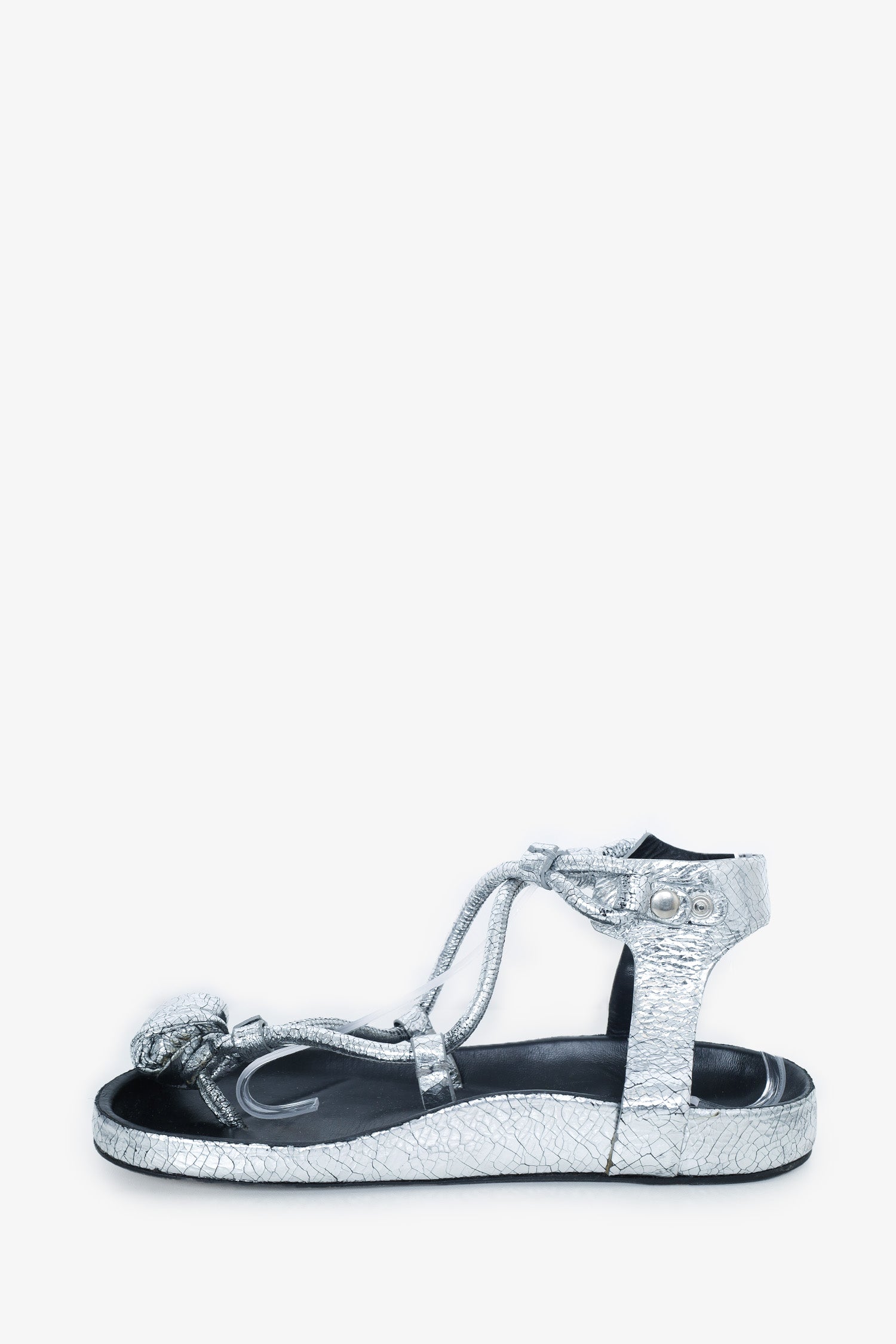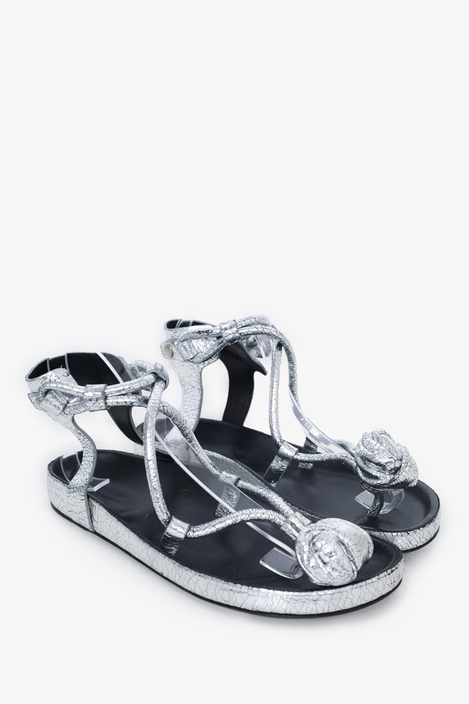 Refresh availabilityIsabel Marant Silver Metallic Tulip Bow Slingback Sandals. Snap button ankle closure. Tonal stitching.