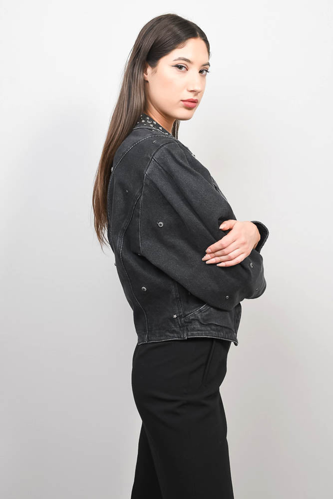 Isabel Marant Washed Black Balloon Sleeve Star Jem Detailed Denim Jacket Size 34